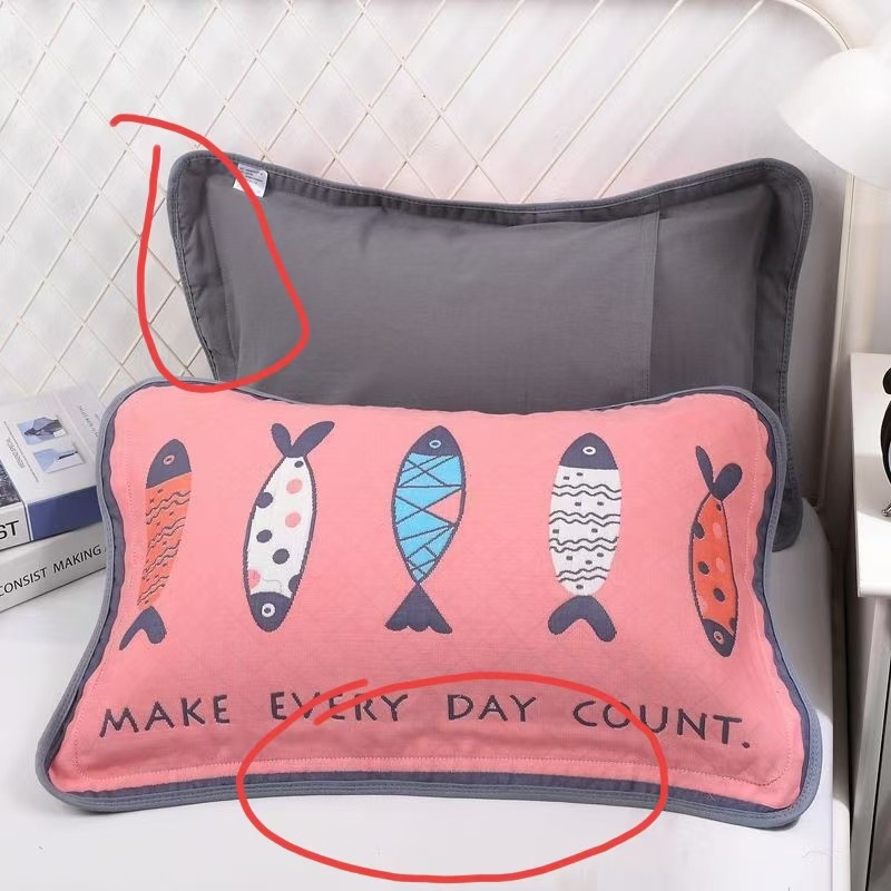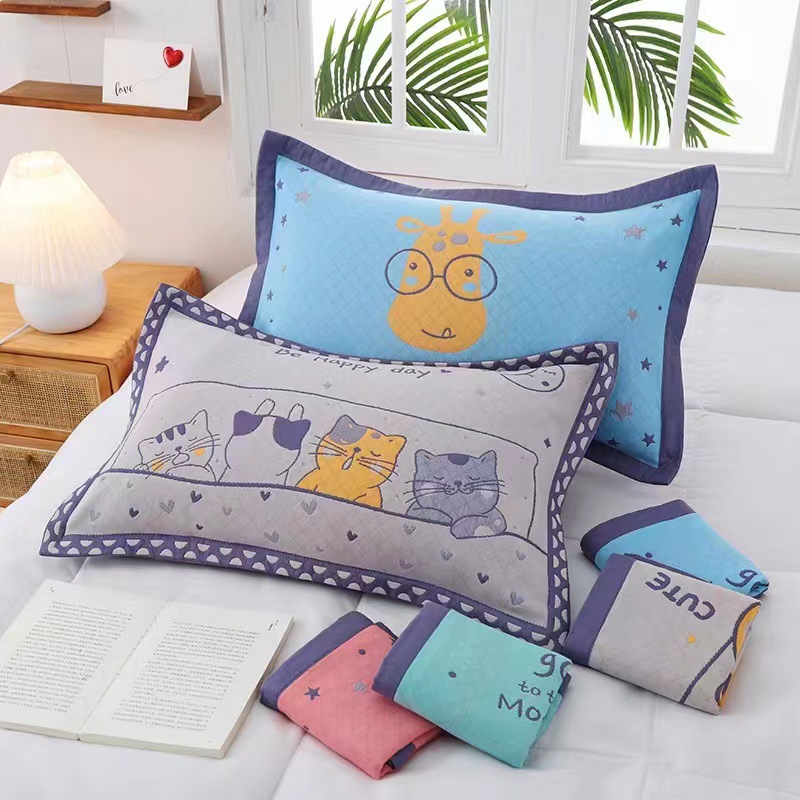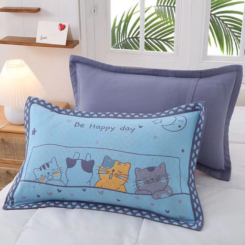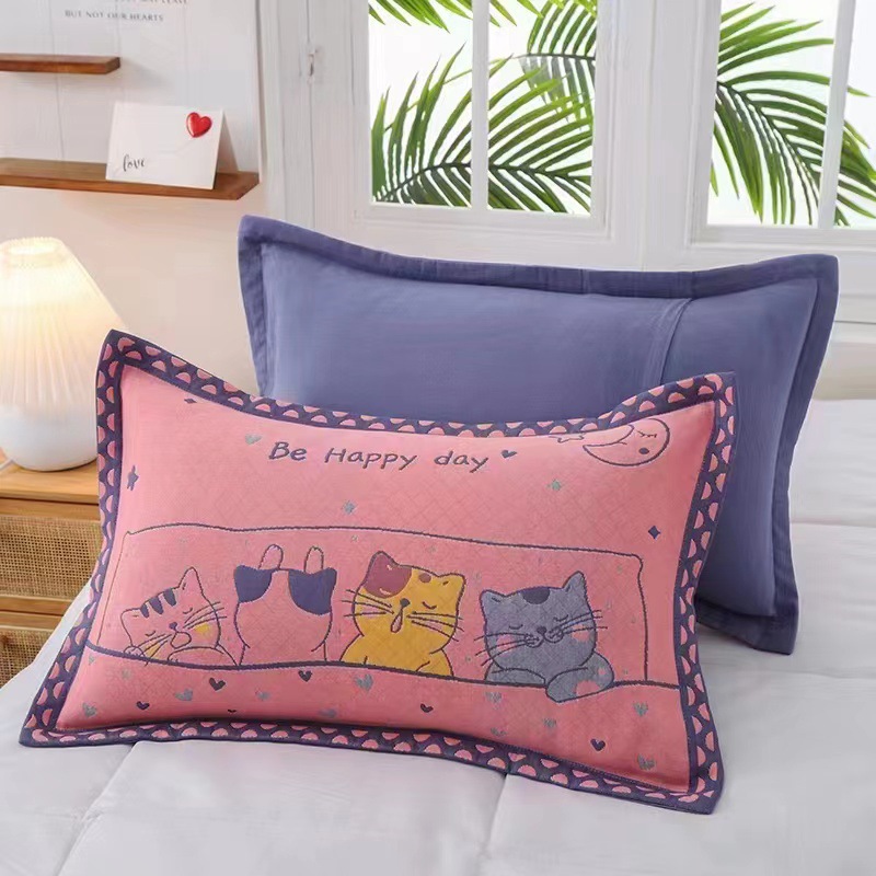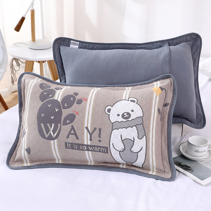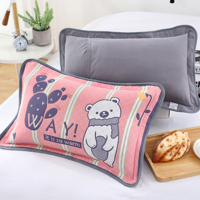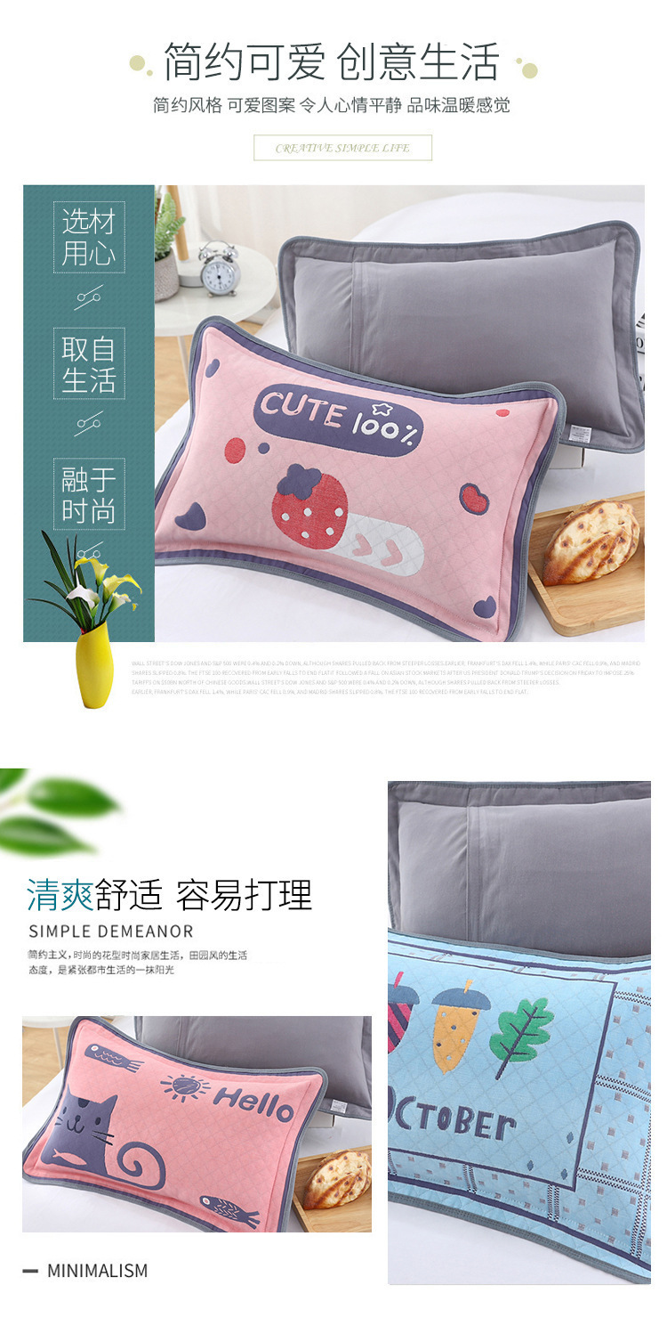 어린이 베개 케이스 중형 35*55 면 파인 거즈 6 층 베개 프리 아기 통기성 땀 위킹 엣지 베개 케이스