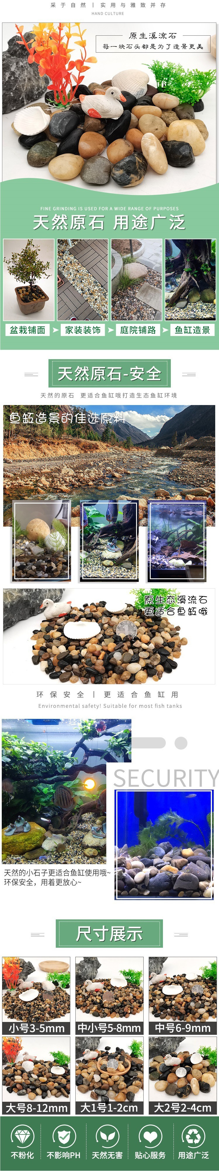 천연 스트림 돌 물고기 탱크 모래 바닥 모래 조경 포장 돌 조약돌 물고기 탱크 거북이 탱크 조경 장식품 완두콩 돌스토어 가기