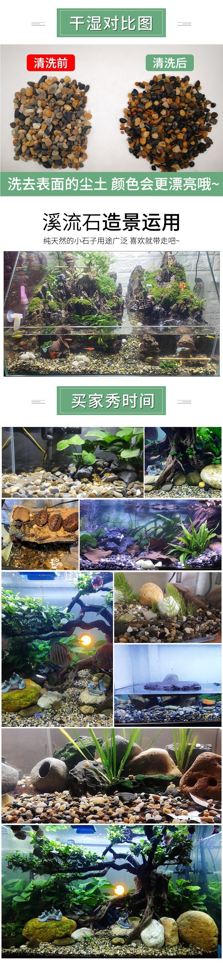 • 2.5kg 천연 스트림 스톤 6-9mm에는 수생 식물 2개가 포함되어 있습니다.