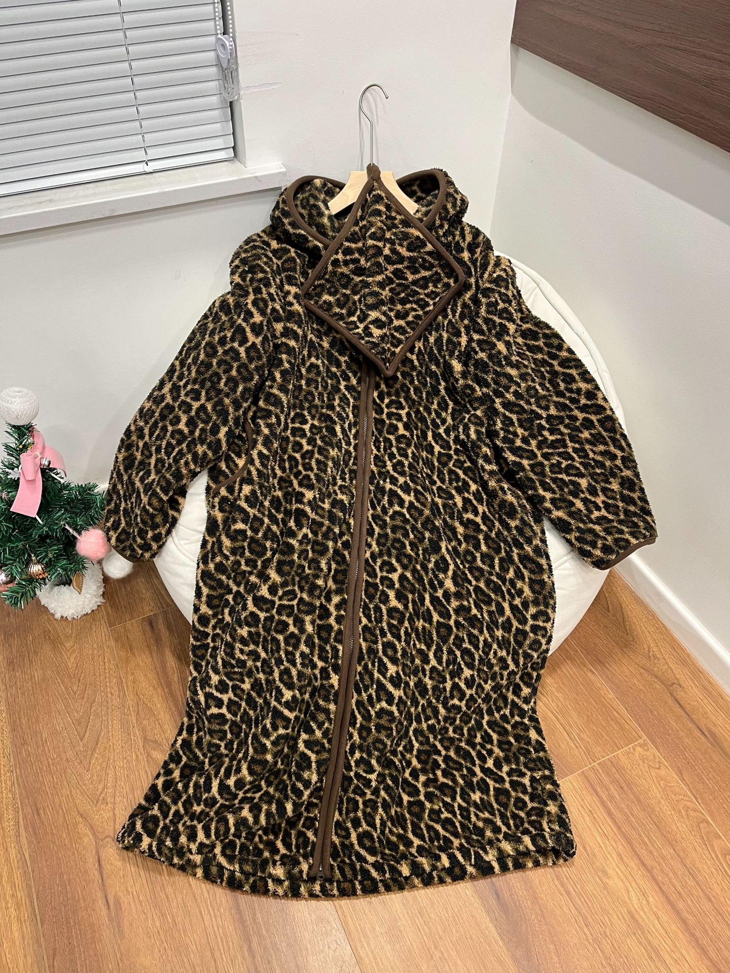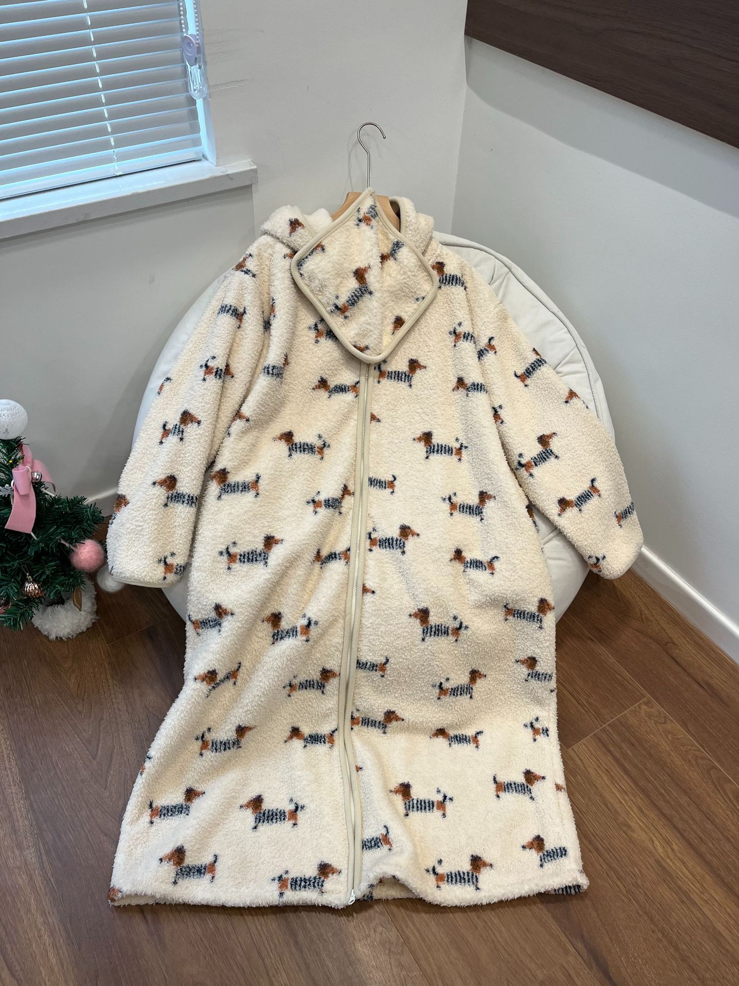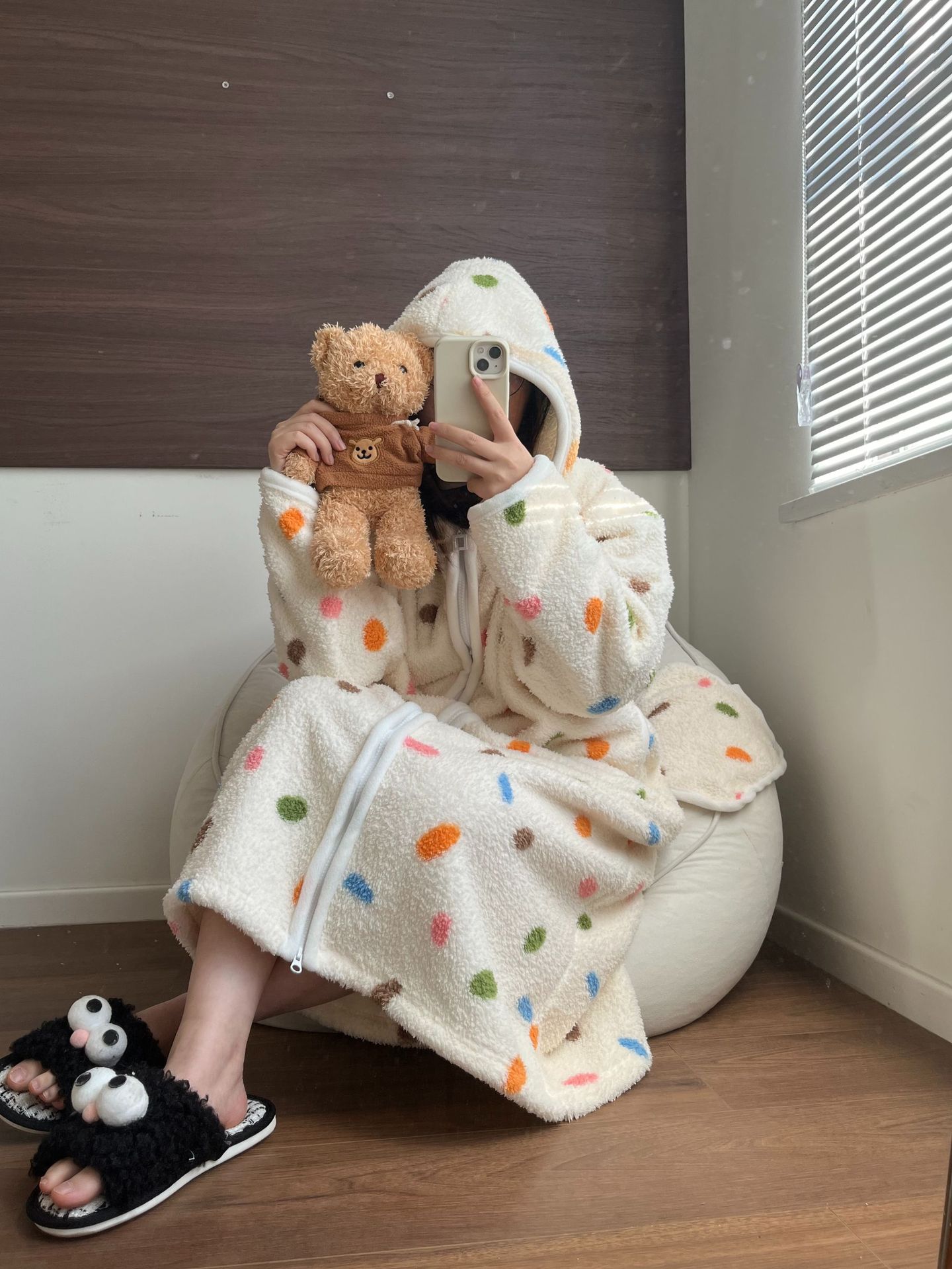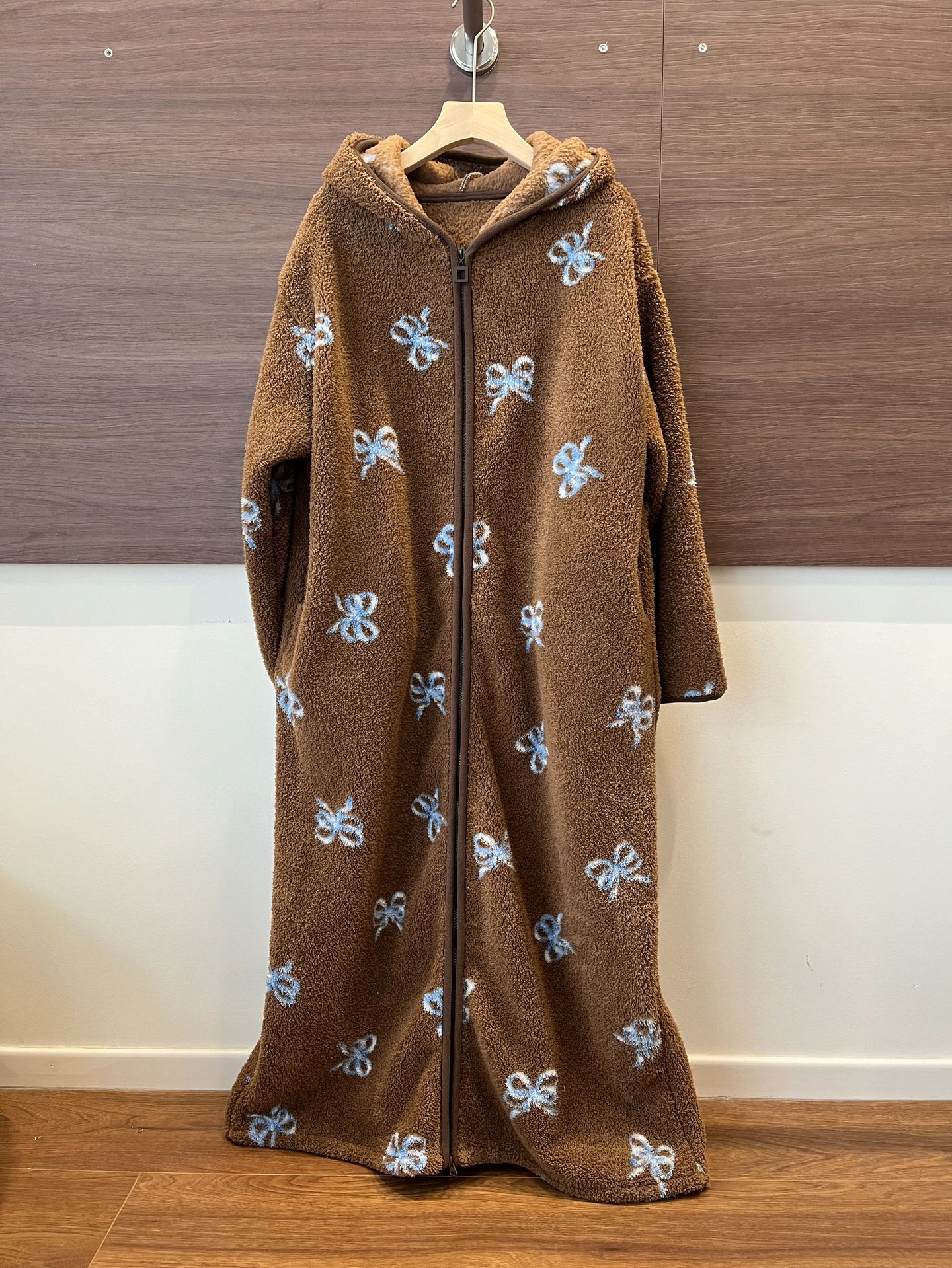 [실제 사진] Hongnan Walking Bed 스트라이프 산호 벨벳 잠옷 여성용 두꺼운 따뜻한 홈웨어 잠옷 후드스토어 가기