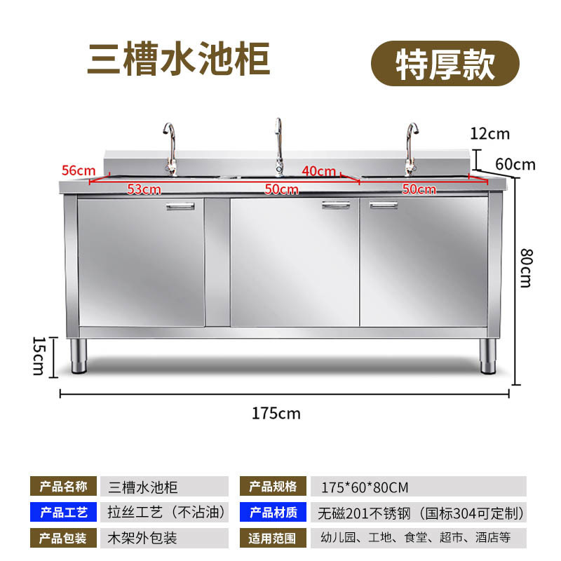 스테인레스 스틸 304 싱크 상업 통합 두꺼운 물 주방 캐비닛 야채 세척 캐비닛 가정용 싱크스토어 가기