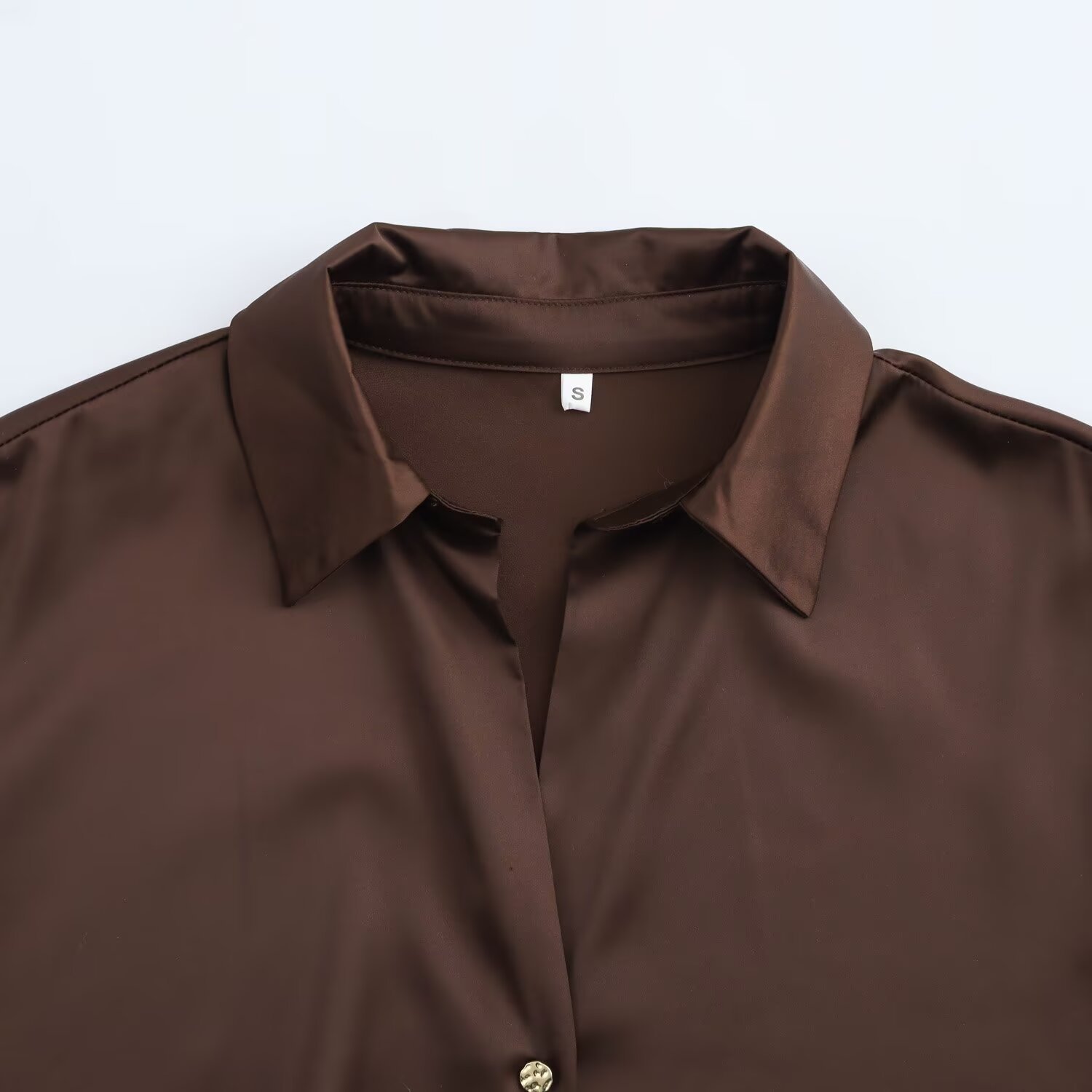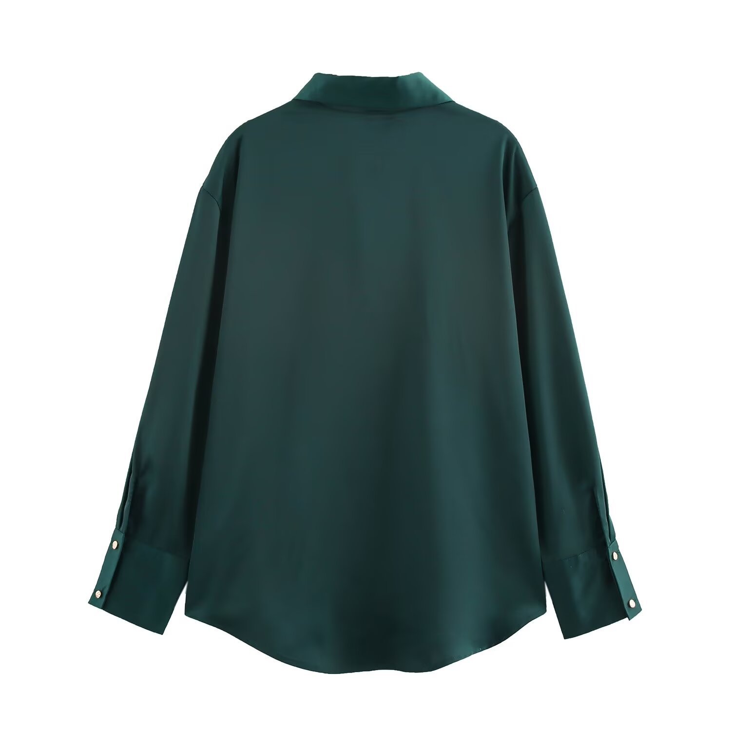 유럽과 미국의 국경 여성 의류 도매 기질 통근 느슨한 간단한 다목적 실크 새틴 질감 셔츠 탑