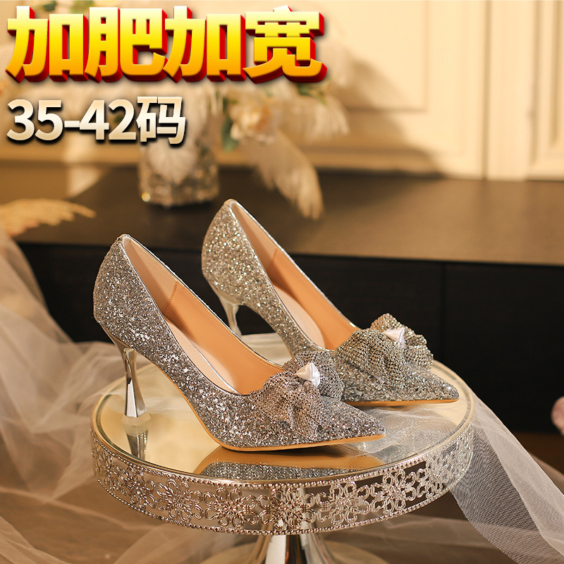 [Y-309-17] 플러스 사이즈 크리스탈 웨딩 슈즈 메인 웨딩 원피스 프랑스 저녁 원피스 플러스 사이즈 하이힐 지방 피트 폭 여성