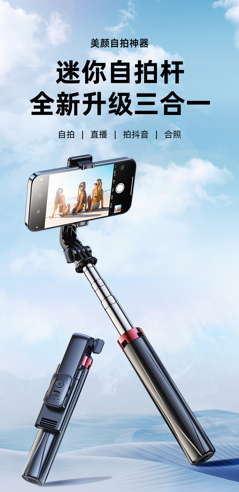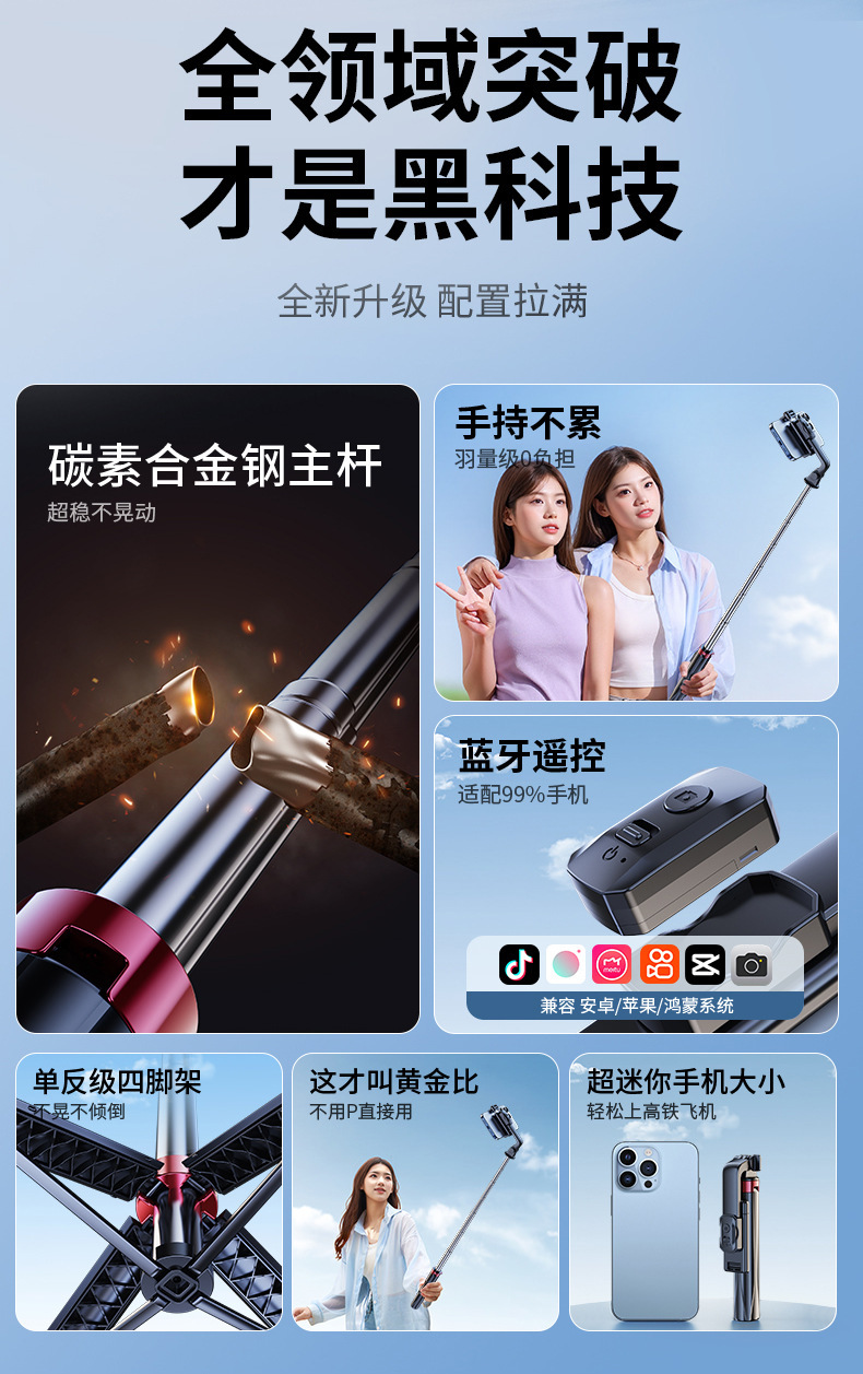휴대 전화 4 코너 셀카 스틱 안티 쉐이크 다기능 원격 제어 카메라 스틱 휴대용 텔레스코픽 휴대용 스탠드 라이브 삼각대스토어 가기