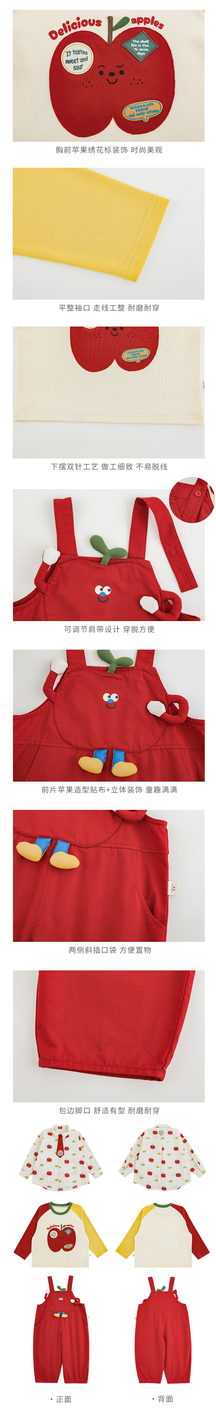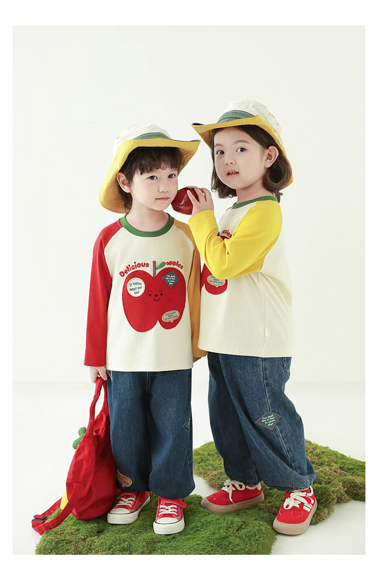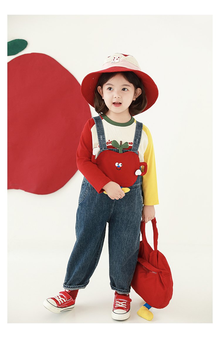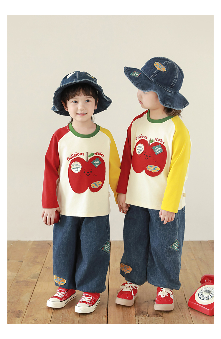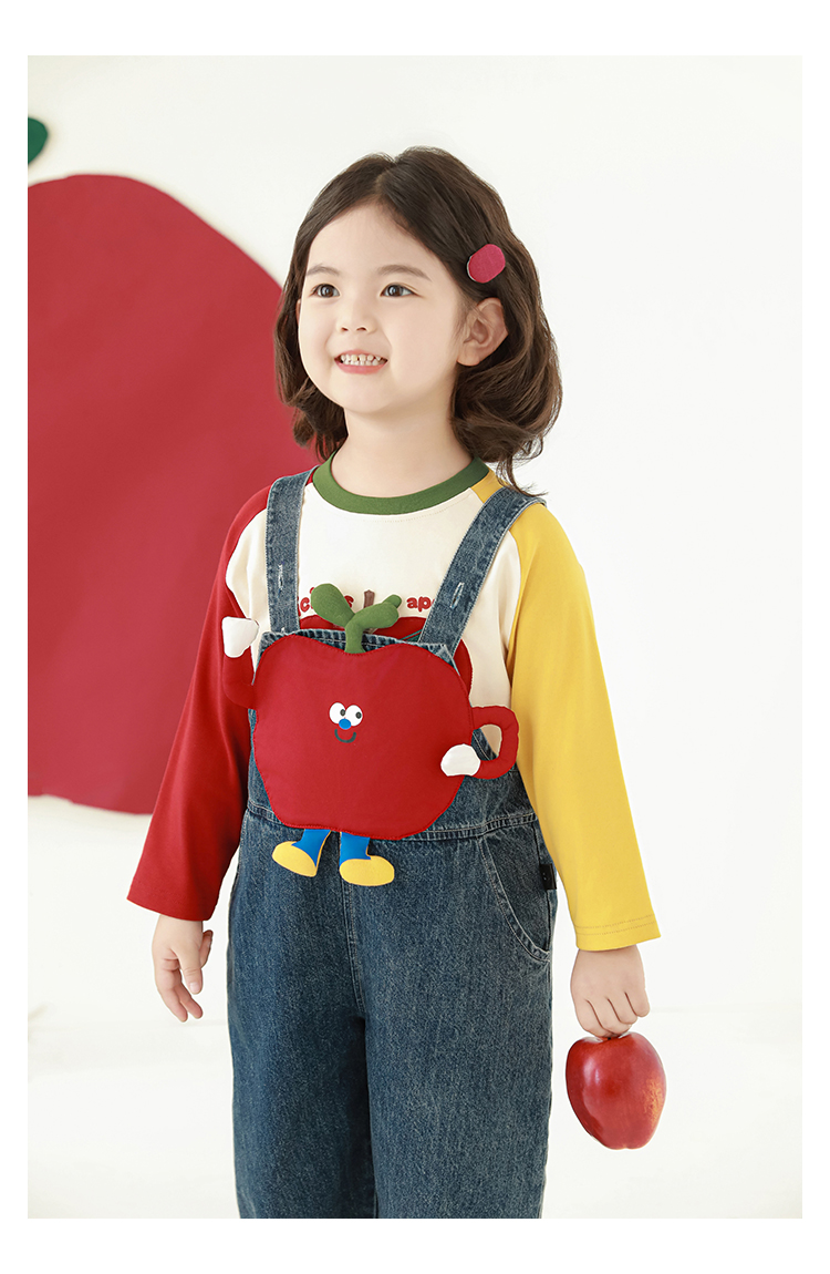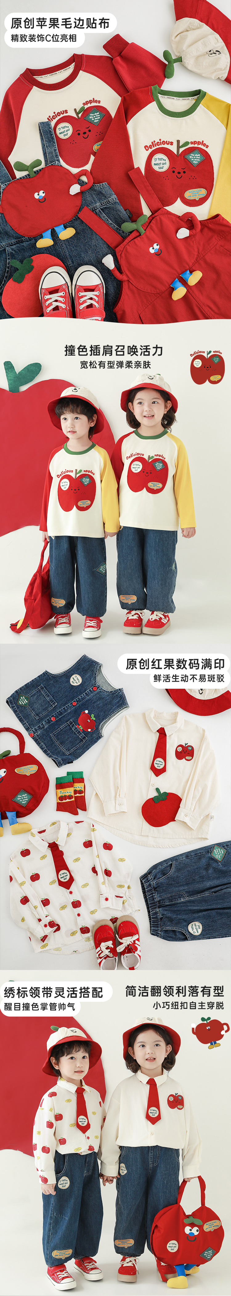 Wuri Boyi Girls Apple Talent 시리즈 2025 봄 랩 칼라 셔츠 대조 Raglan 소매 티셔츠 스트랩 바지스토어 가기