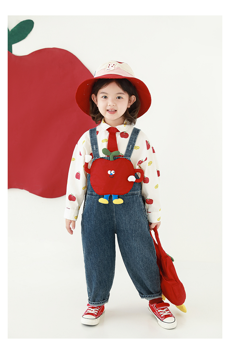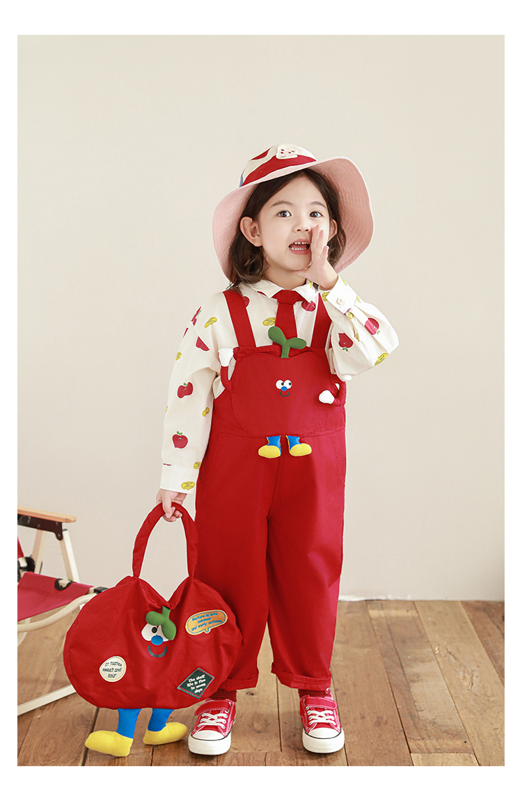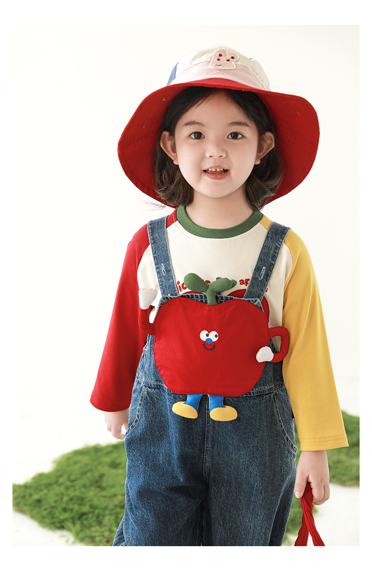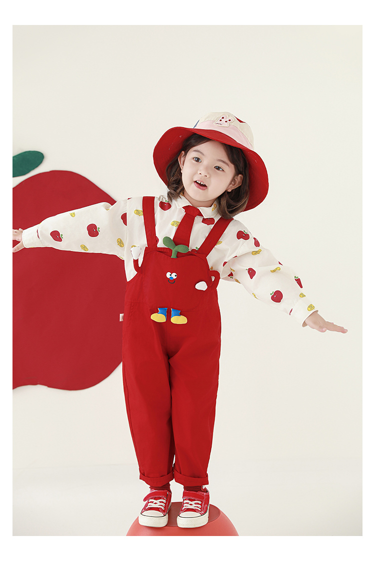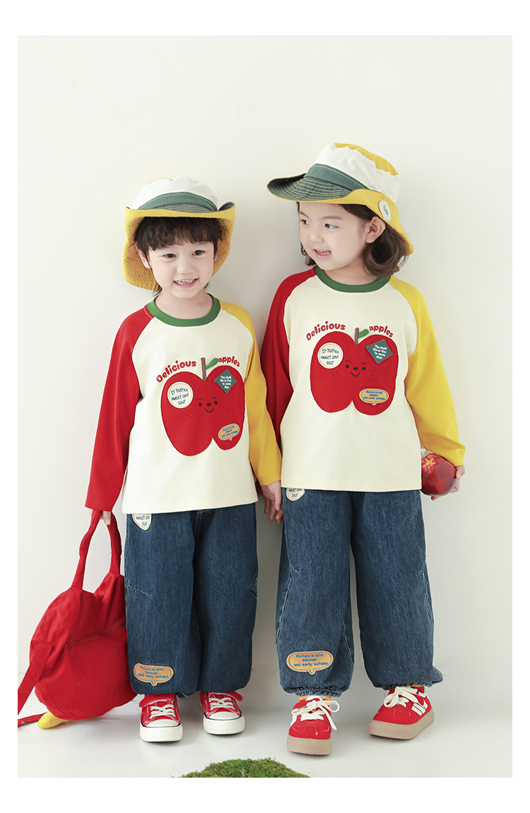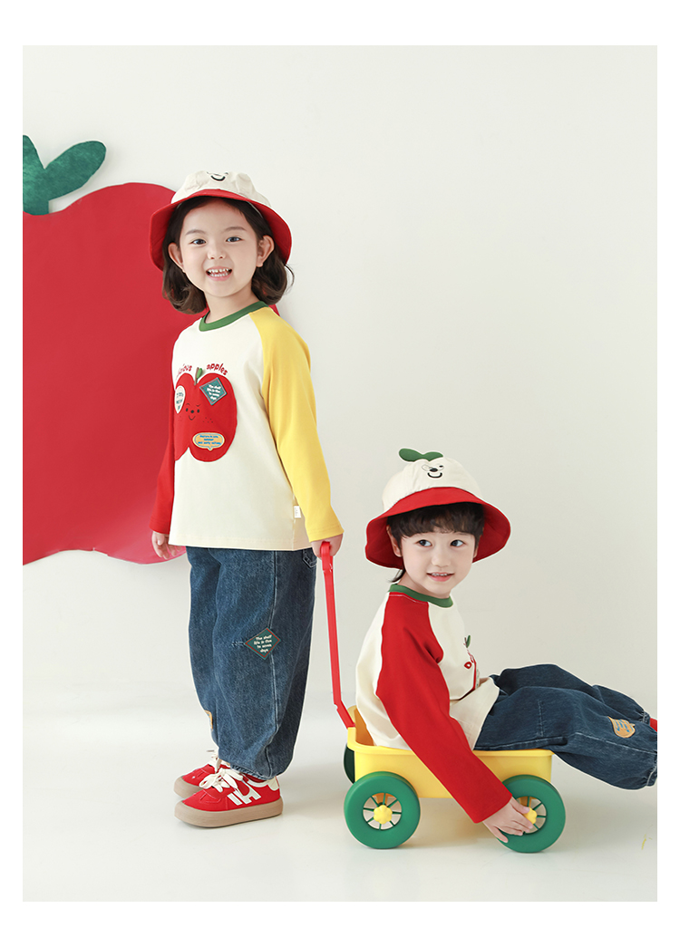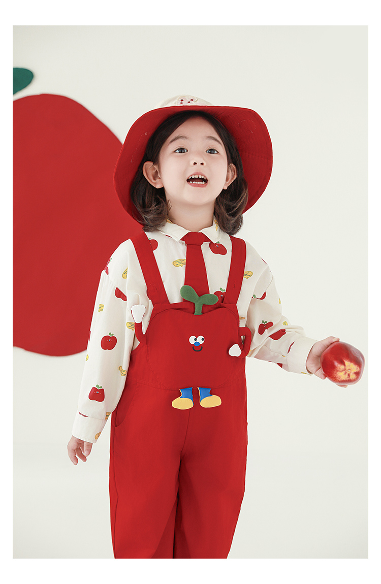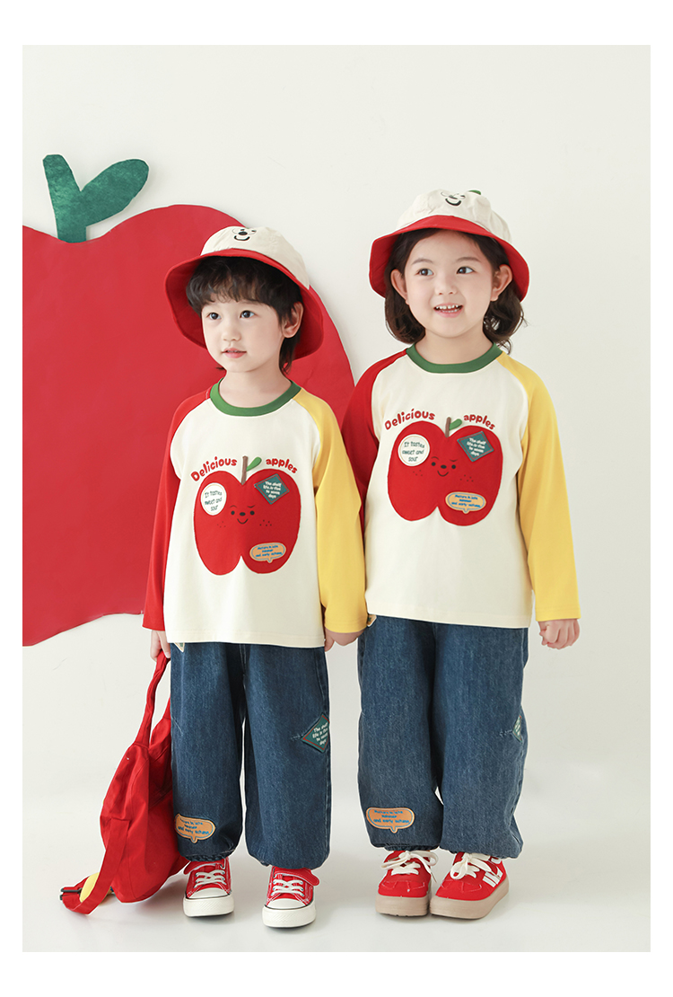 Wuri Boyi Girls Apple Talent 시리즈 2025 봄 랩 칼라 셔츠 대조 Raglan 소매 티셔츠 스트랩 바지스토어 가기