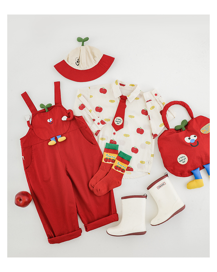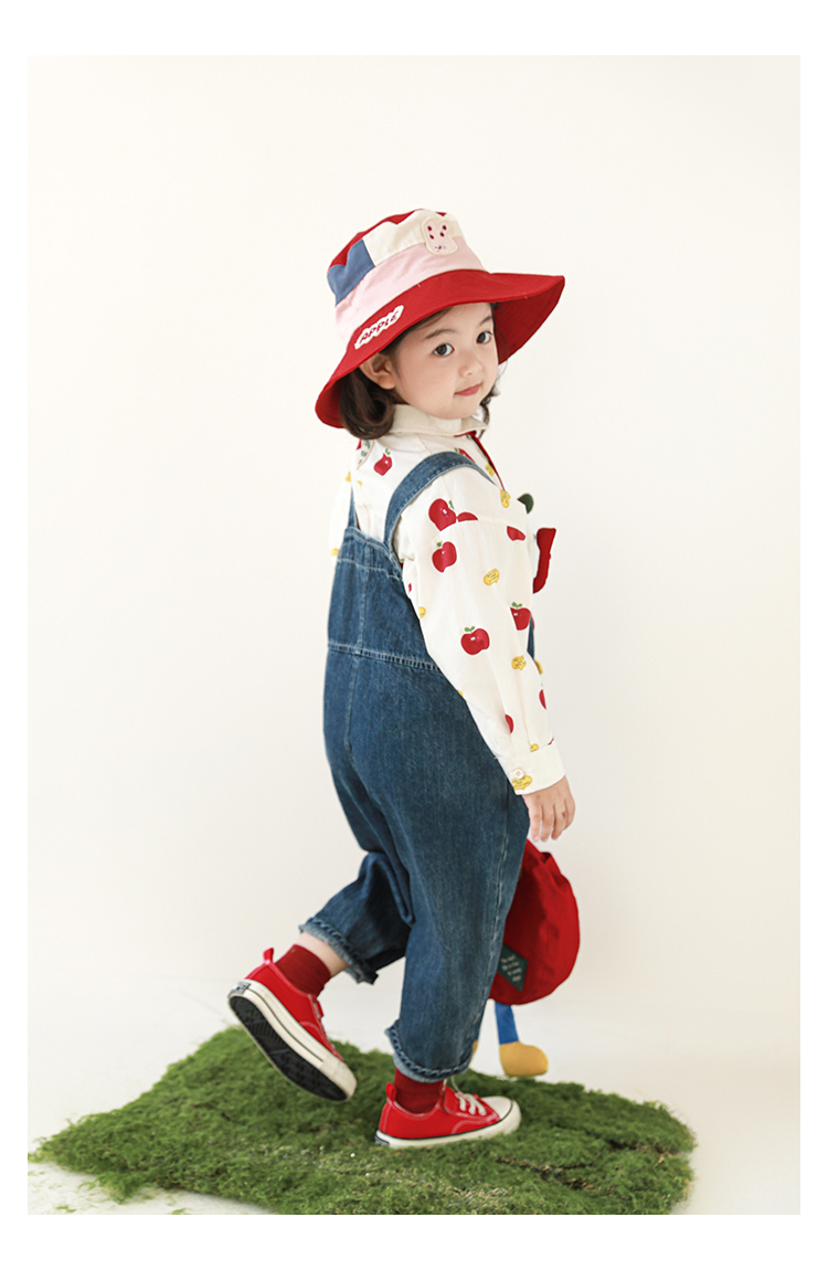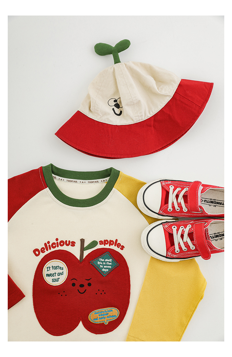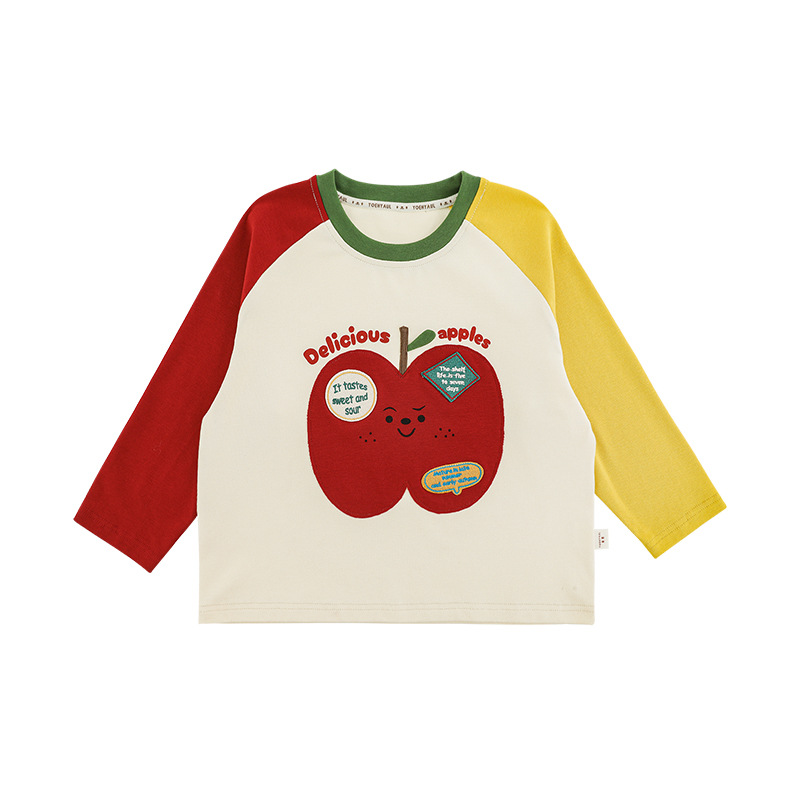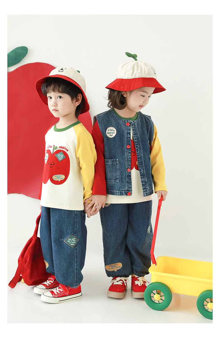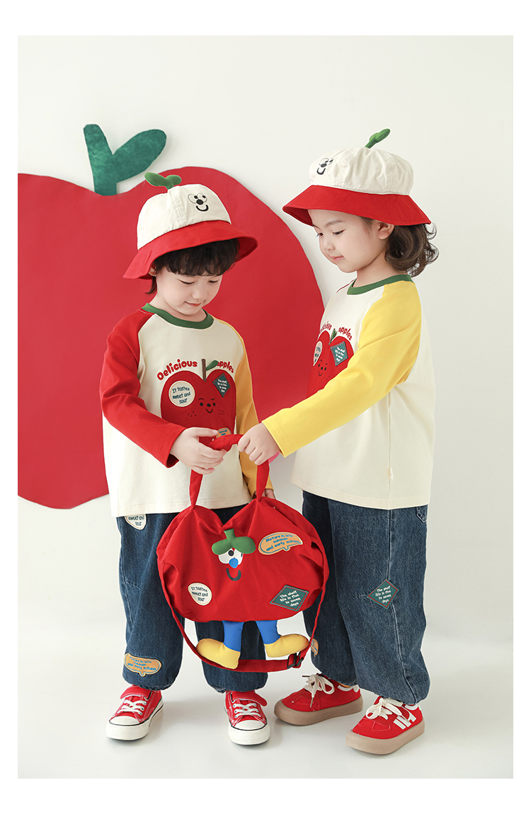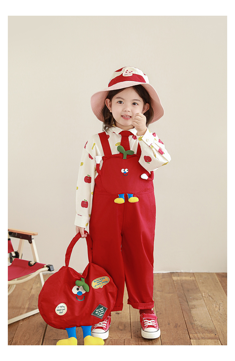 Wuri Boyi Girls Apple Talent 시리즈 2025 봄 랩 칼라 셔츠 대조 Raglan 소매 티셔츠 스트랩 바지스토어 가기