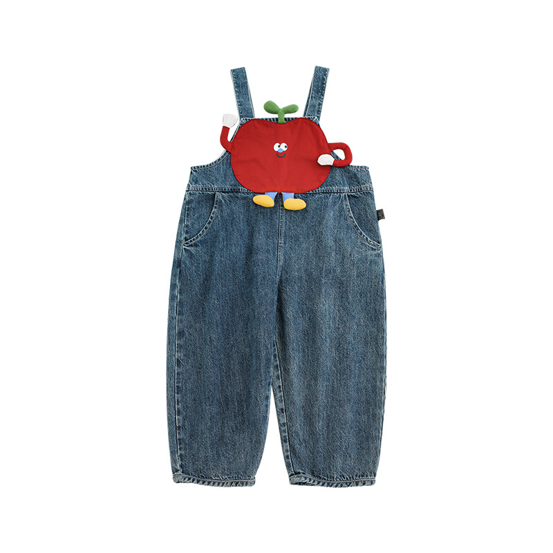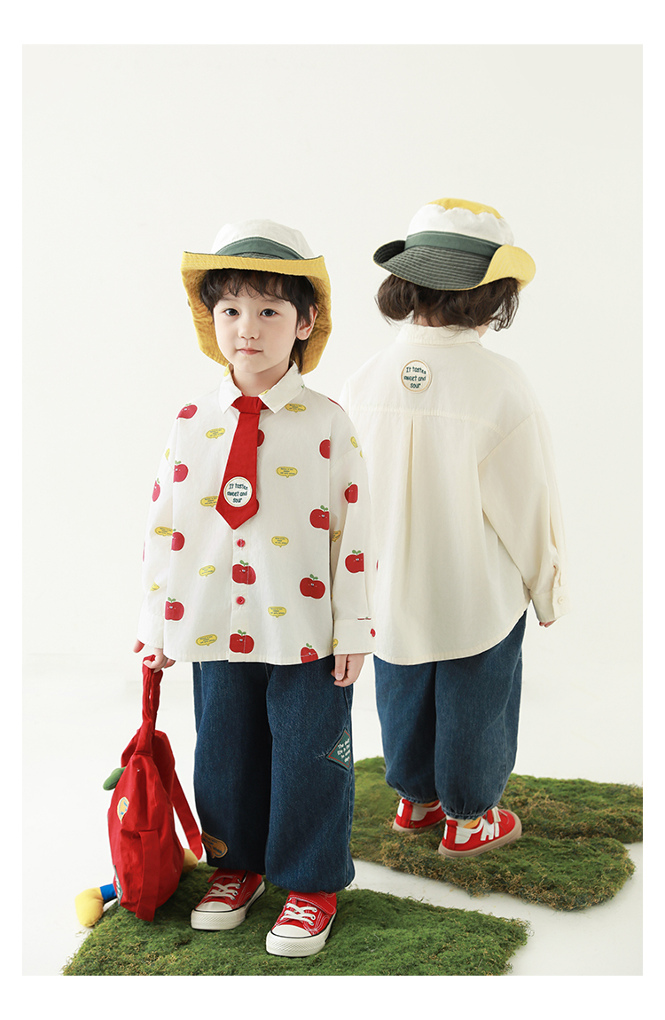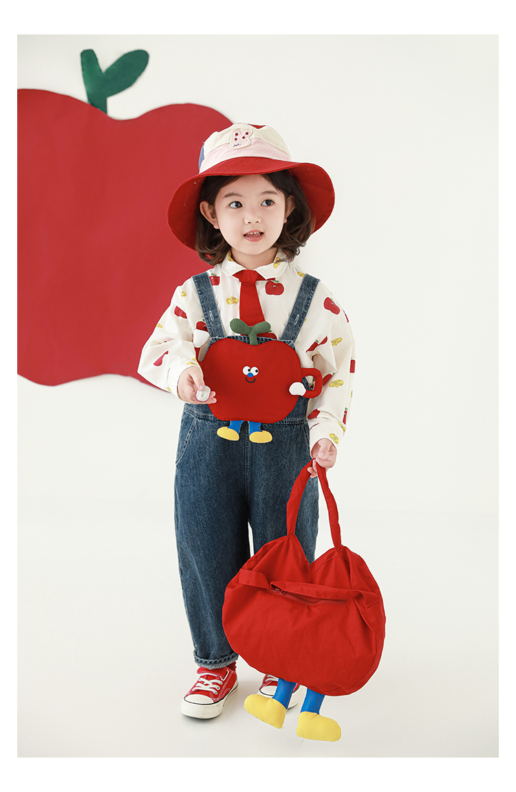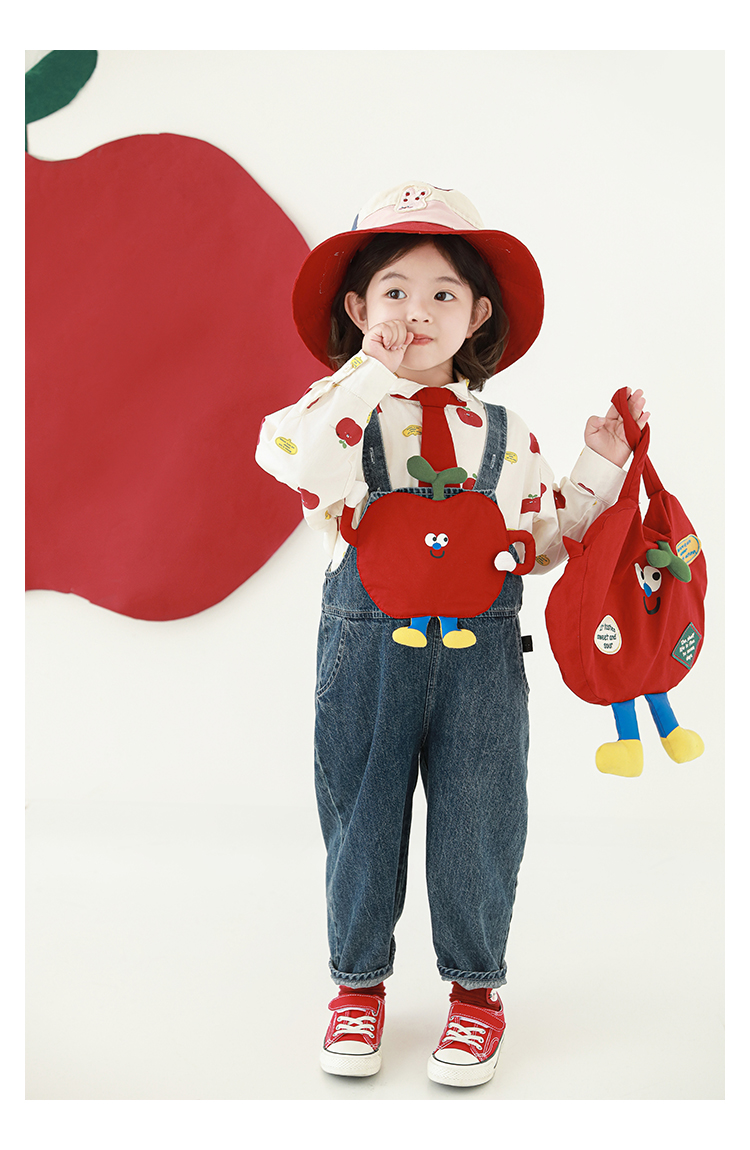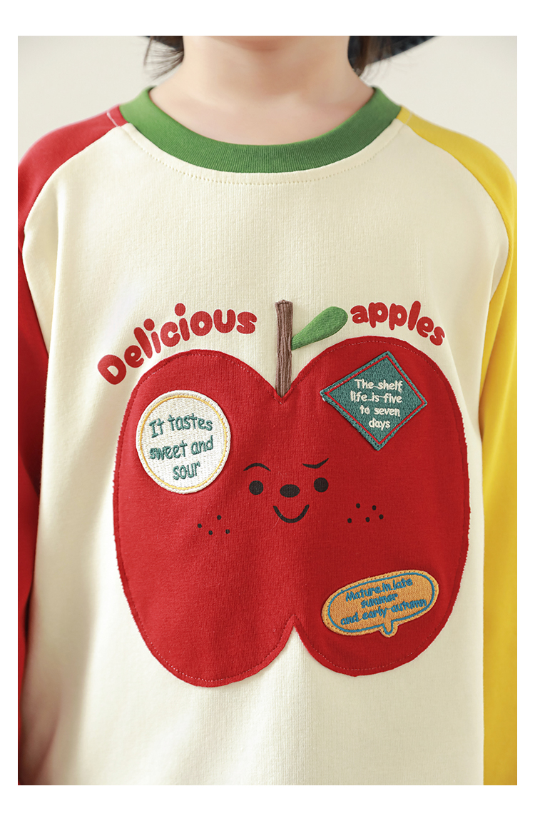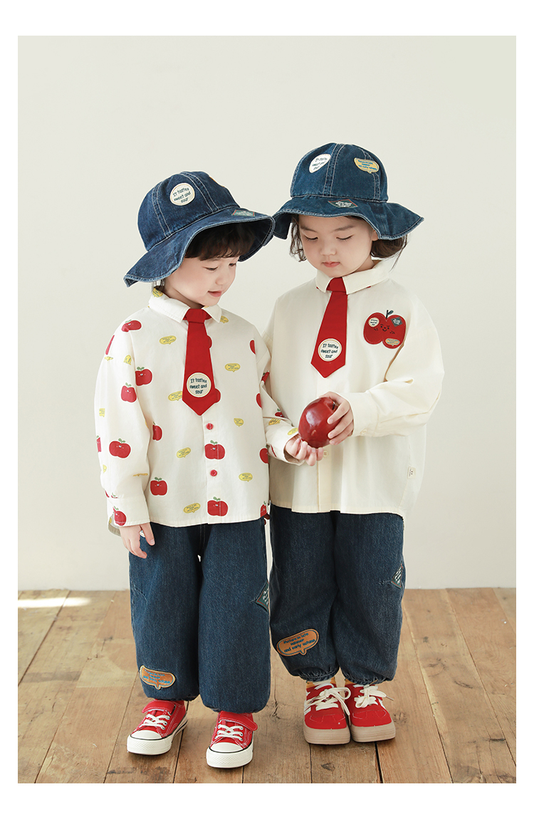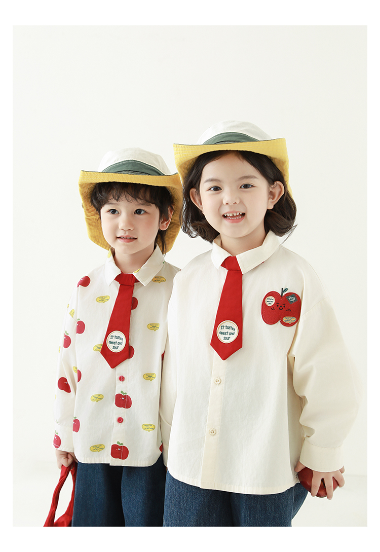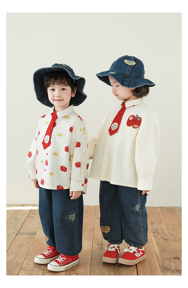 Wuri Boyi Girls Apple Talent 시리즈 2025 봄 랩 칼라 셔츠 대조 Raglan 소매 티셔츠 스트랩 바지스토어 가기