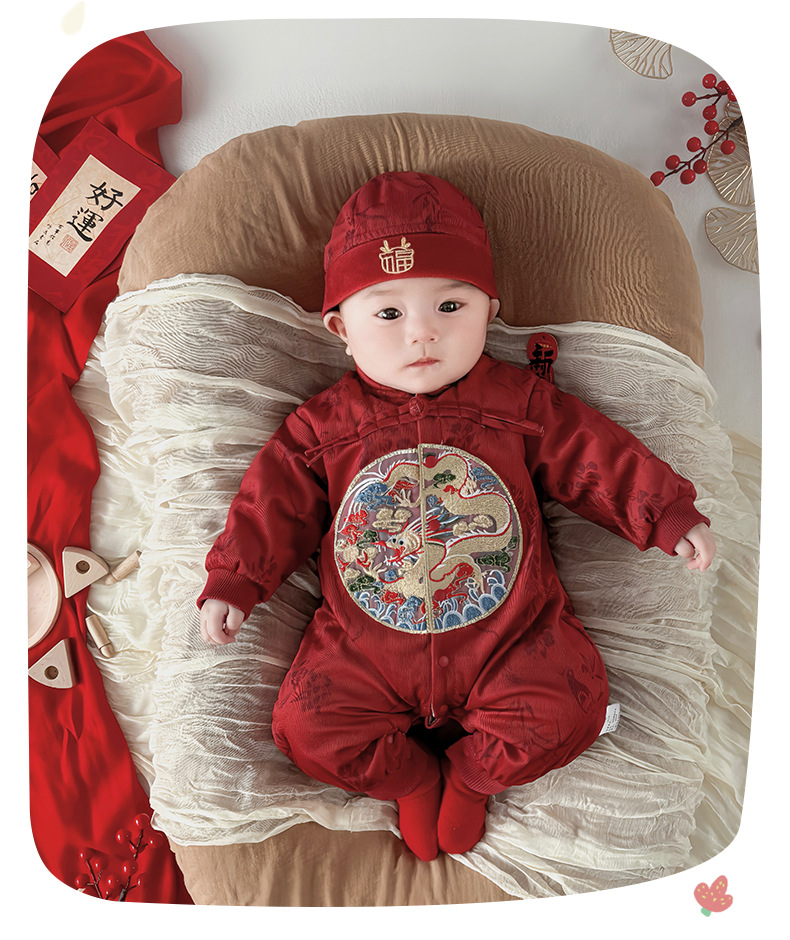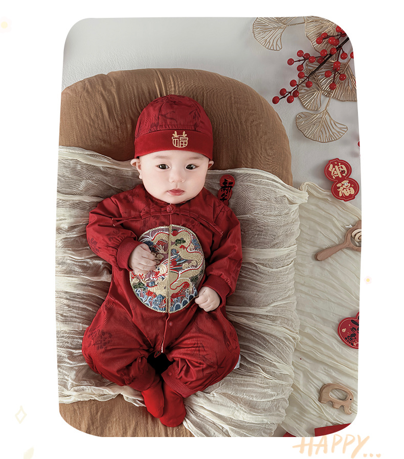아기 옷 봄과 가을 유니폼 옷 보름달 등반 소년 아기 부화 옷 5113 중국 스타일 축제 새해 인사말 옷