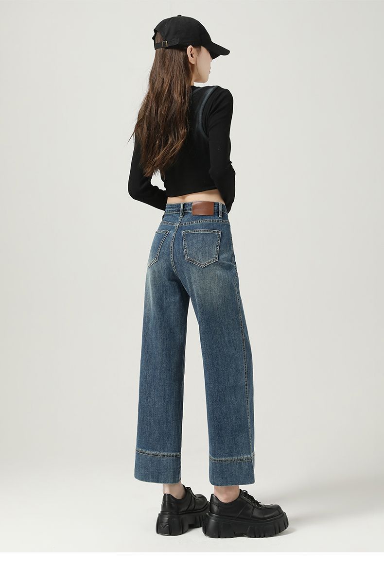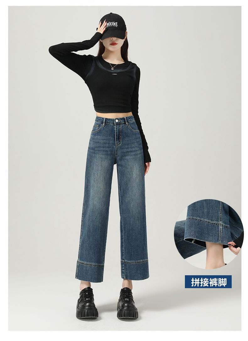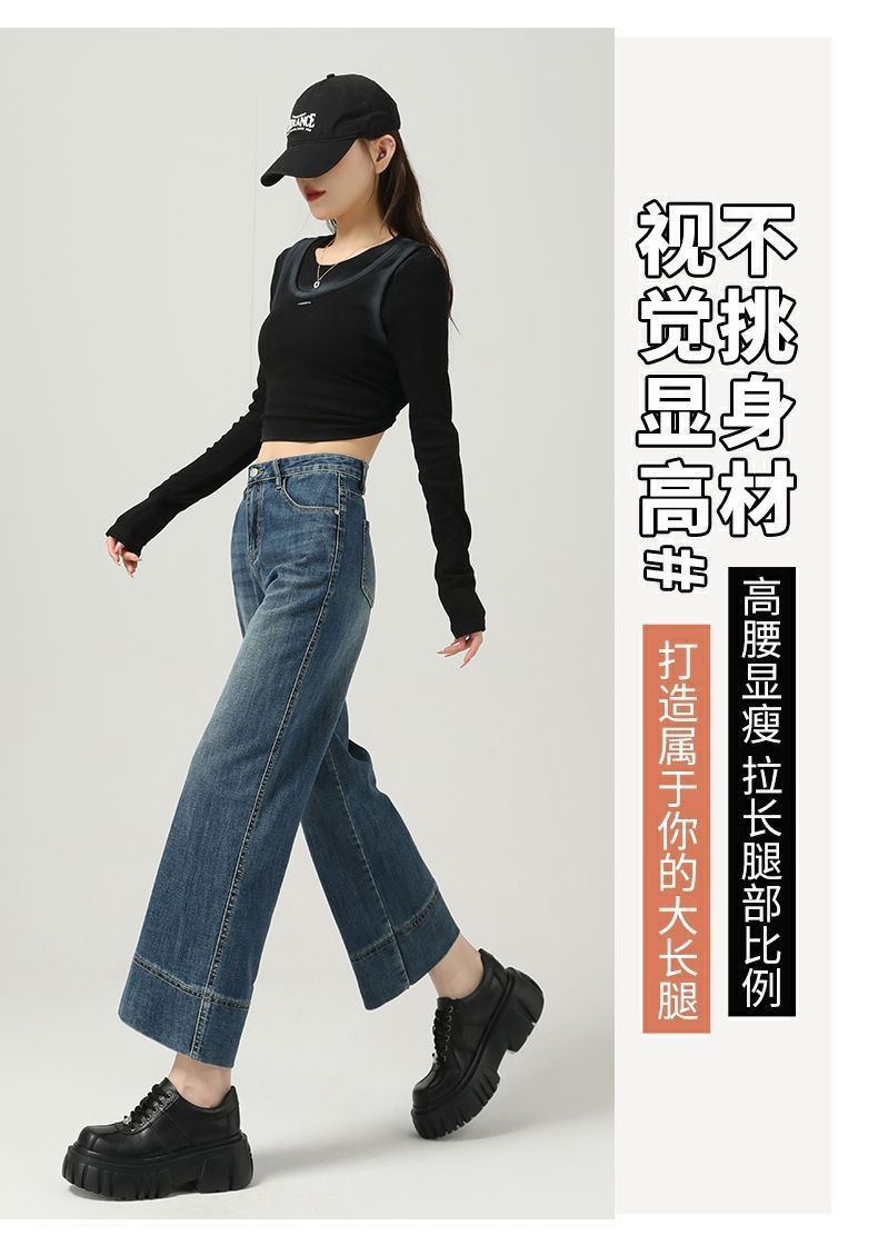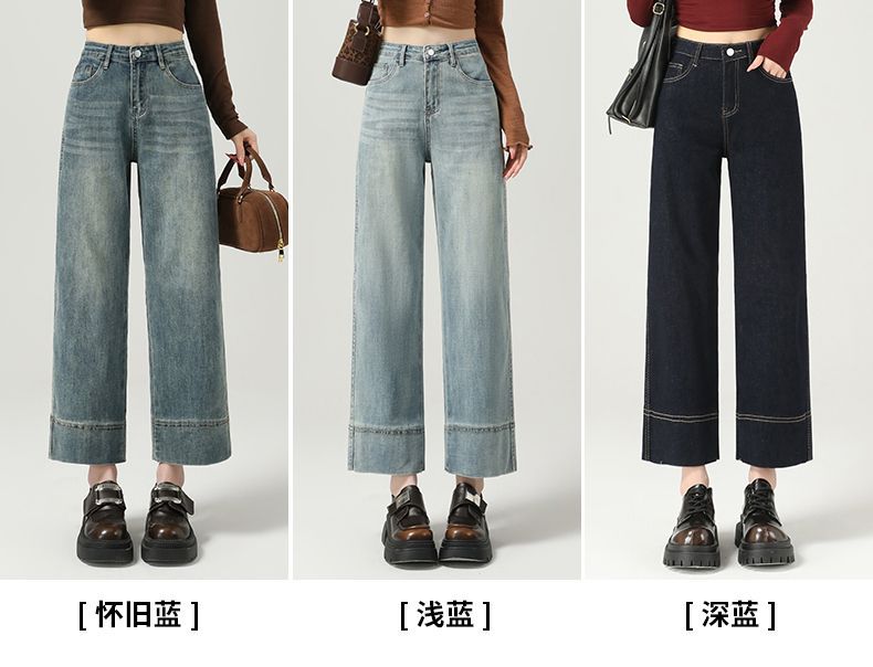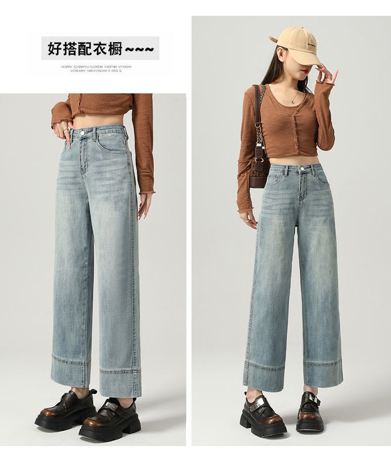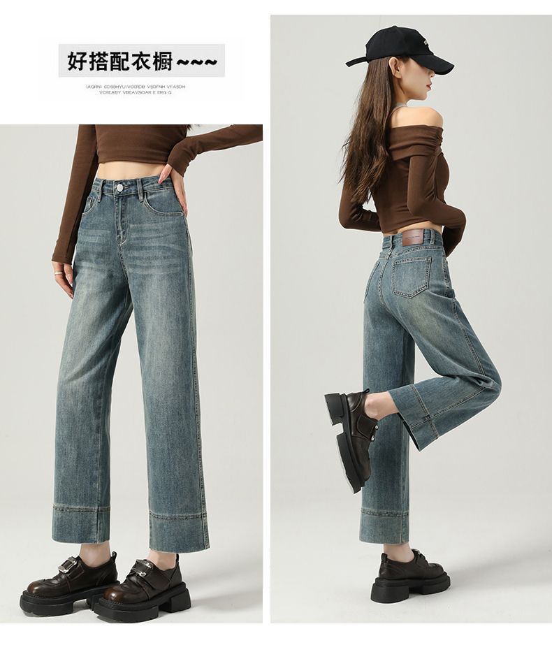 봄 2025 새로운 미국 스타일 레트로 와이드 레그 청바지 여성용 세탁 블루 루즈 슬리밍 스트레이트 팬츠스토어 가기