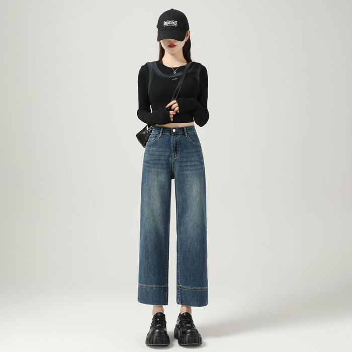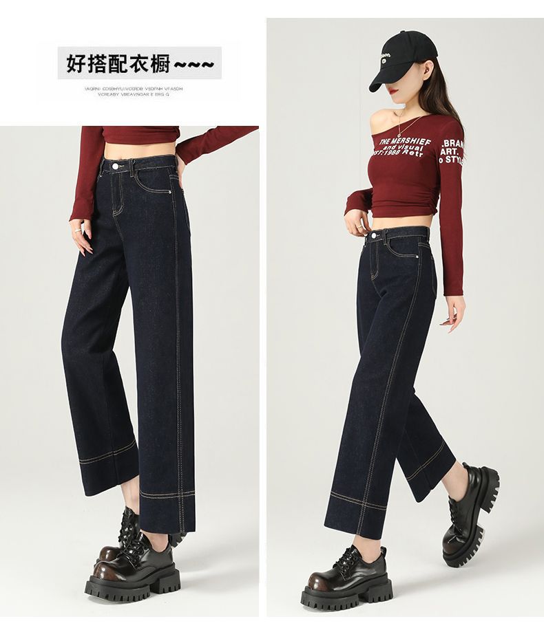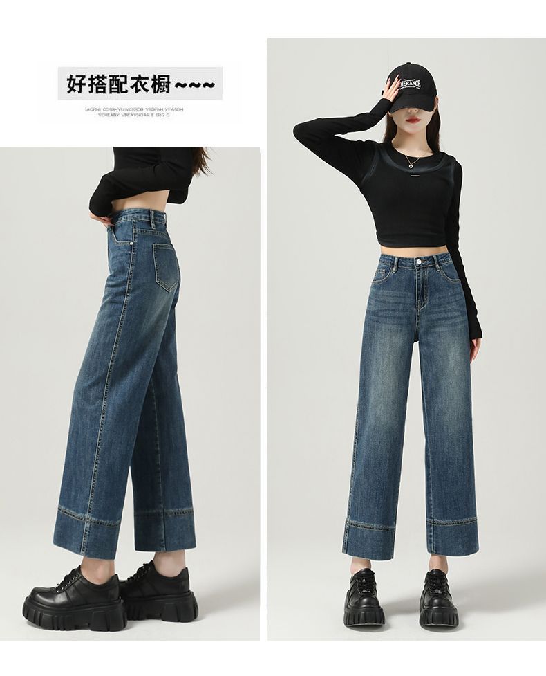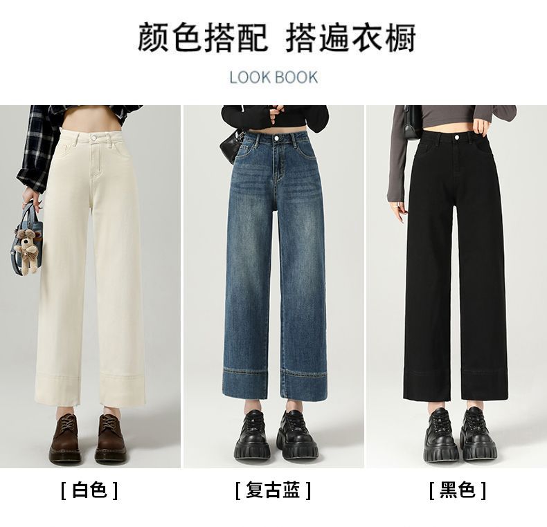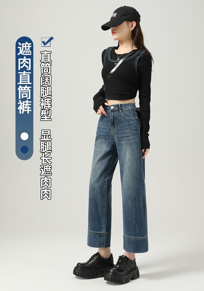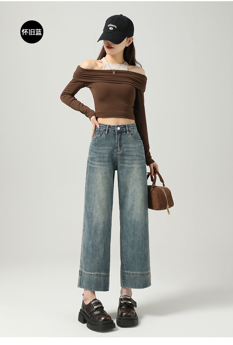 봄 2025 새로운 미국 스타일 레트로 와이드 레그 청바지 여성용 세탁 블루 루즈 슬리밍 스트레이트 팬츠스토어 가기