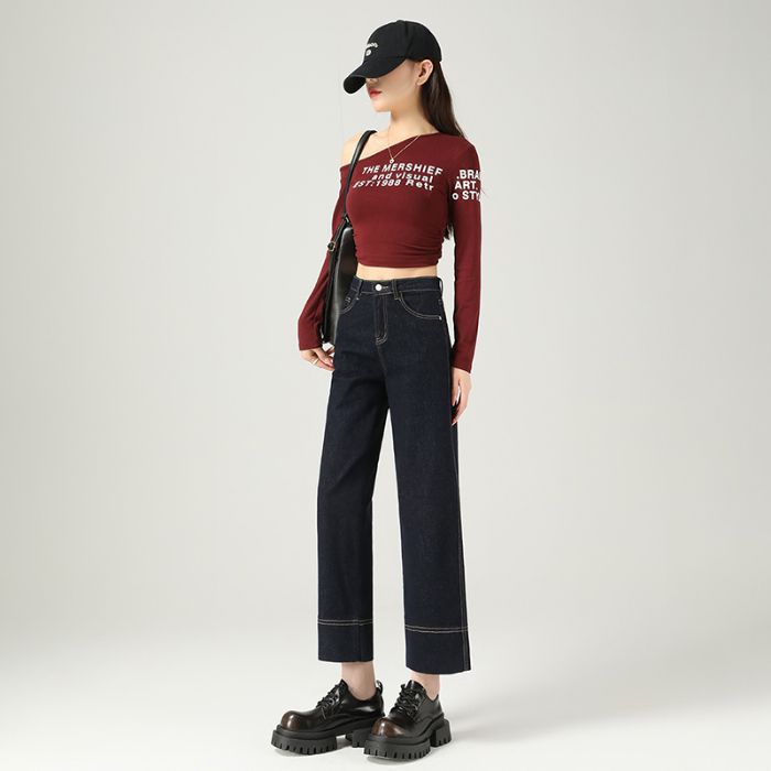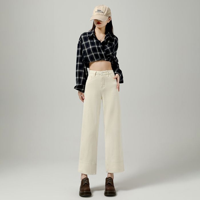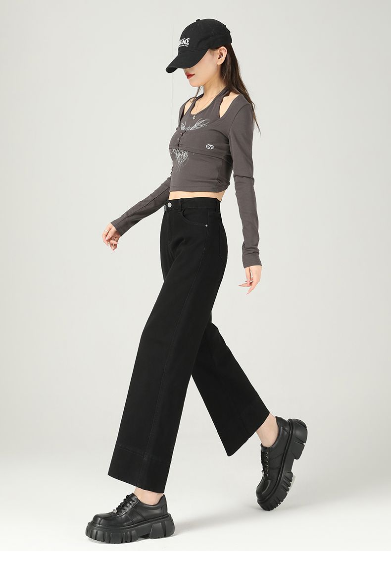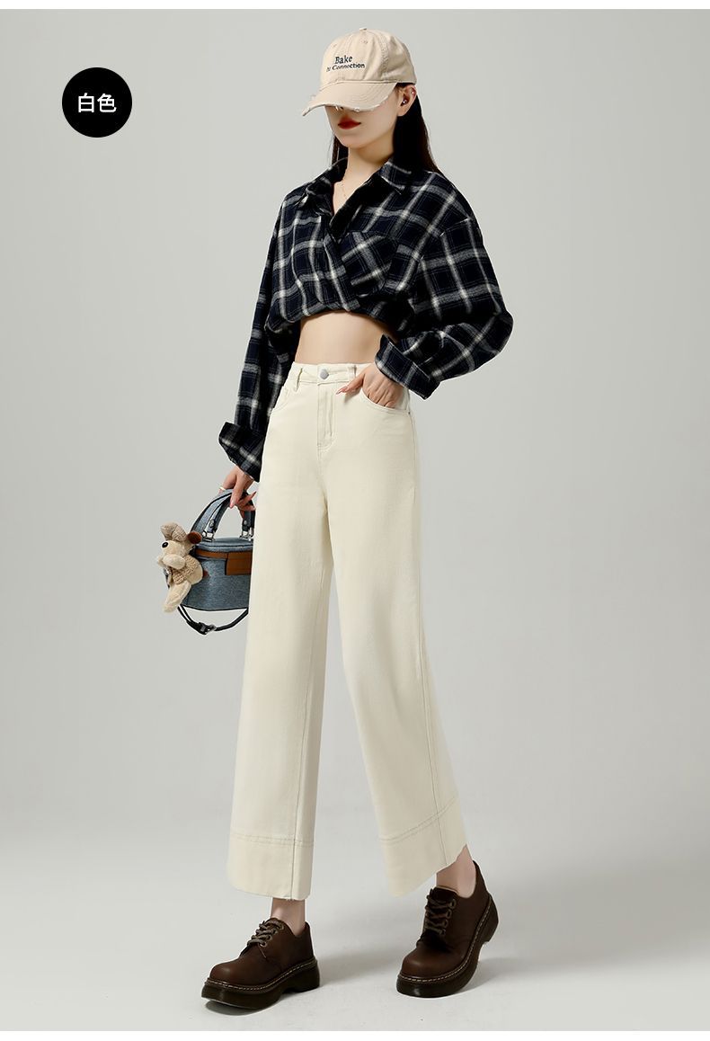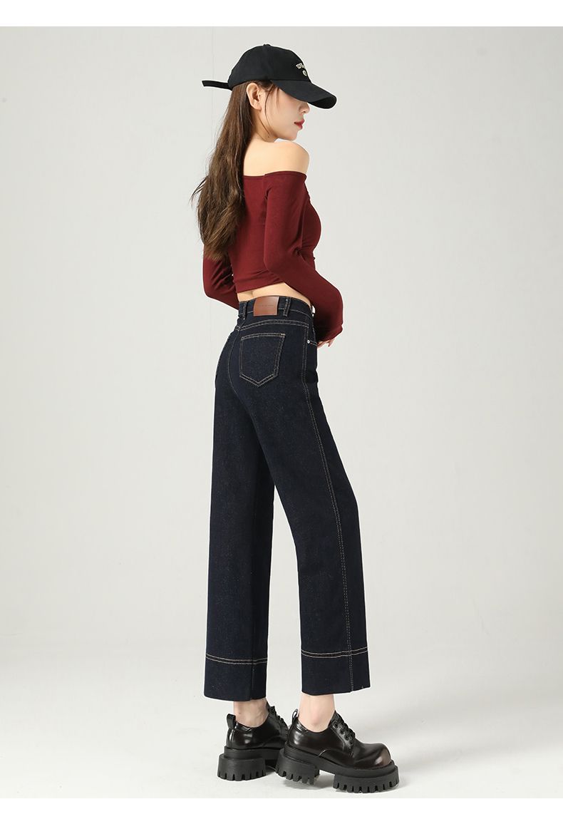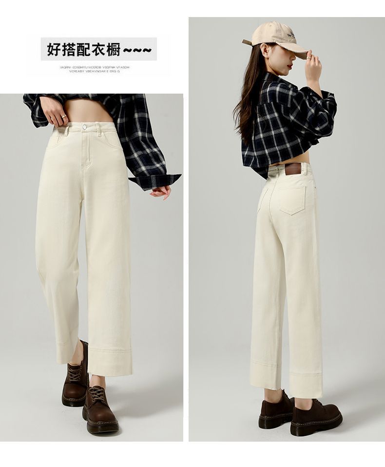 봄 2025 새로운 미국 스타일 레트로 와이드 레그 청바지 여성용 세탁 블루 루즈 슬리밍 스트레이트 팬츠스토어 가기