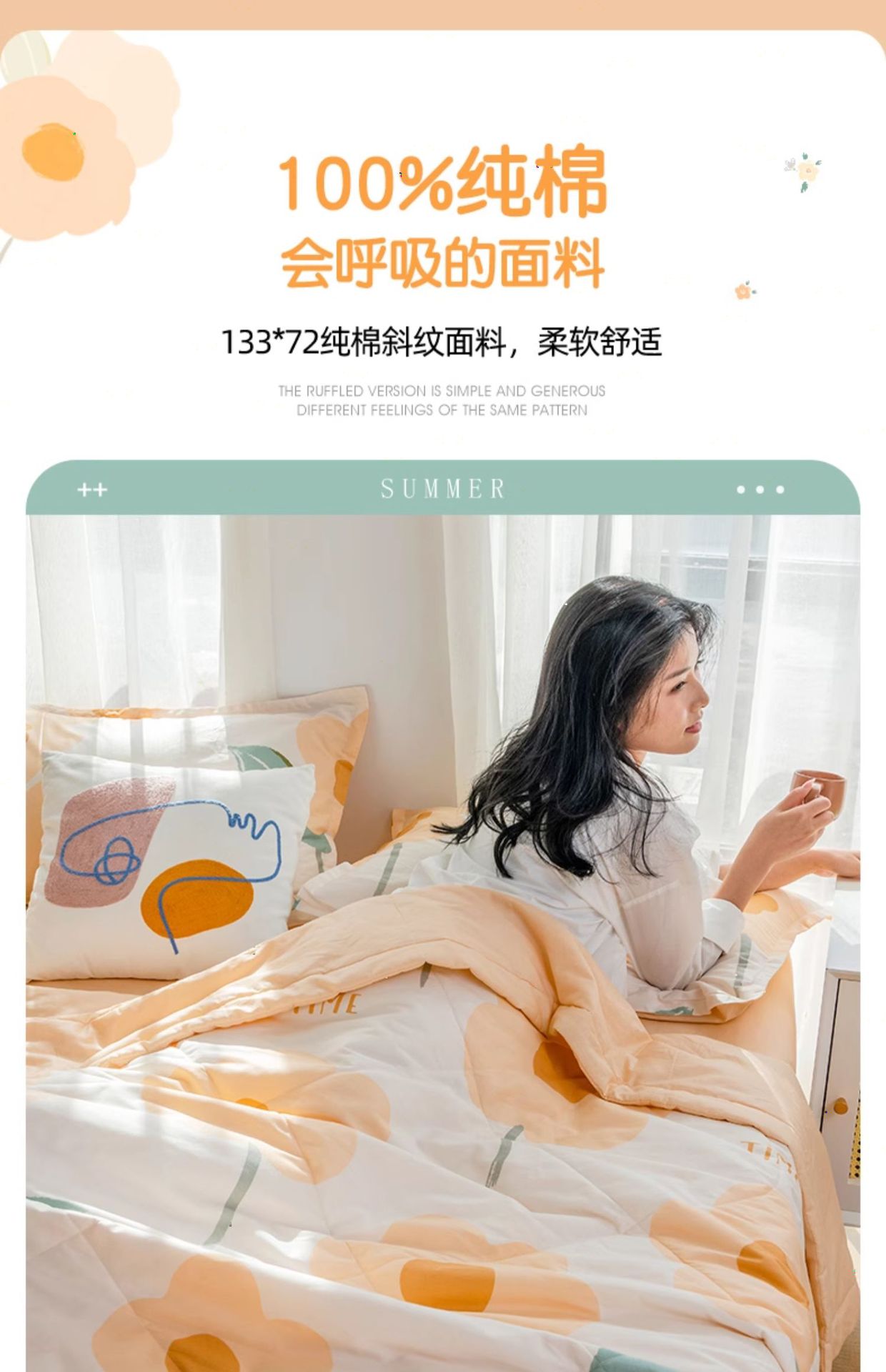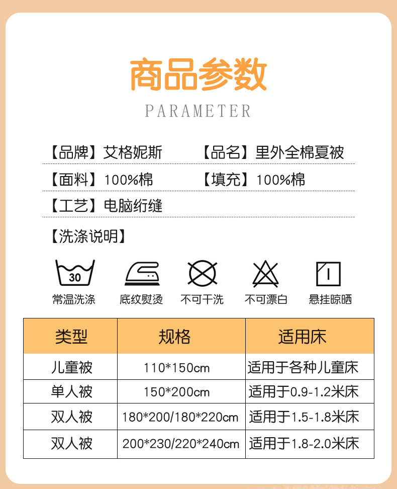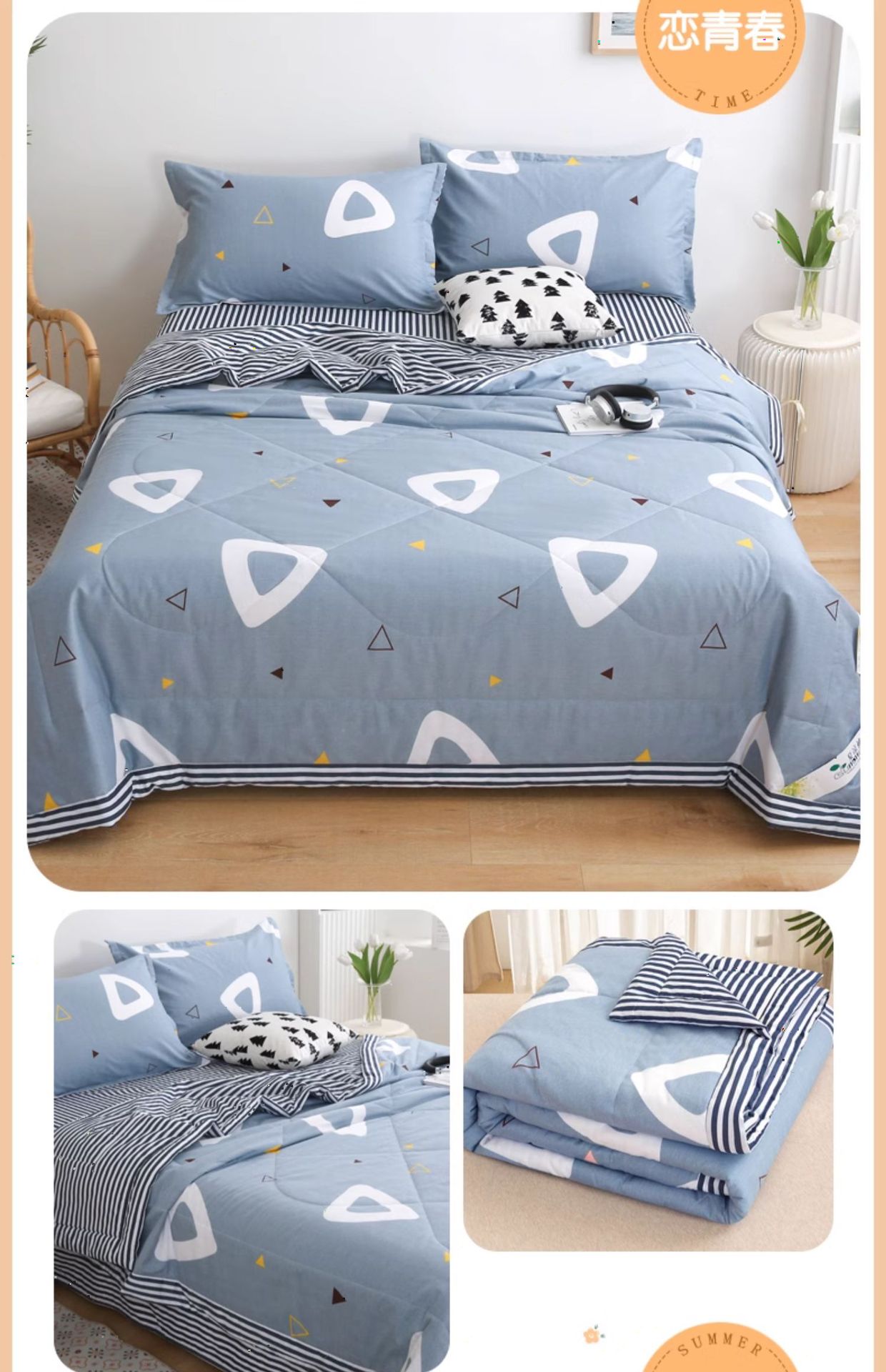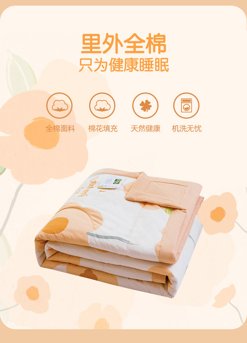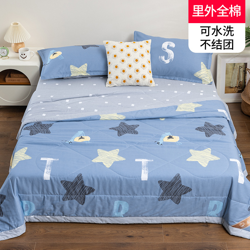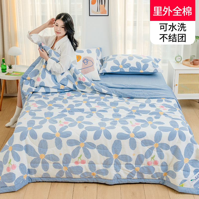 A급 순면 여름 이불, 내외면 모두 순면 여름 이불 4종 세트, 신장면 에어컨 이불, 어린이 여름 얇은 이불