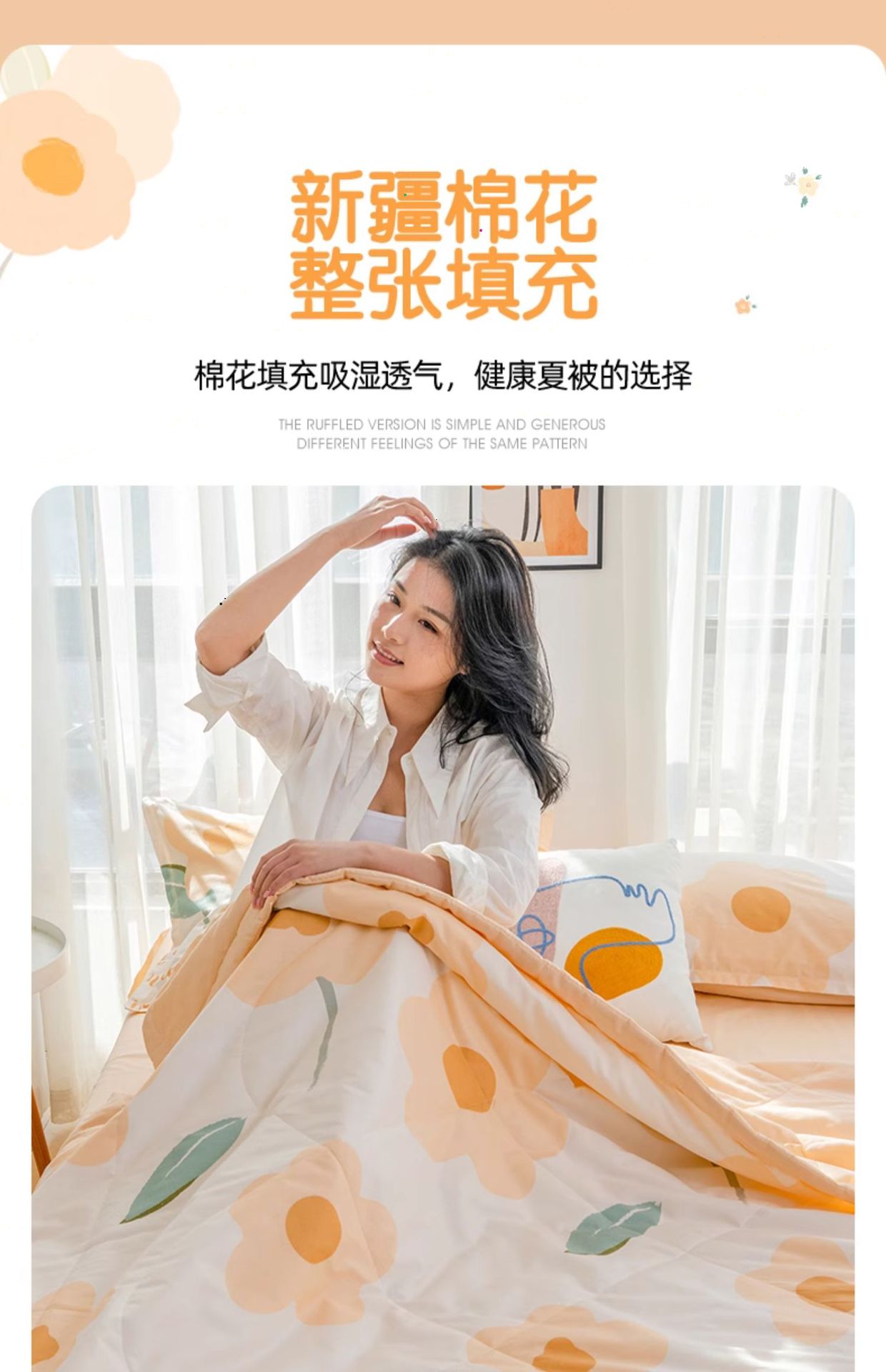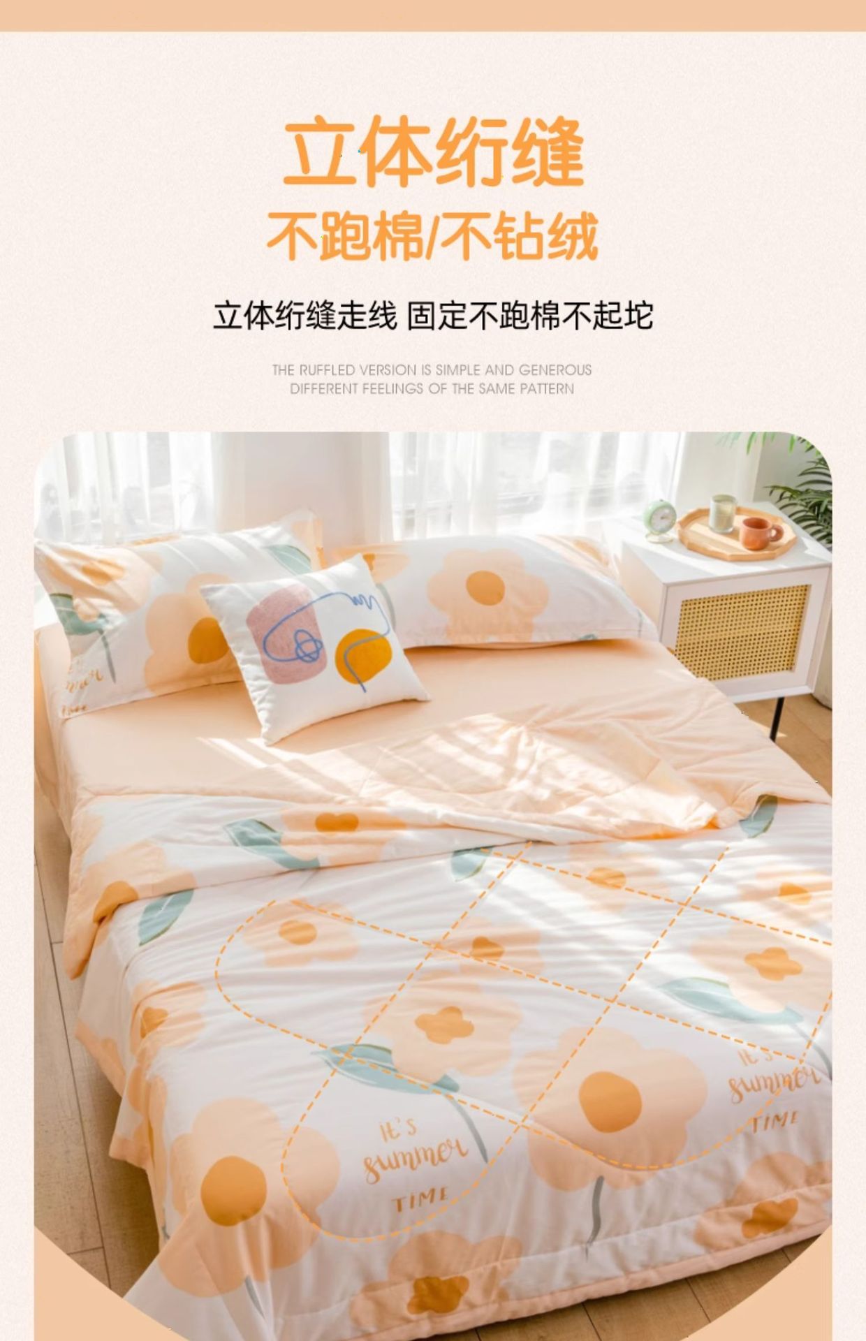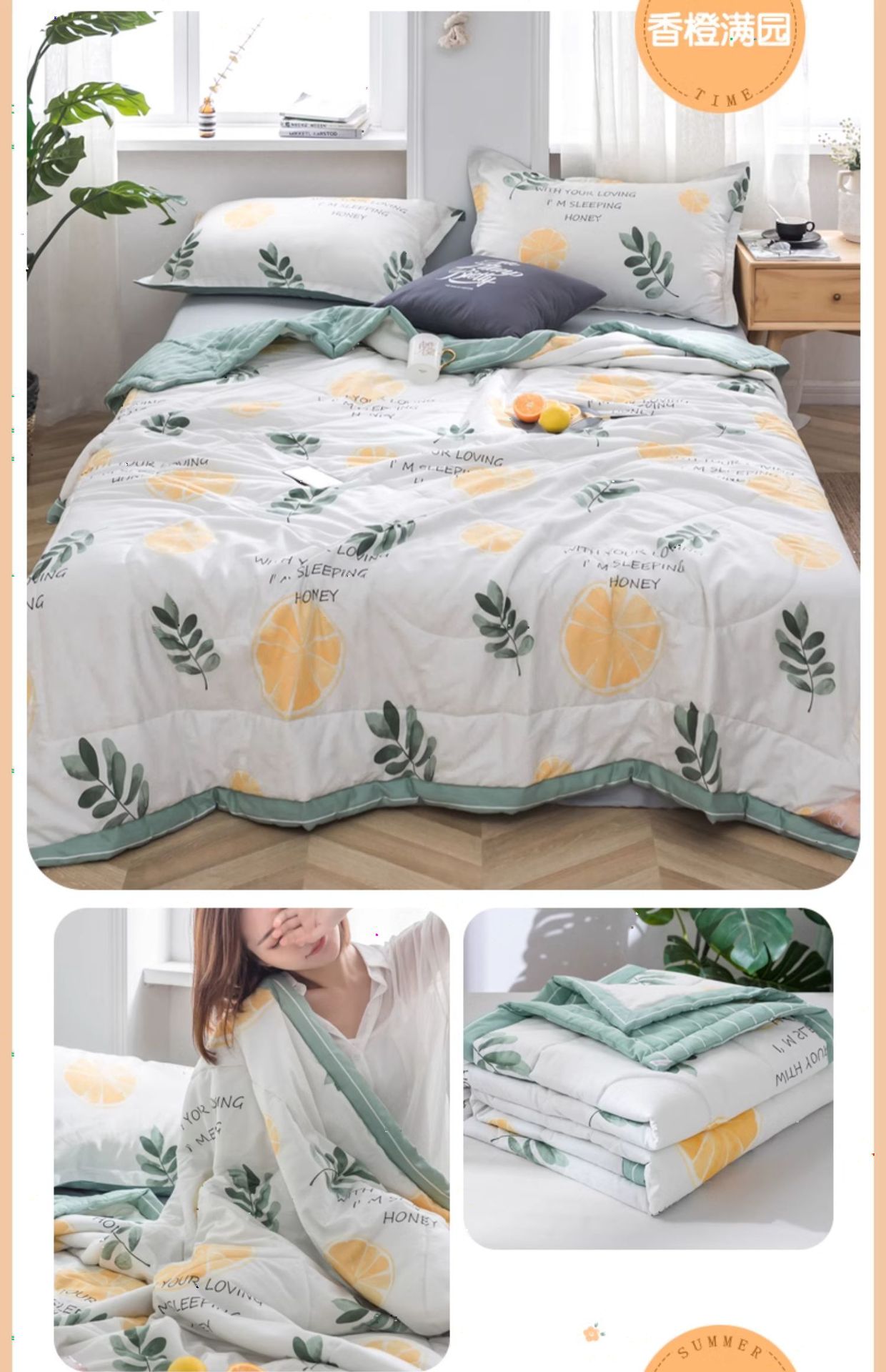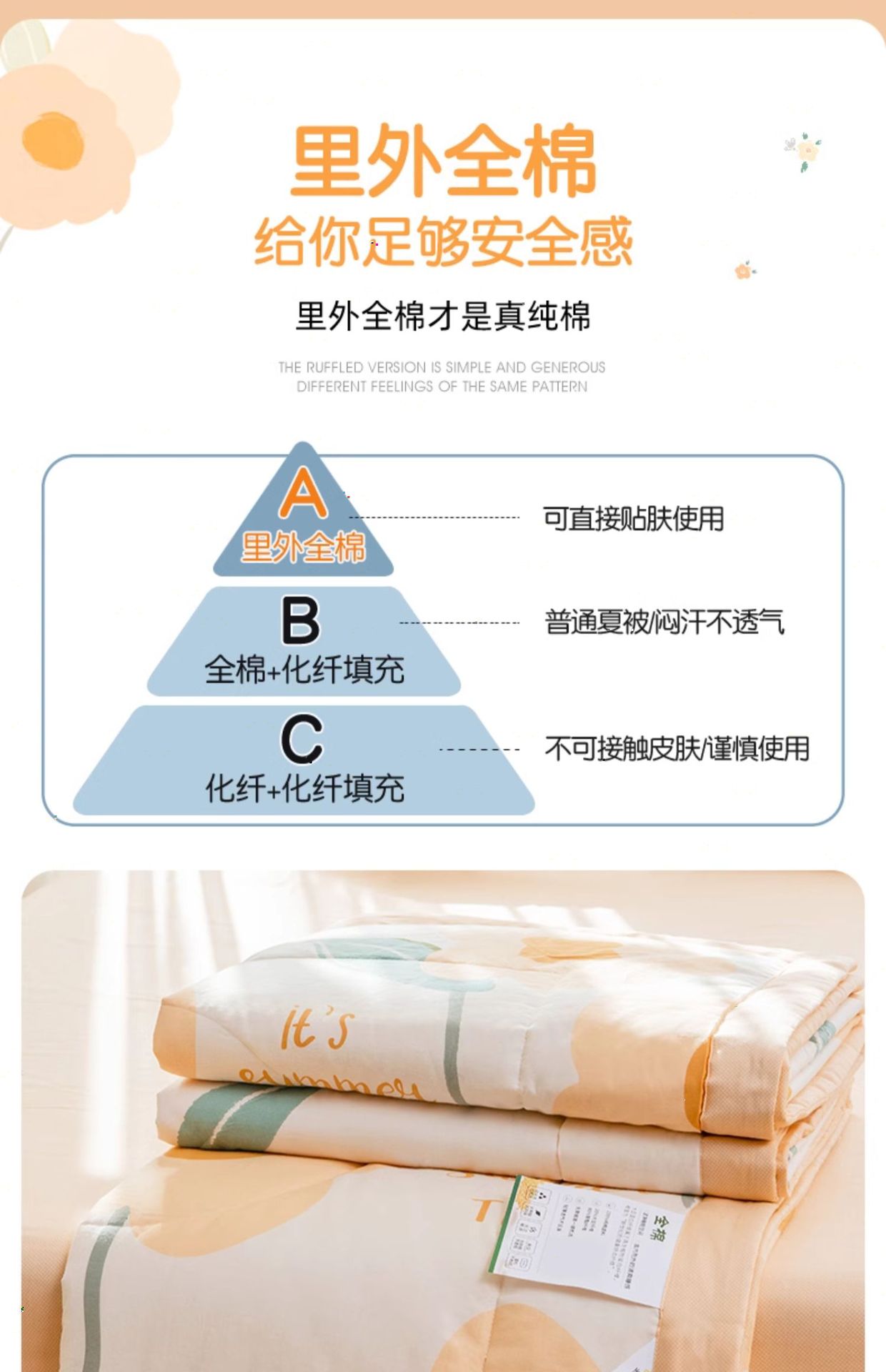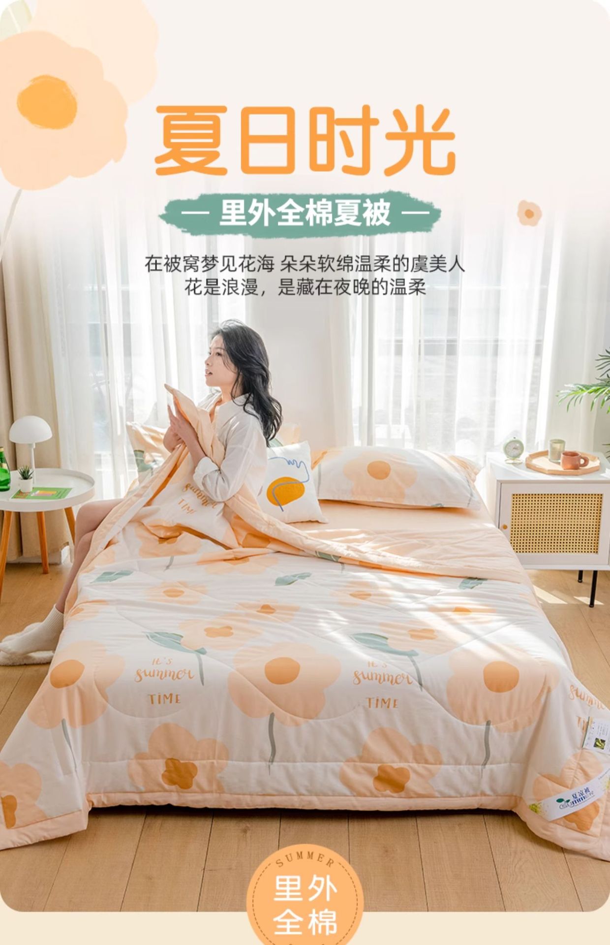 A급 순면 여름 이불, 내외면 모두 순면 여름 이불 4종 세트, 신장면 에어컨 이불, 어린이 여름 얇은 이불