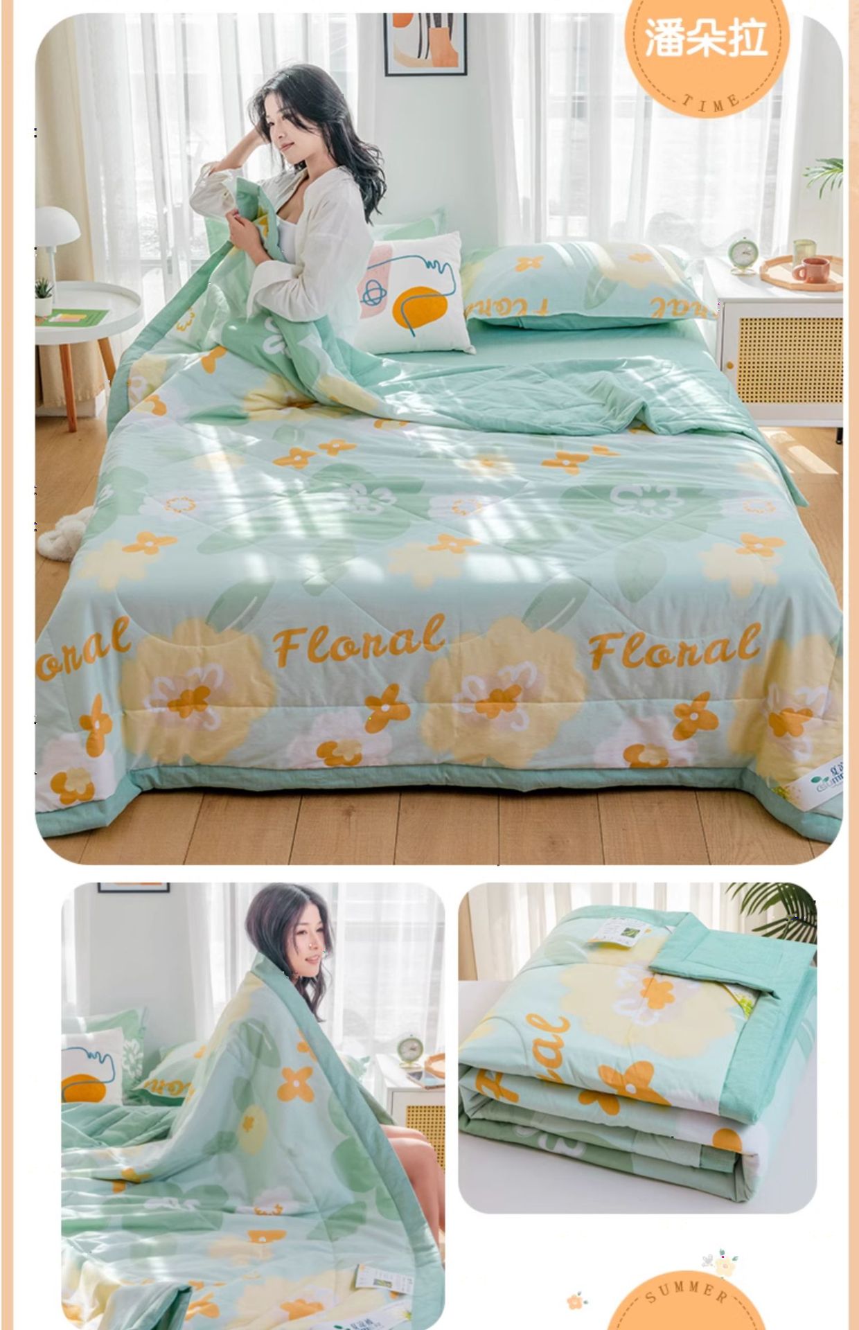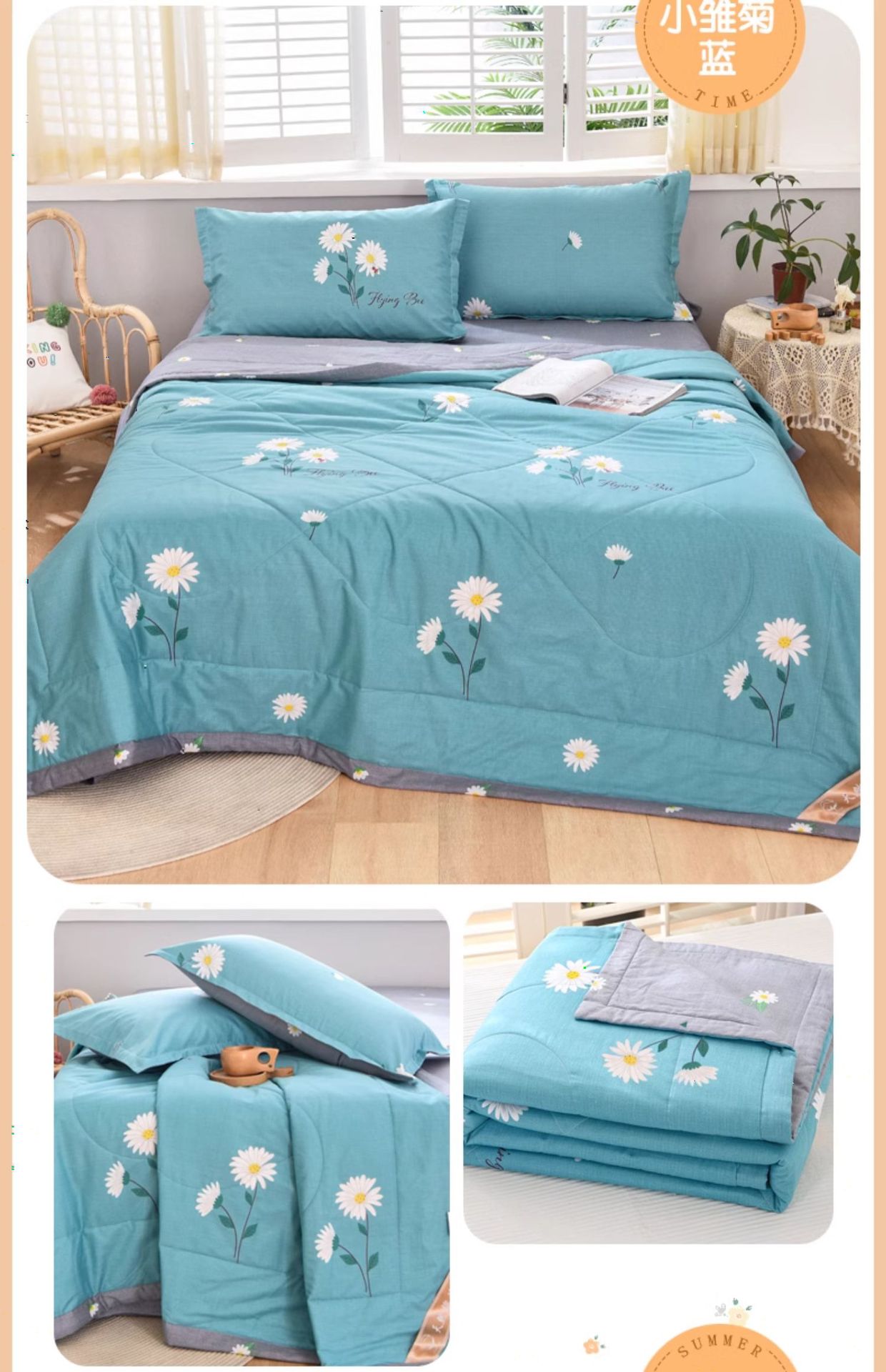 A급 순면 여름 이불, 내외면 모두 순면 여름 이불 4종 세트, 신장면 에어컨 이불, 어린이 여름 얇은 이불스토어 가기