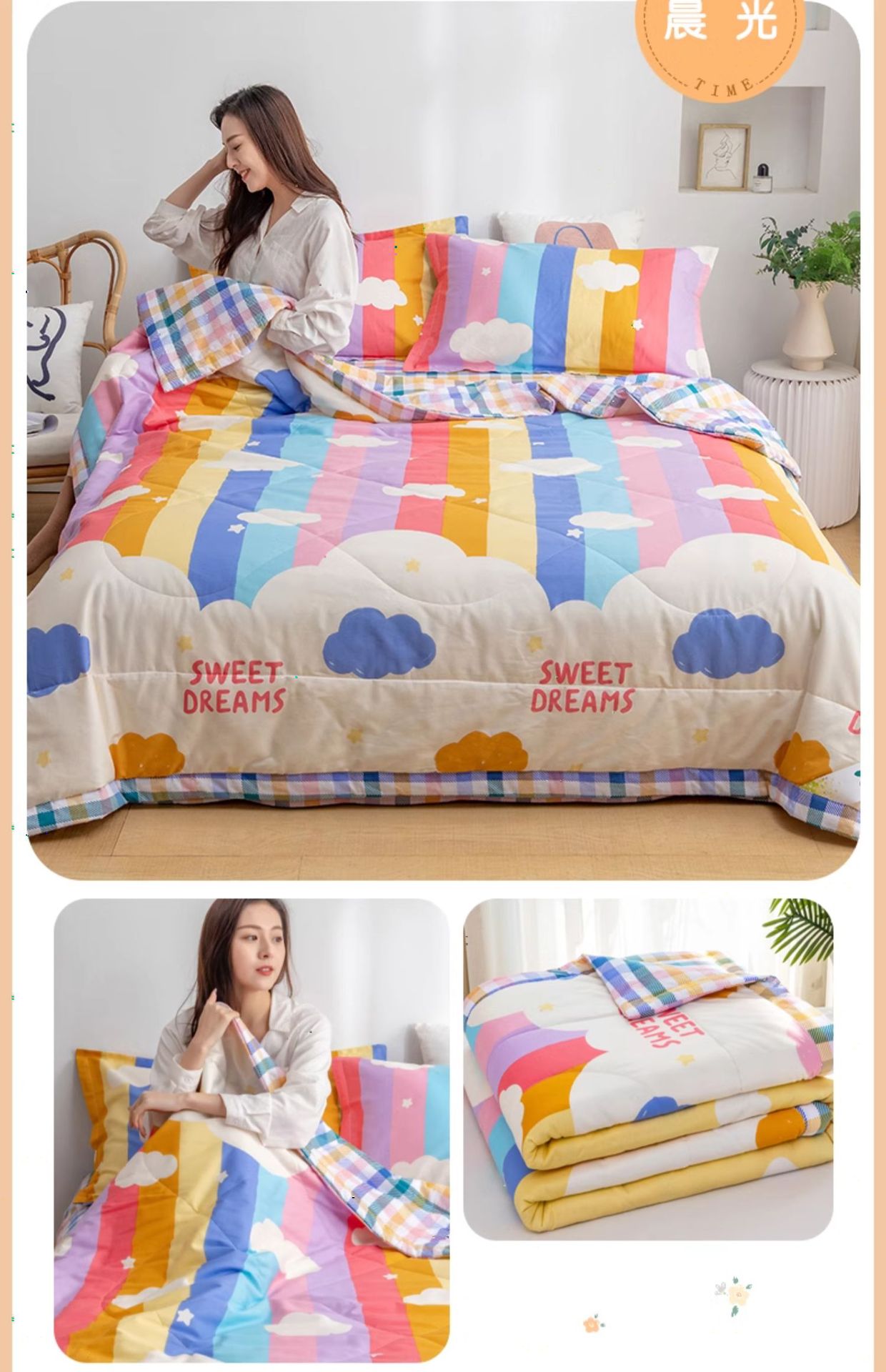 • 180X200cm 에어컨 이불 + 베갯잇 2개 + 침대 시트 230x250cm