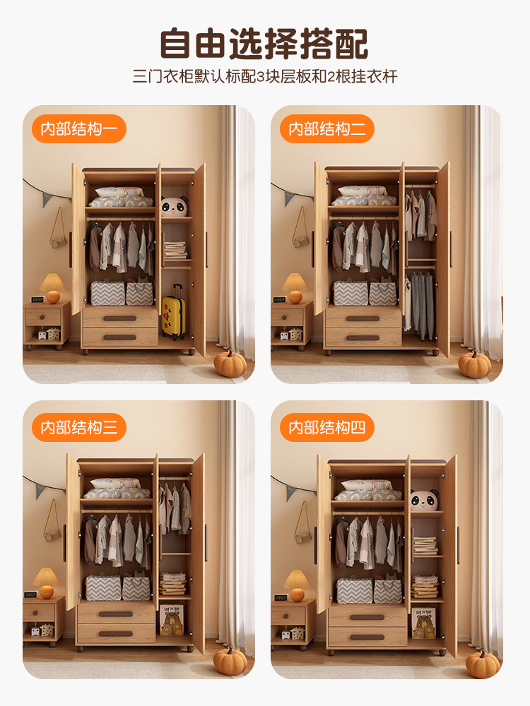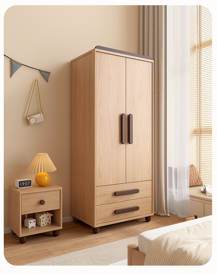 어린이 옷장 단단한 나무 침실 가구 현대 간단한 아기의 작은 아파트 옷장 더블 3 도어 옷장