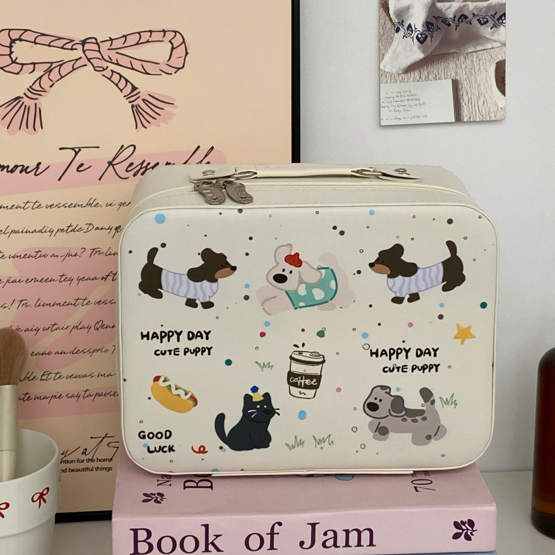 만화 강아지 화장품 가방 2025 새로운 화장품 케이스 높은 가치 대용량 스킨 케어 제품 보관 휴대용 화장품 케이스