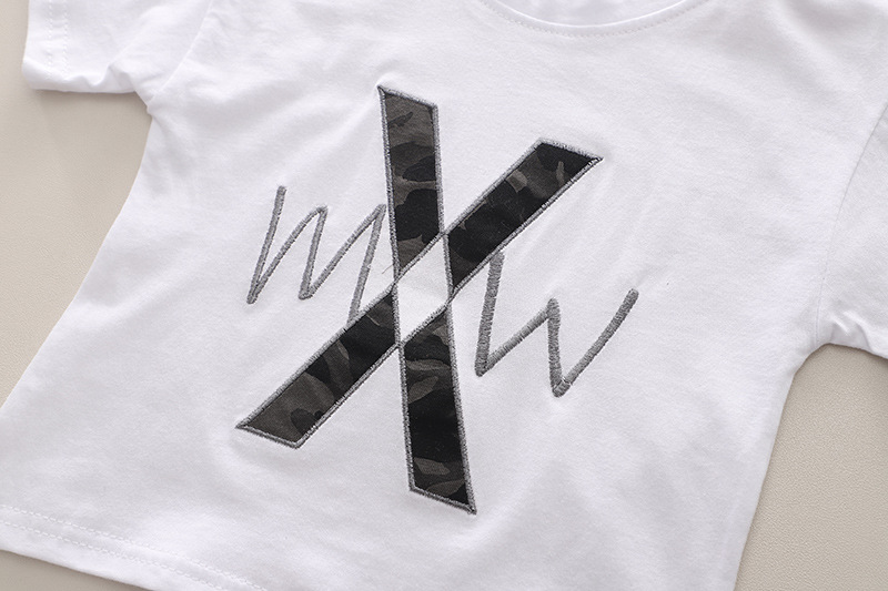 남학생 여름 착용 세트 2025 새로운 스타일 아기 여름 어린이 캐주얼 큰 편지 크루 넥 두 조각 유행 세트