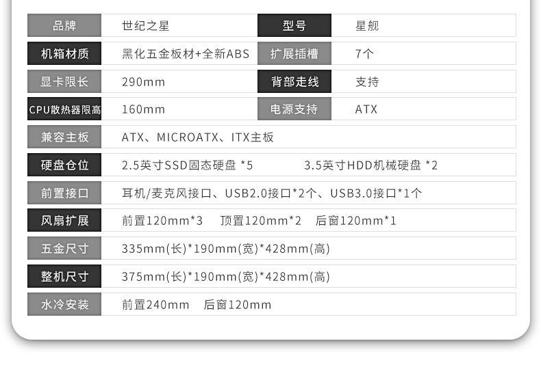Century Starship 컴퓨터 메인 케이스 USB3.0 측면 투명 유리 게임 ATX 섀시 수냉식 메인 케이스스토어 가기