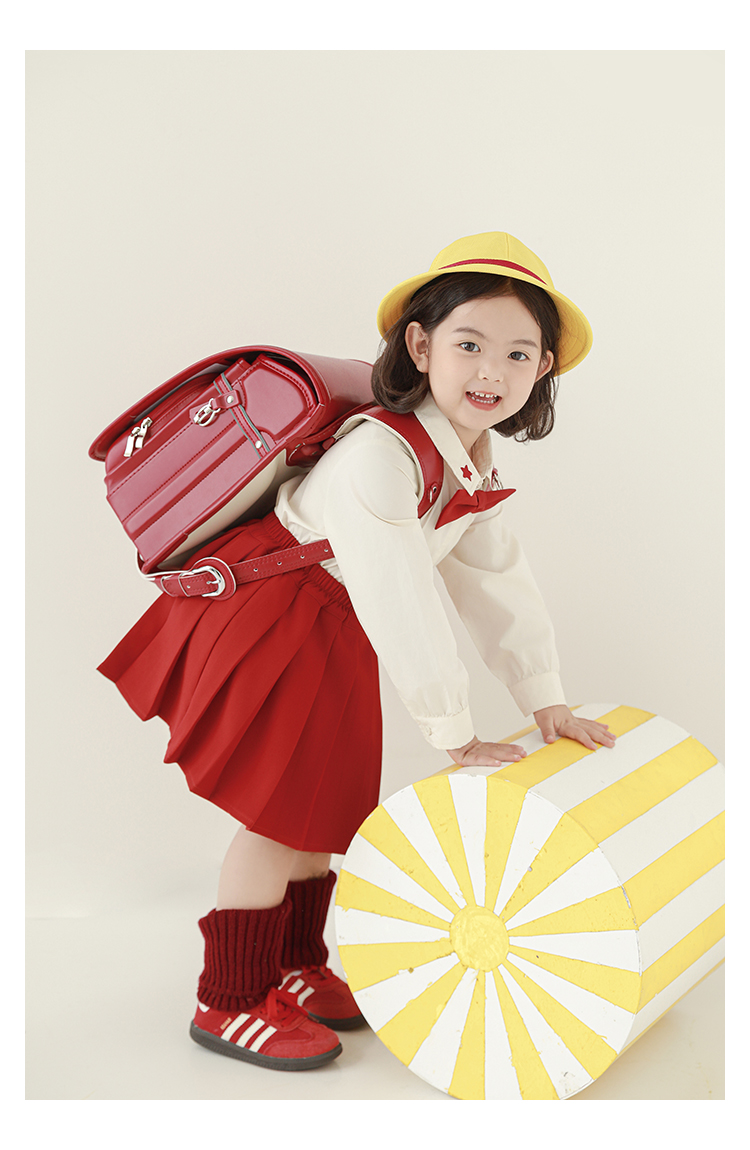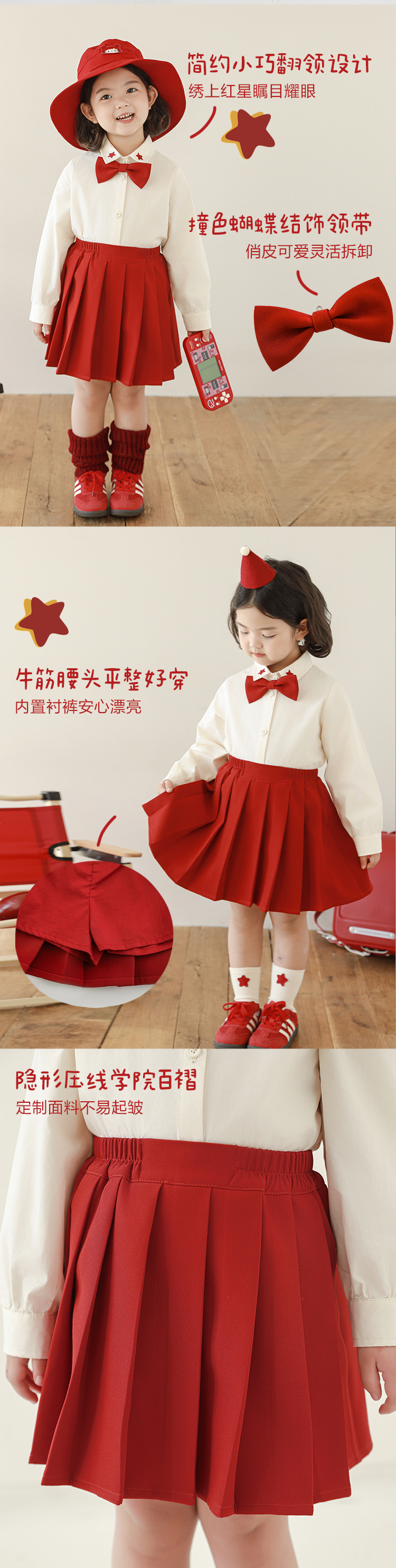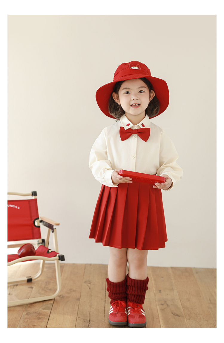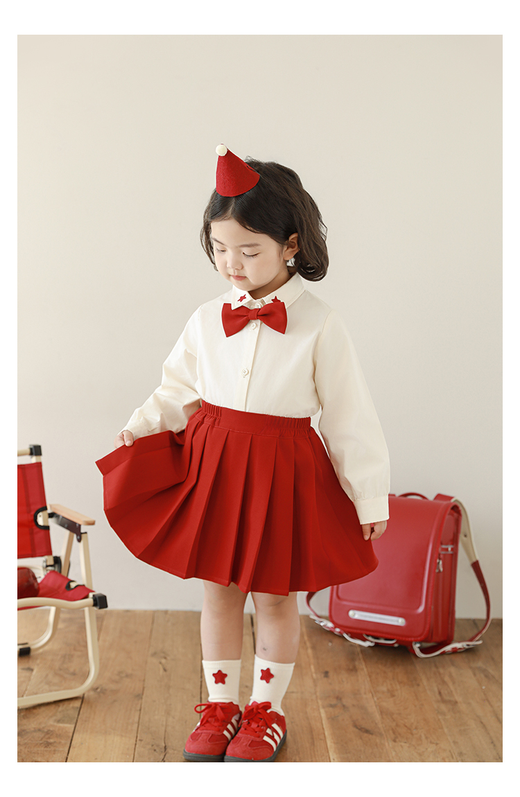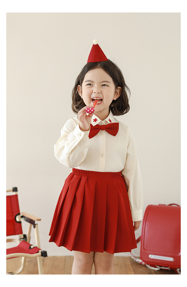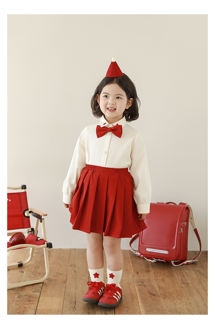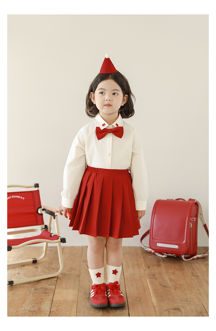 Wuri Boyi 소녀 레인보우 파라다이스 세트 빨간색과 파란색 줄무늬 V-Neck 스웨터 조끼 간단한 셔츠 스커트 트렌디스토어 가기
