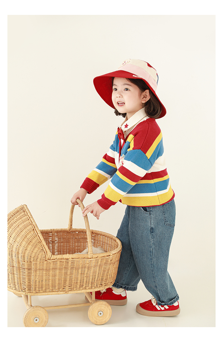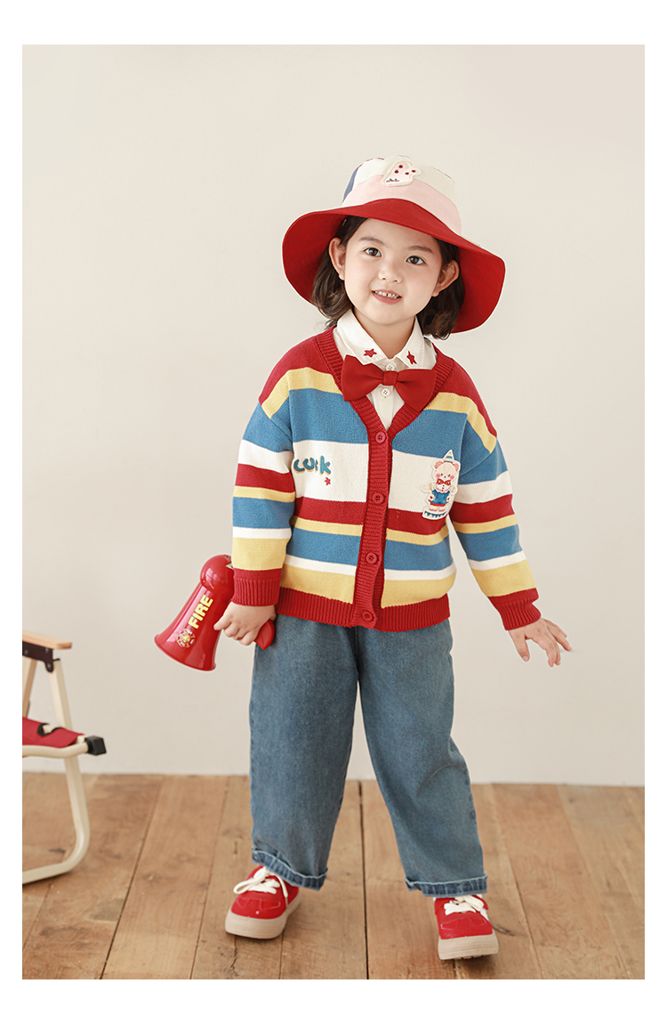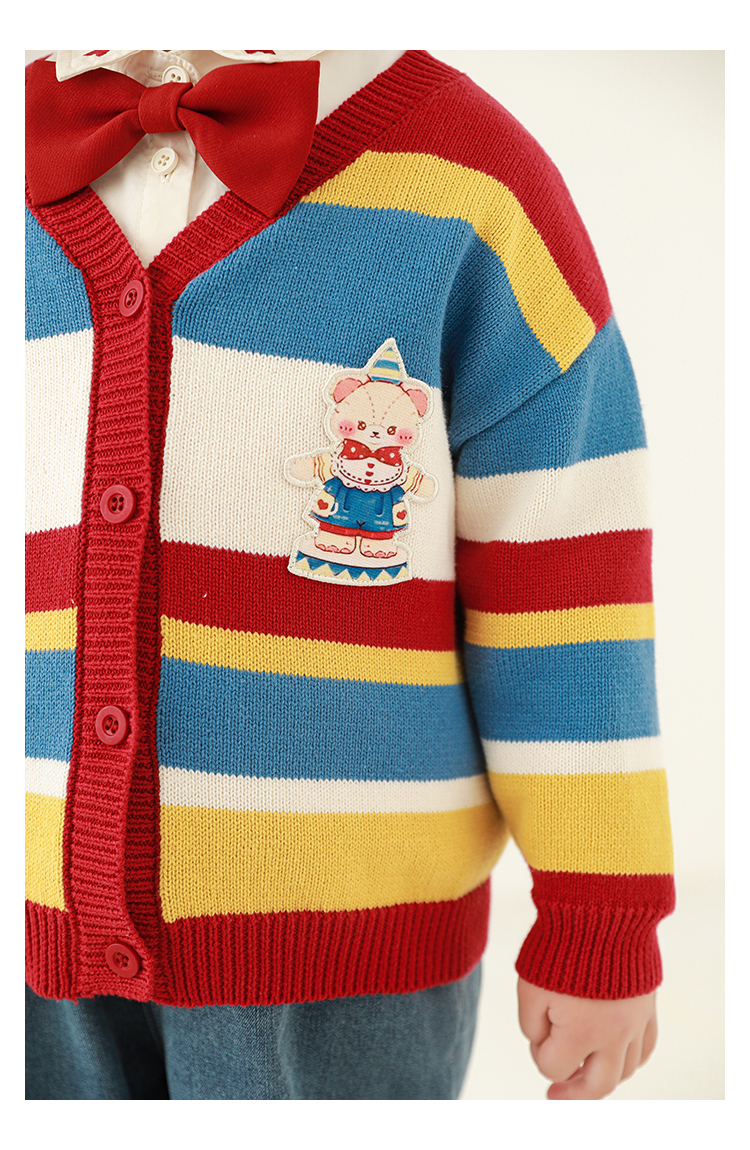 • 빨간색과 파란색 줄무늬가 있는 스웨터 가디건(C3018)