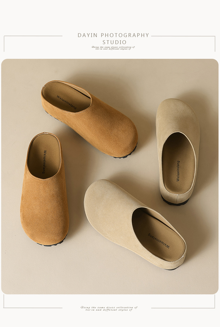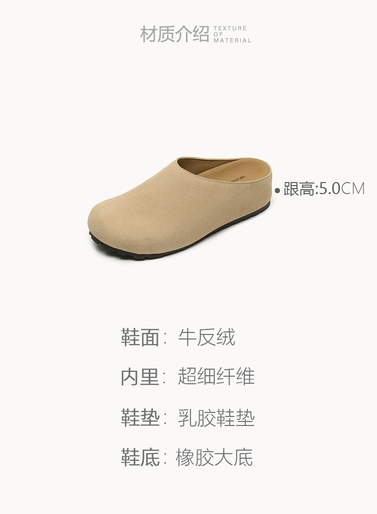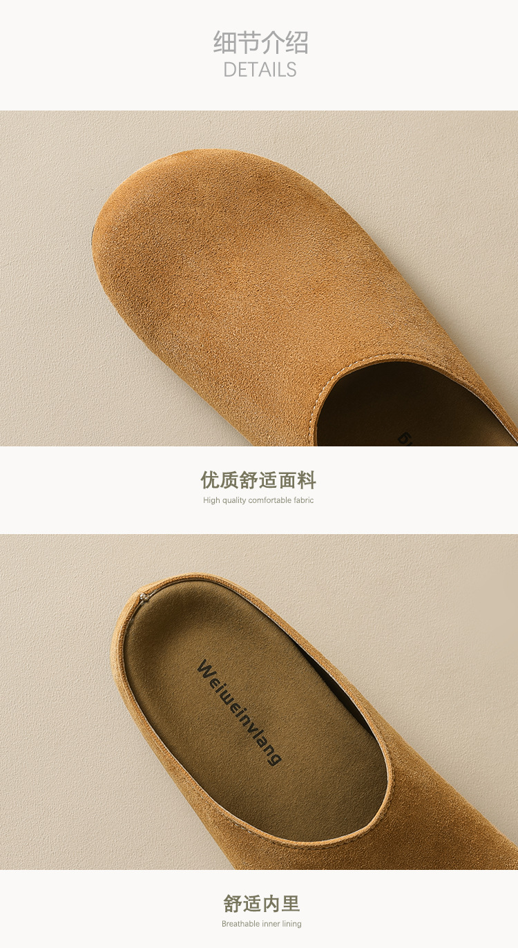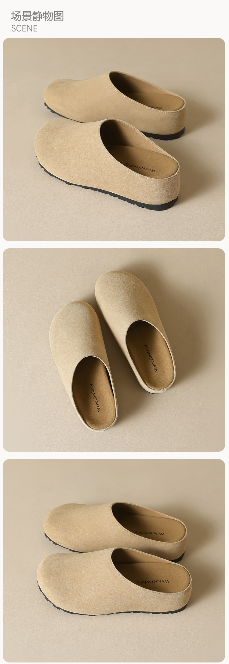Weiwei Girl 240-1 고층 가죽 버켄 신발 게으른 Baotou 슬리퍼 여성용 슬립 온 외부 착용 반 슬리퍼