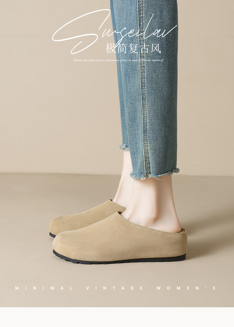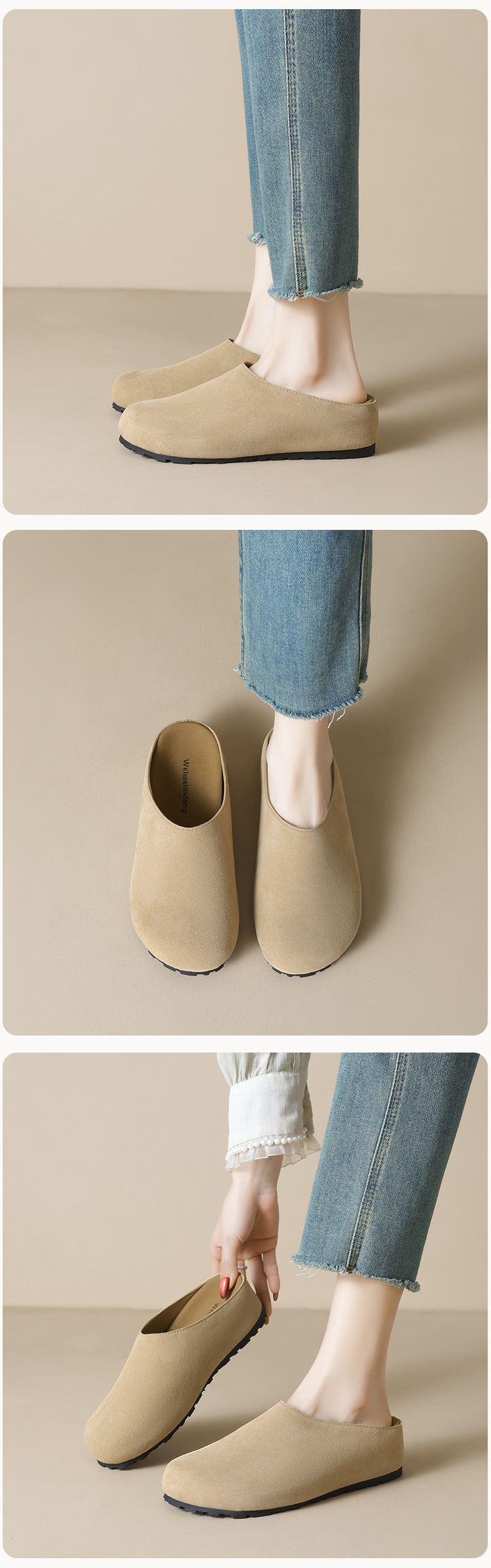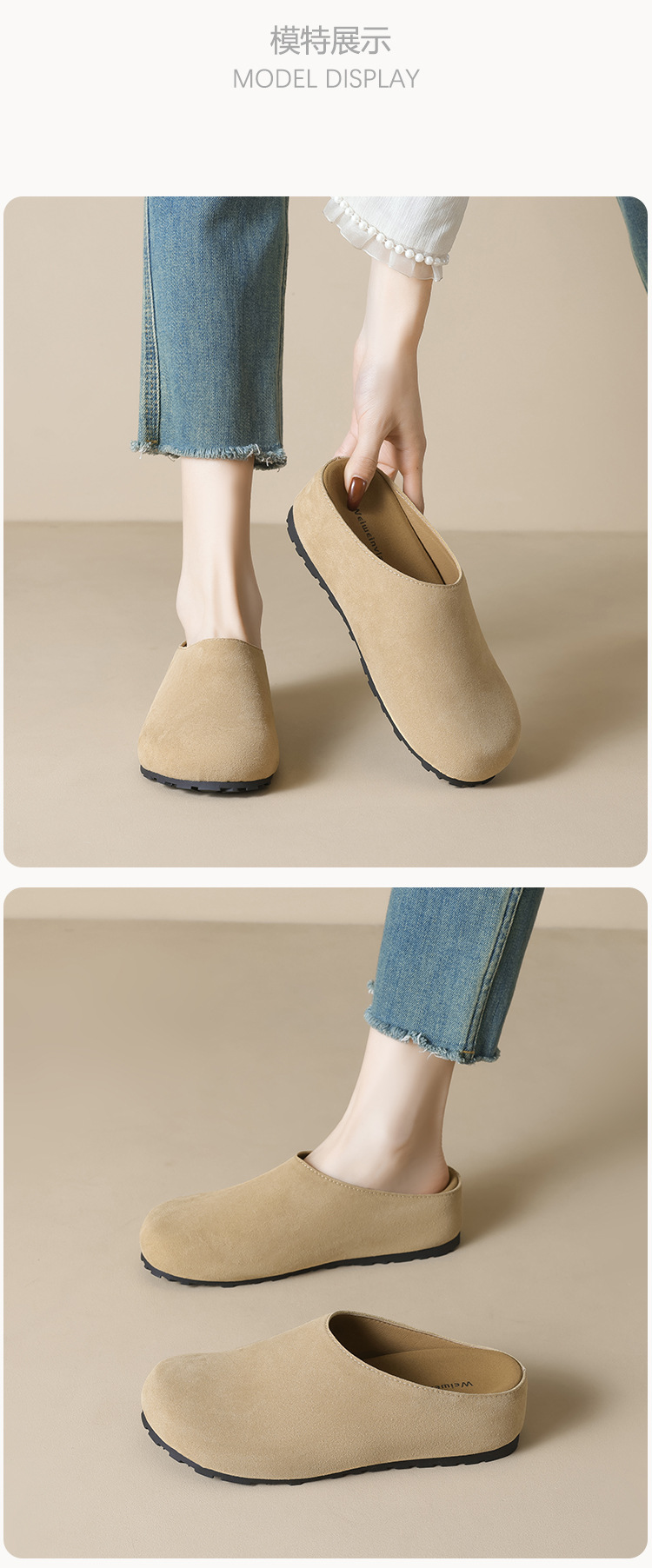 Weiwei Girl 240-1 고층 가죽 버켄 신발 게으른 Baotou 슬리퍼 여성용 슬립 온 외부 착용 반 슬리퍼