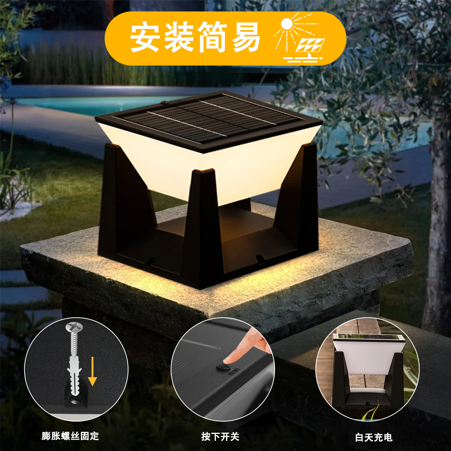 2024 국경 새로운 태양 야외 방수 코트야드 잔디 빌라 도어 헤드 홈스테이 벽 칼럼 헤드 램프