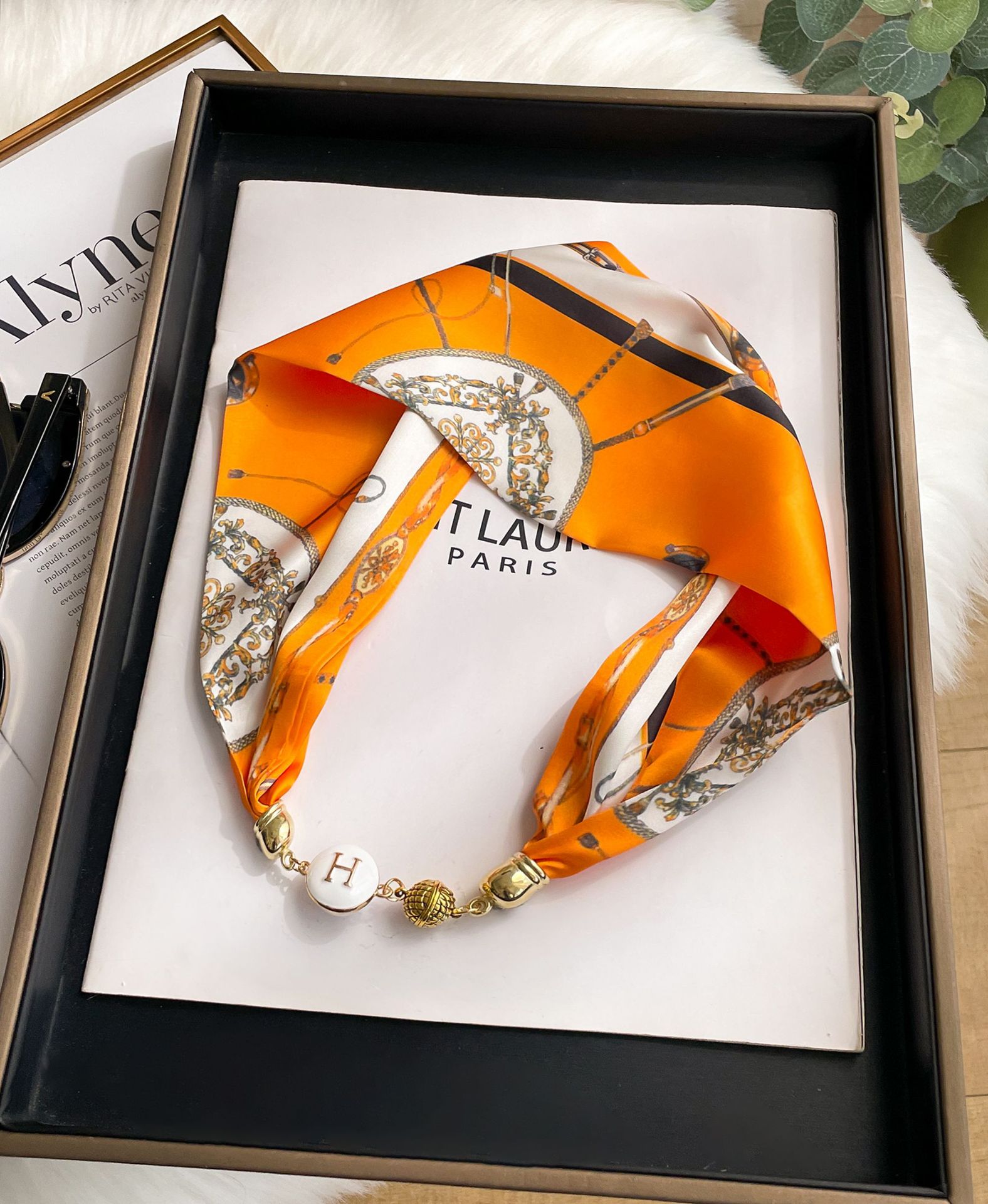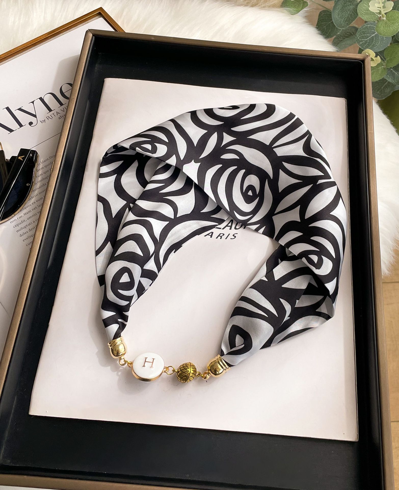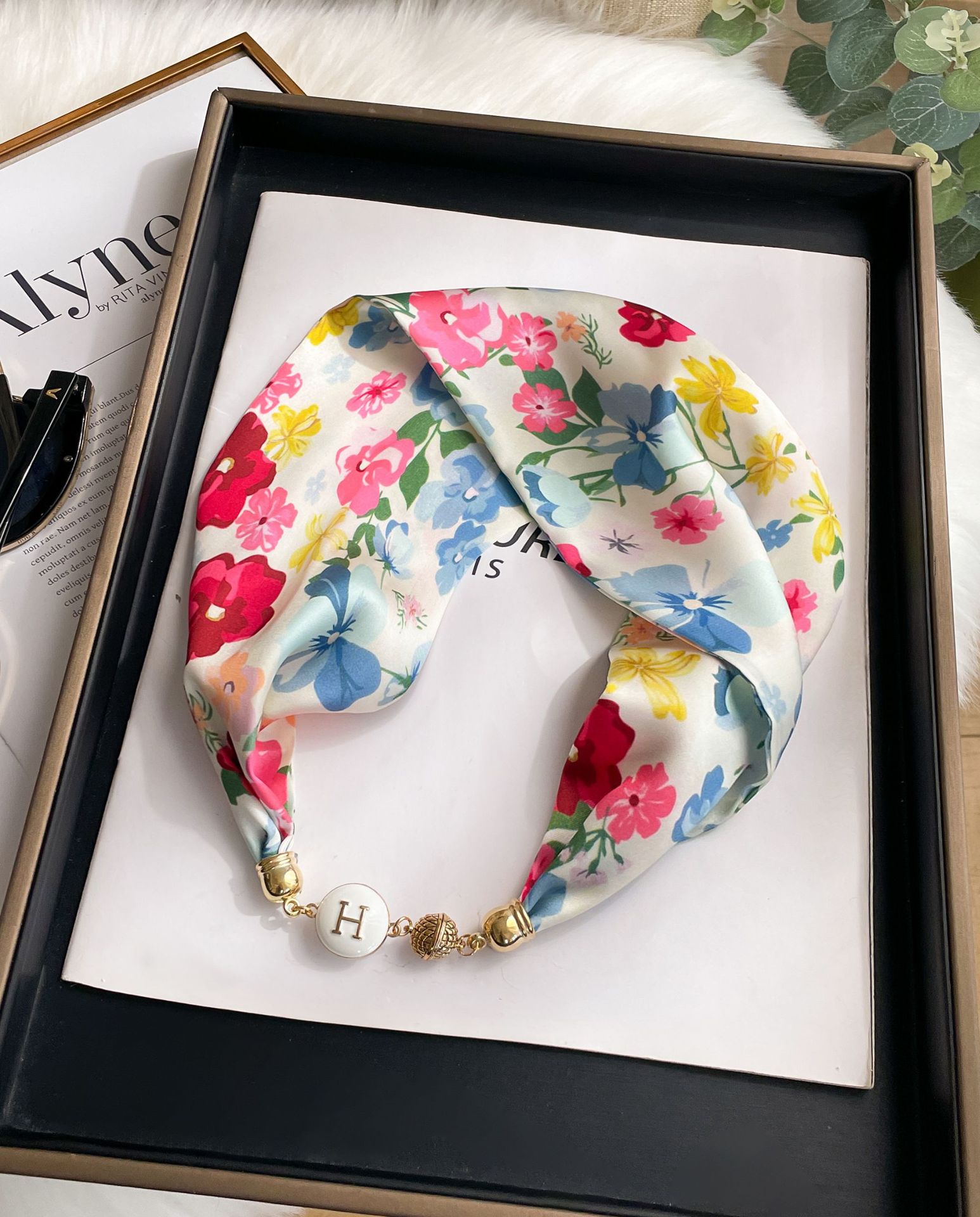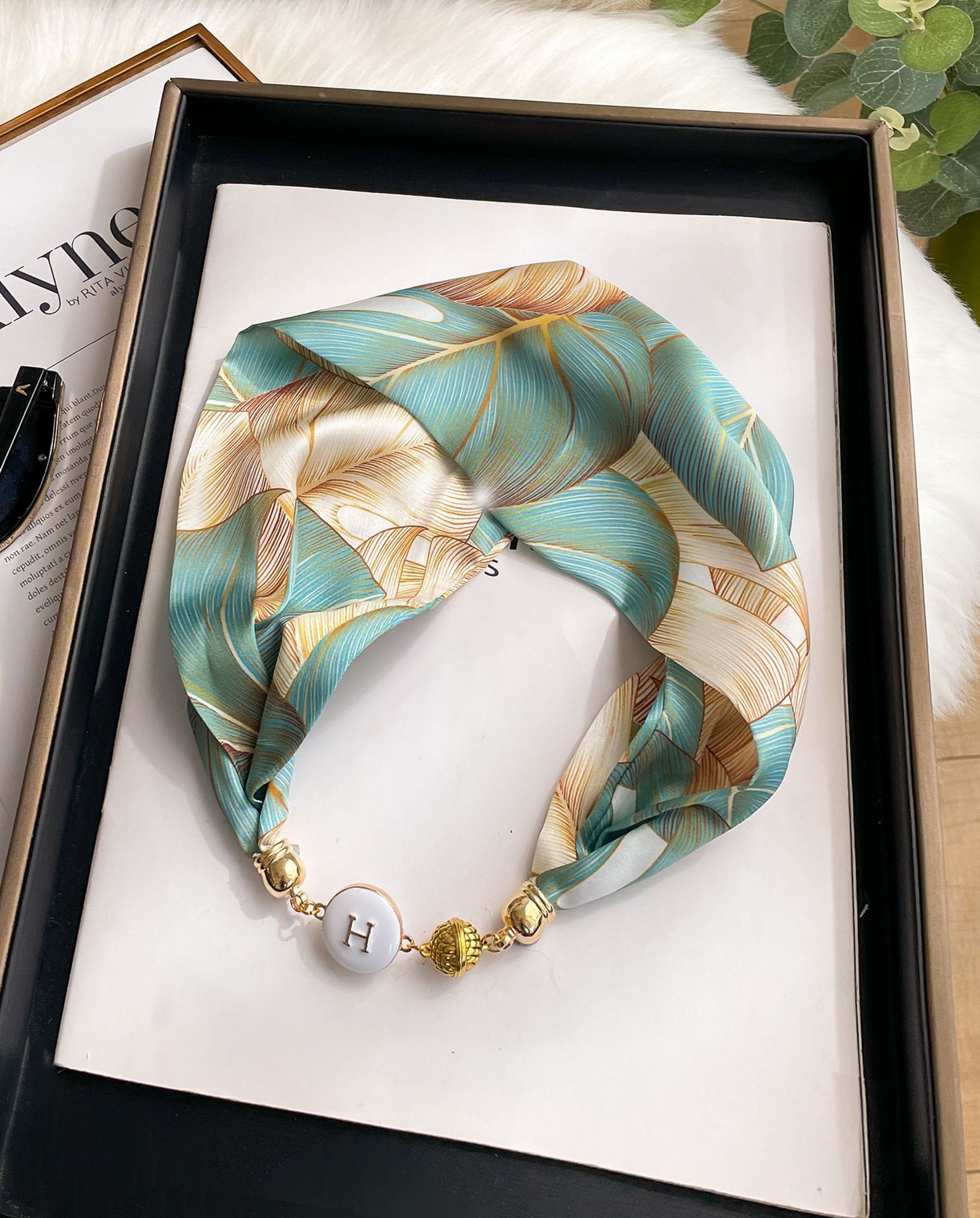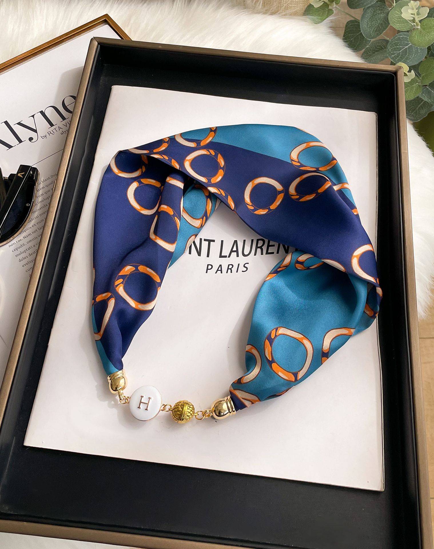 새로운 H 스타일 마그네틱 버클 실크 스카프 목걸이 게으른 스카프 멀티 사용 스카프 고급 감각 게으른 손목 타이