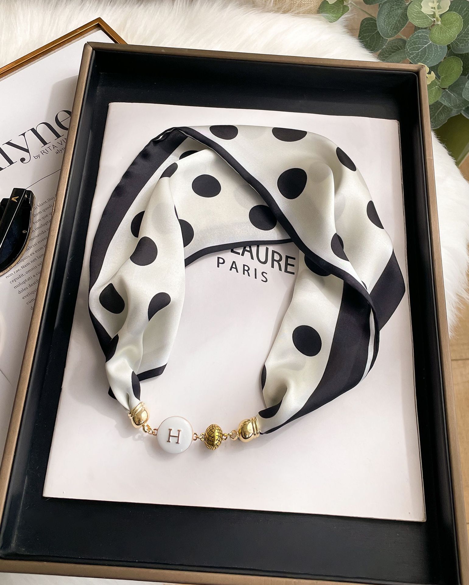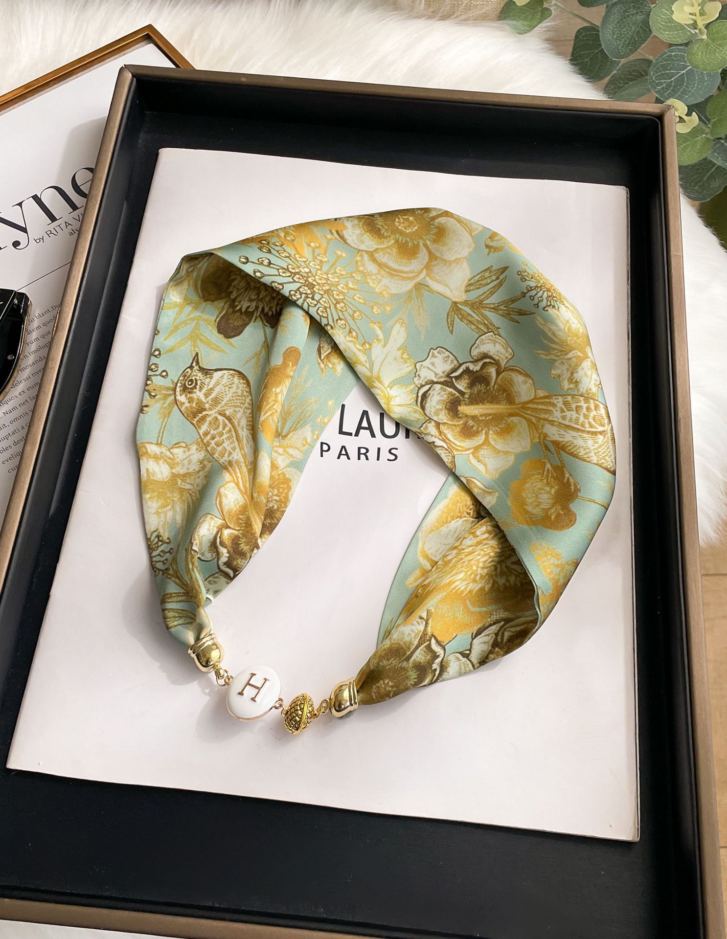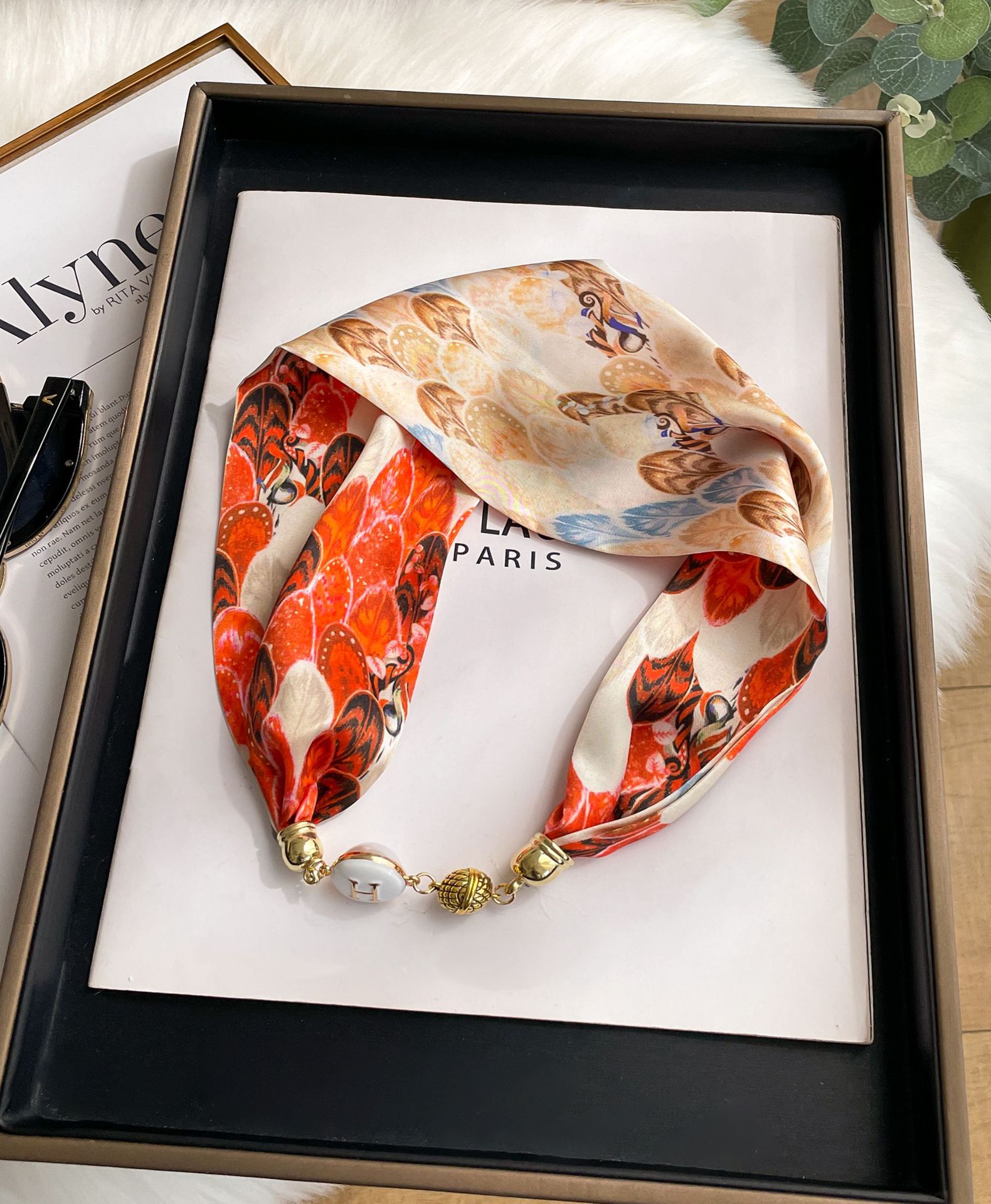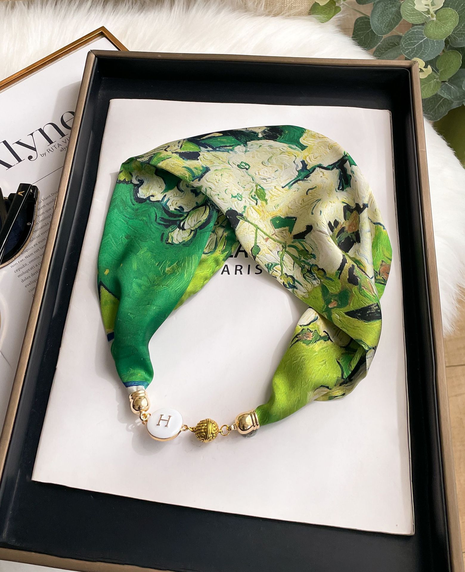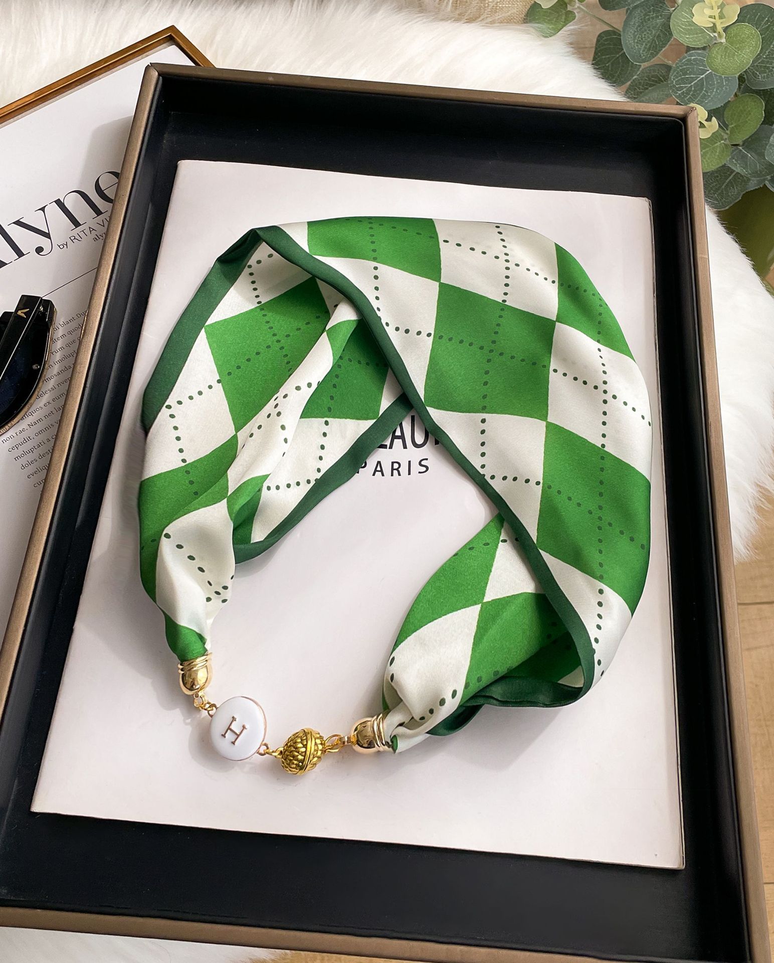 새로운 H 스타일 마그네틱 버클 실크 스카프 목걸이 게으른 스카프 멀티 사용 스카프 고급 감각 게으른 손목 타이