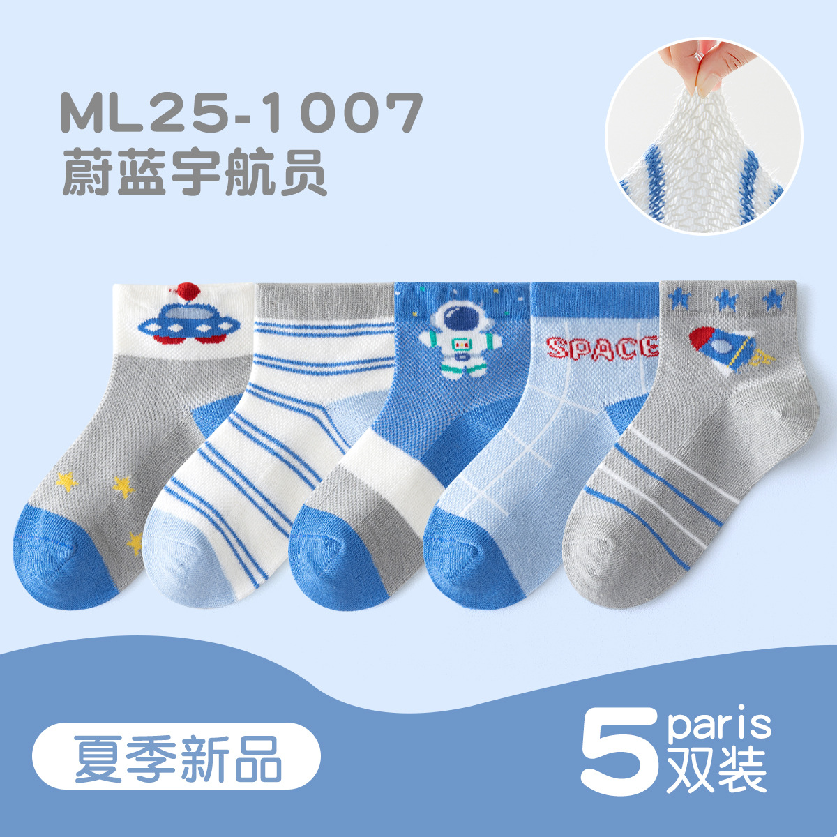 2025男童袜子春夏网眼透气棉袜男童女童松口夏季薄款卡通宝宝袜子