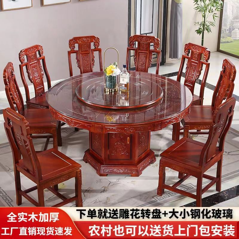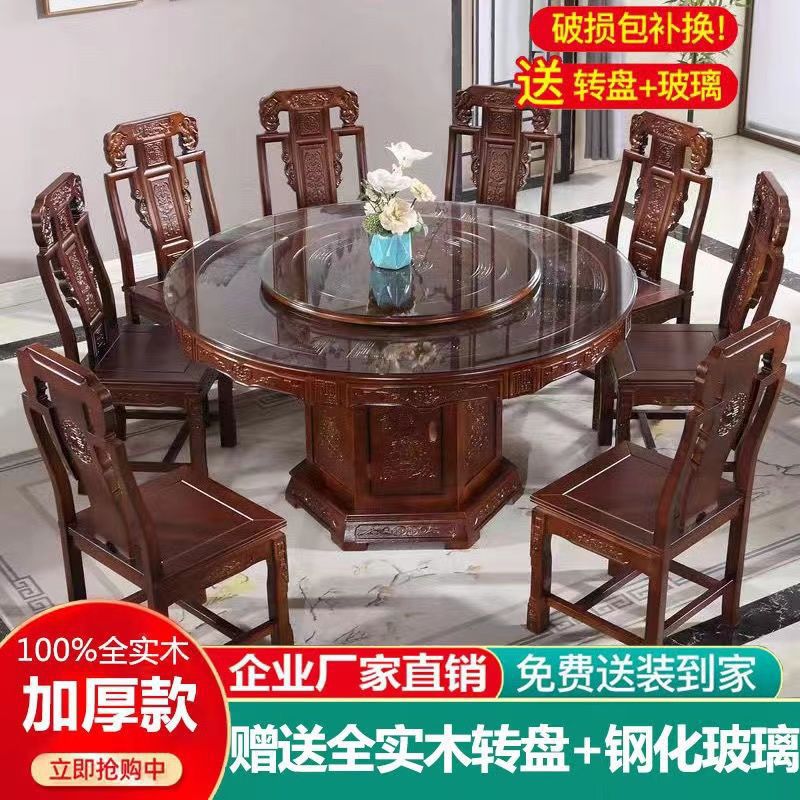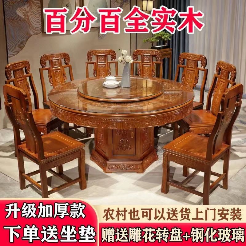 모든 솔리드 우드 로그 중국 스타일 라이트 럭셔리 라운드 테이블 다이닝 테이블과 의자 조합 새로운 골동품 벨트 턴테이블 오크 라운드 다이닝 테이블 패밀리스토어 가기