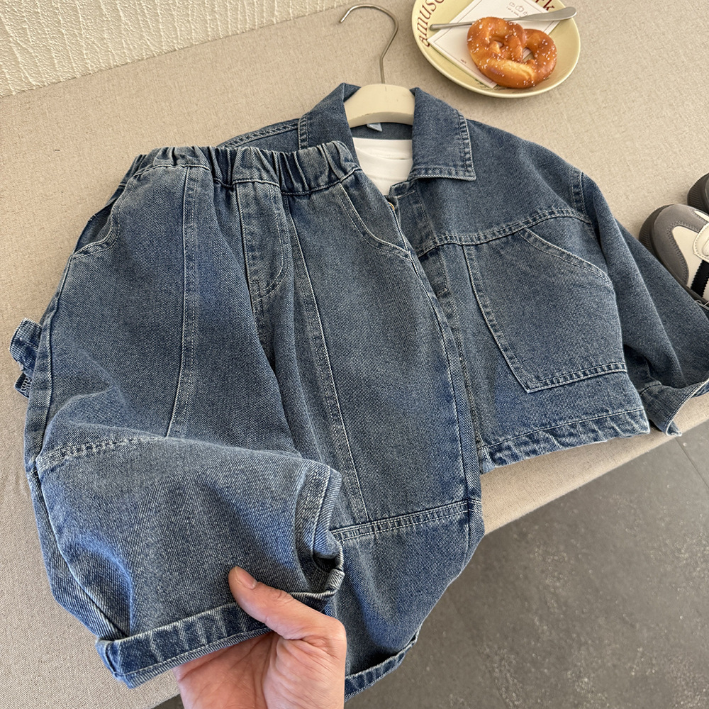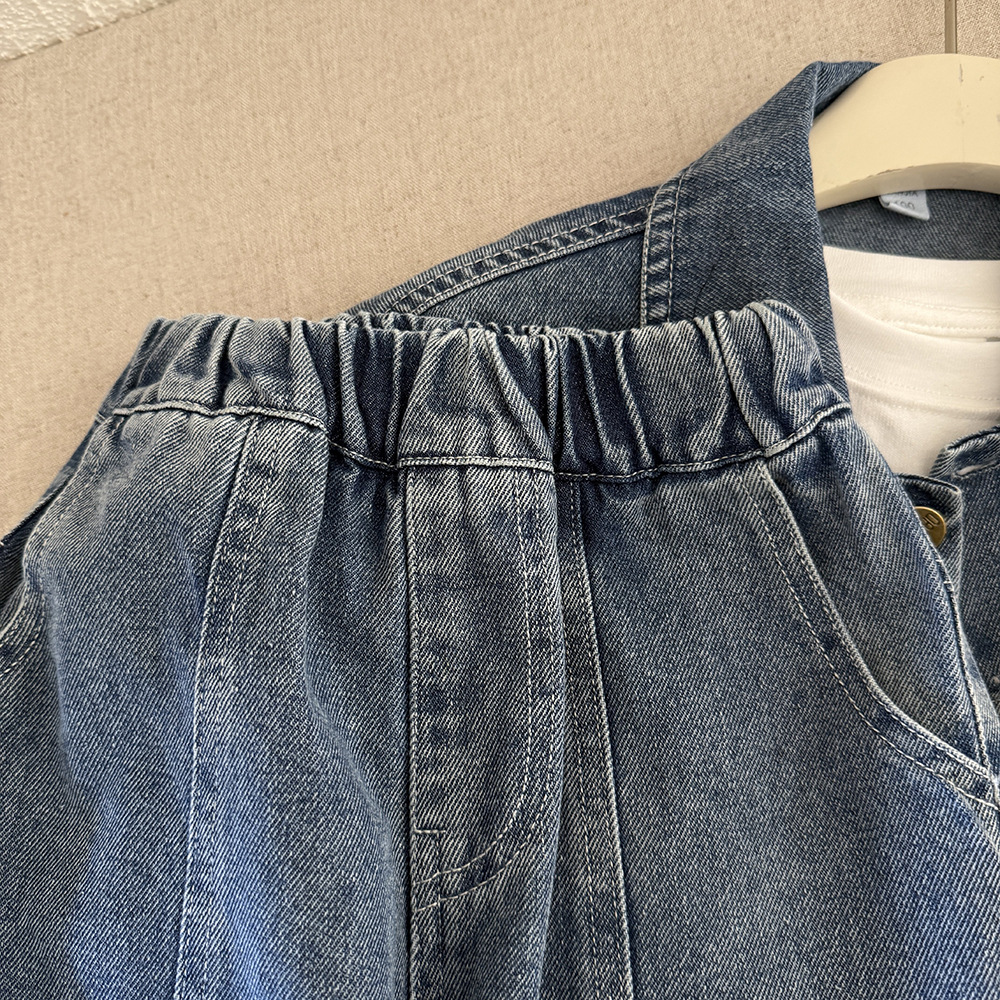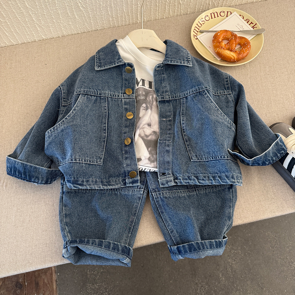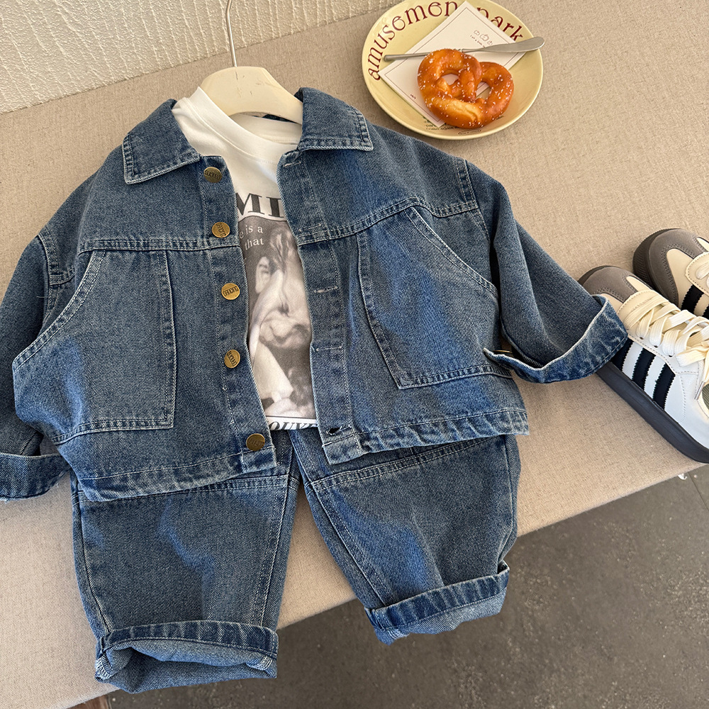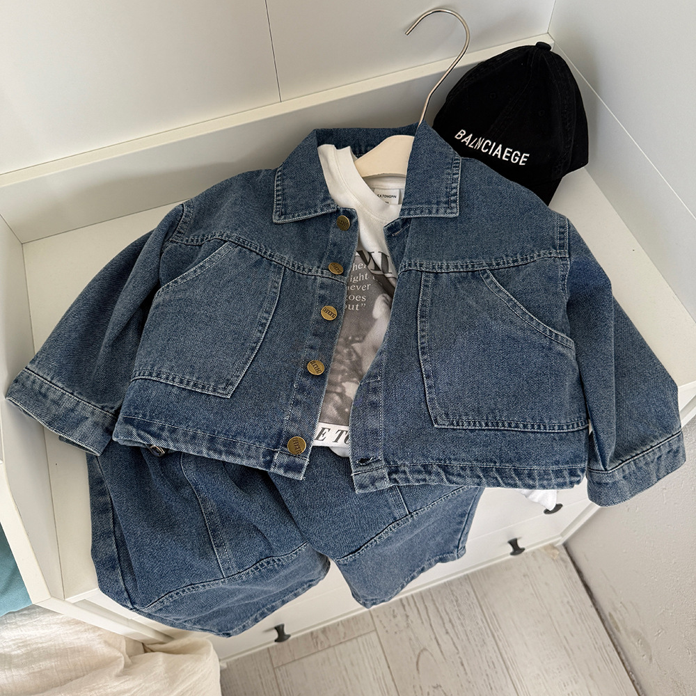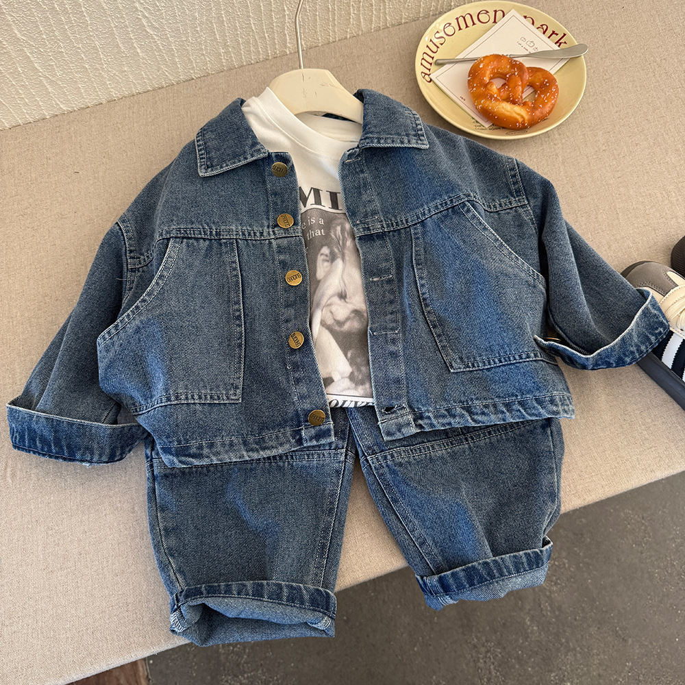 소년의 봄 세트 2025 새로운 어린이 느슨한 데님 재킷 소녀 봄 복고풍 데님 투피스 유행 세트