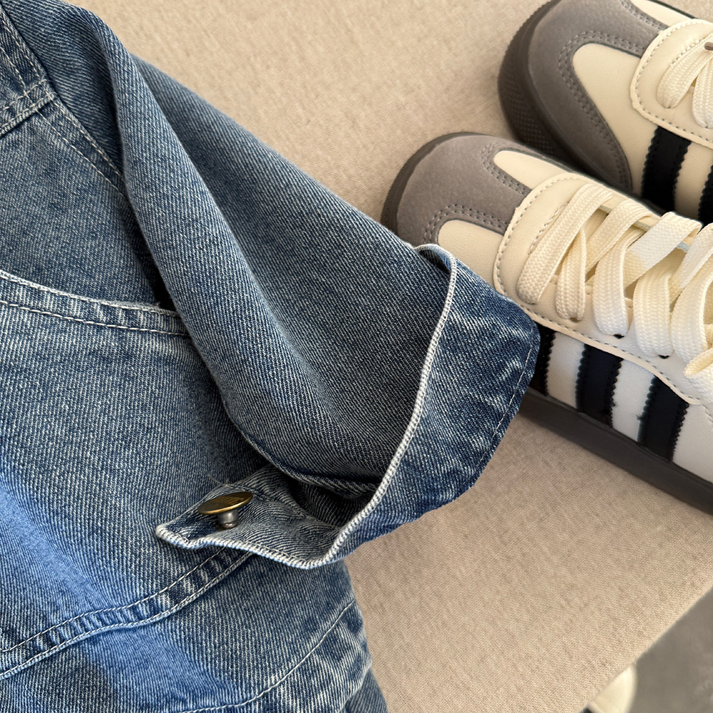 소년의 봄 세트 2025 새로운 어린이 느슨한 데님 재킷 소녀 봄 복고풍 데님 투피스 유행 세트스토어 가기