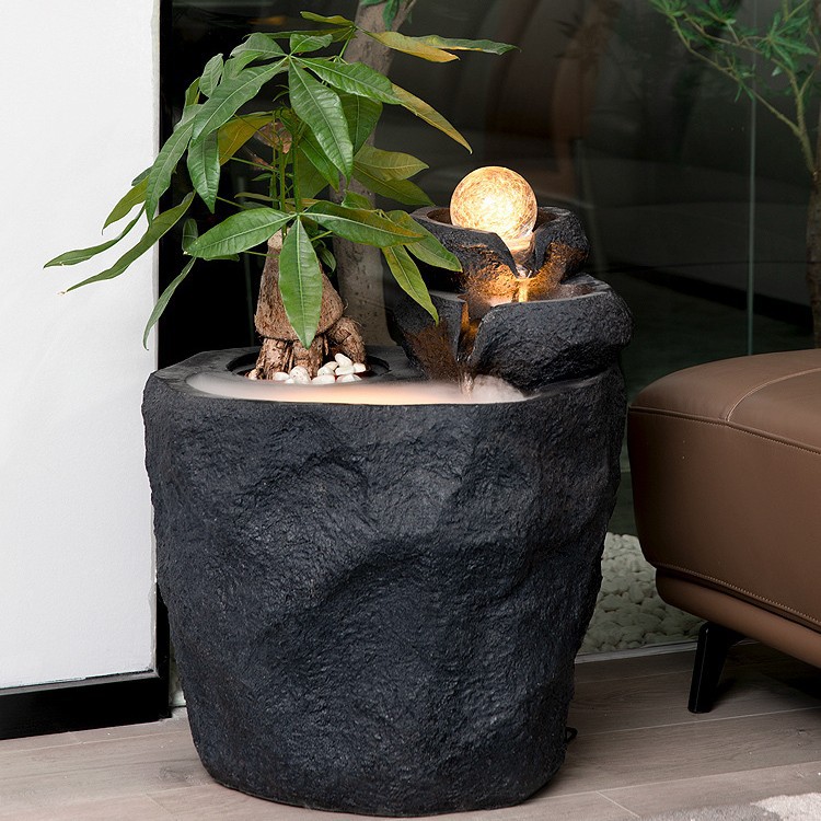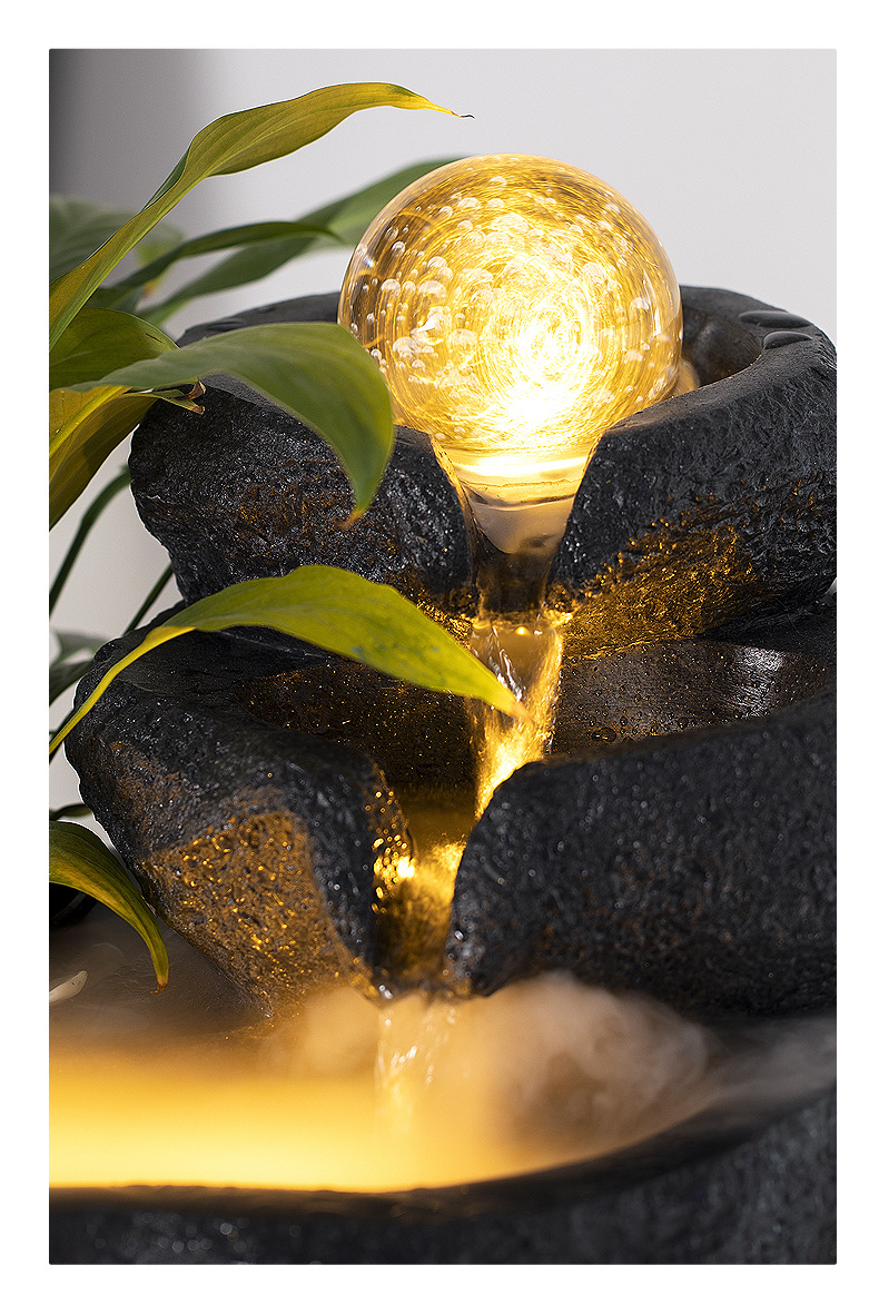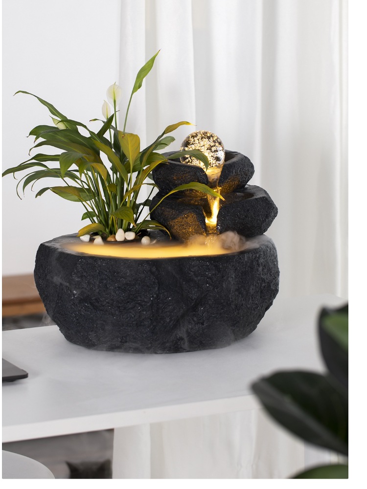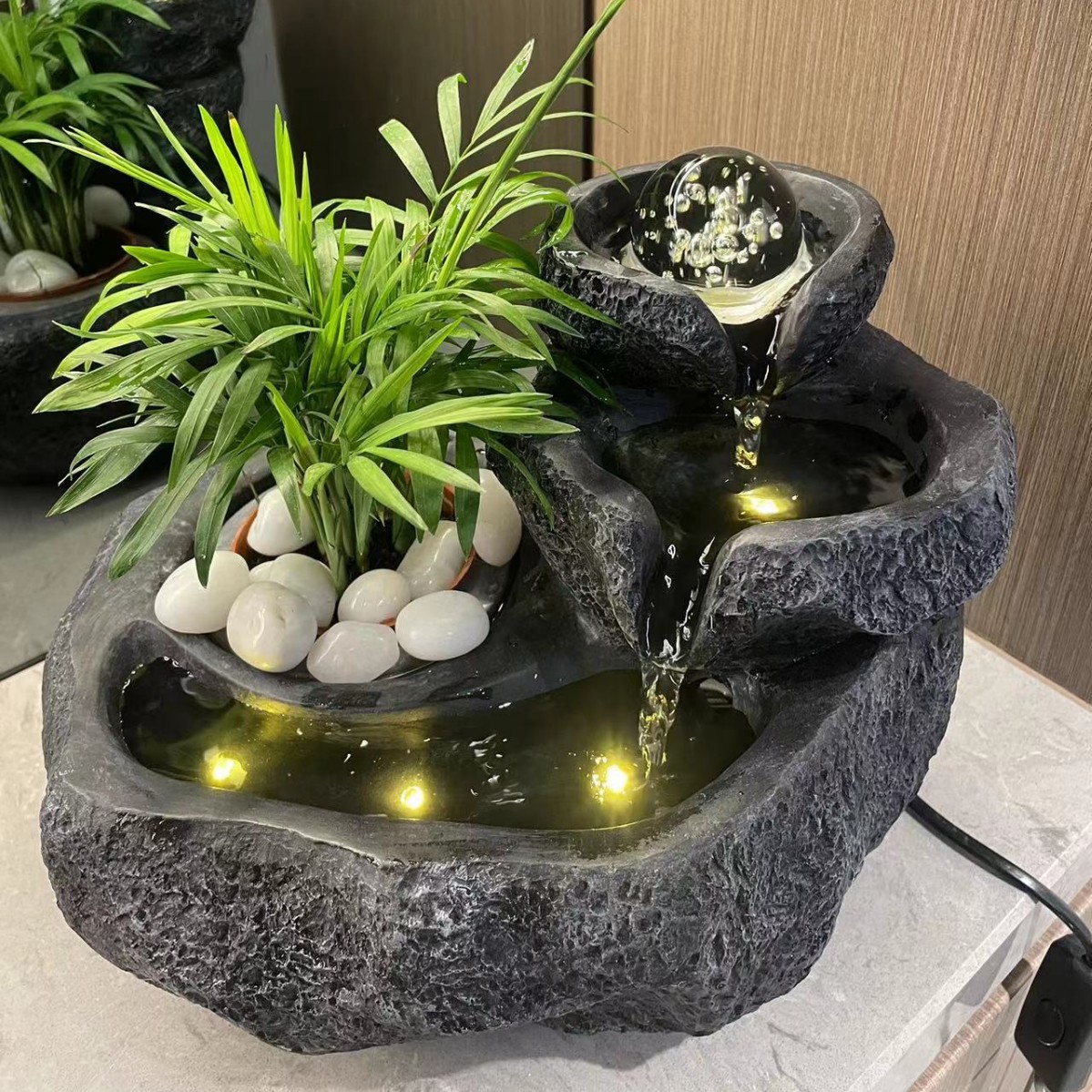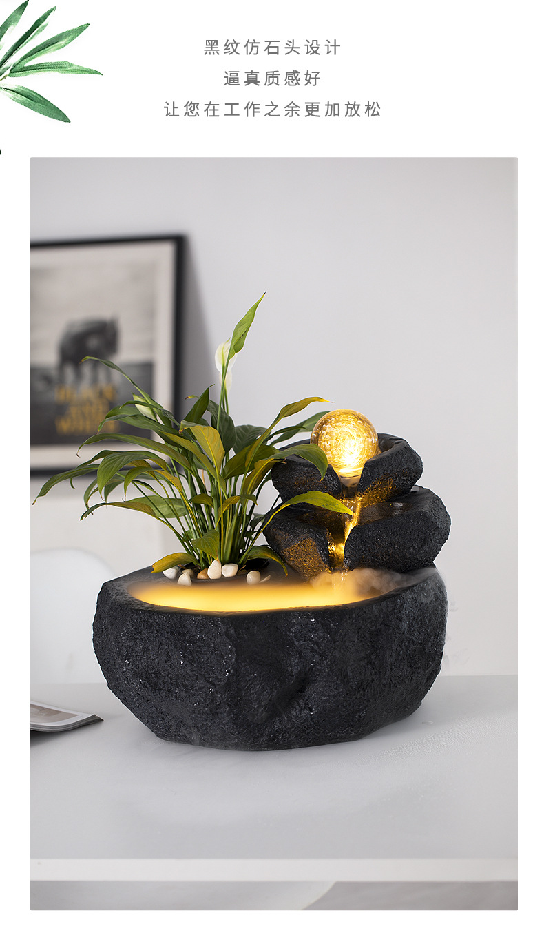 바위 흐르는 물 가습 정화 분재 데스크탑 분수 가게 홈 데스크 전송 공 흐름 금 jubao waterscape