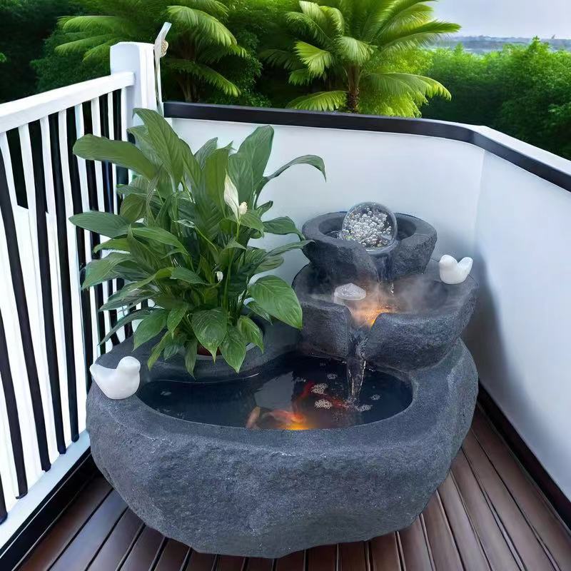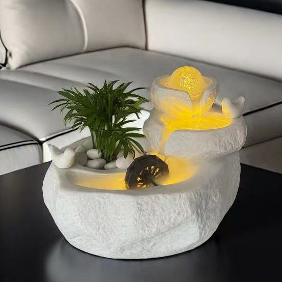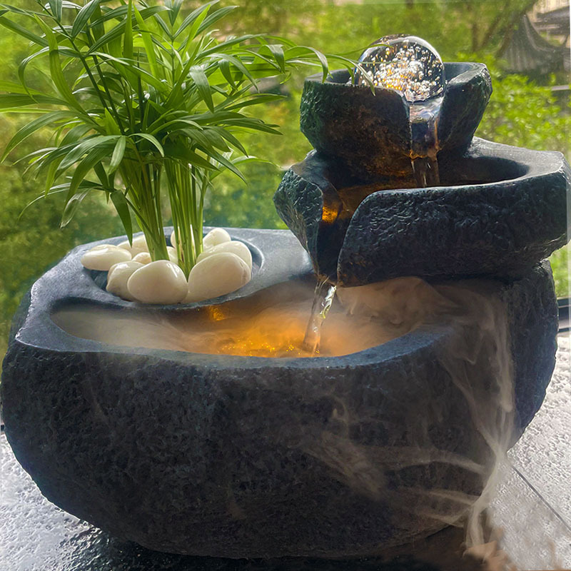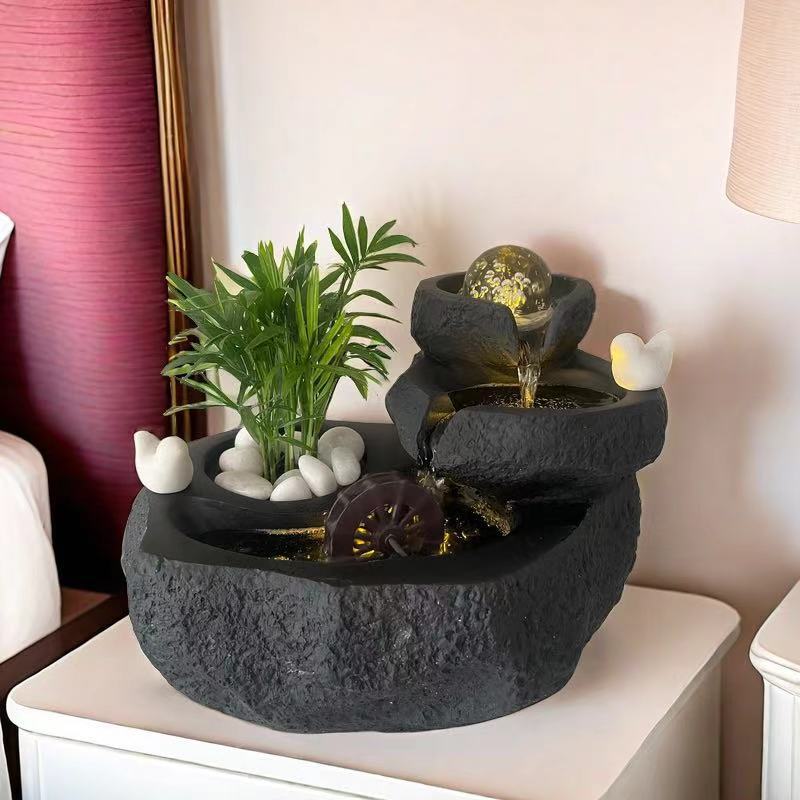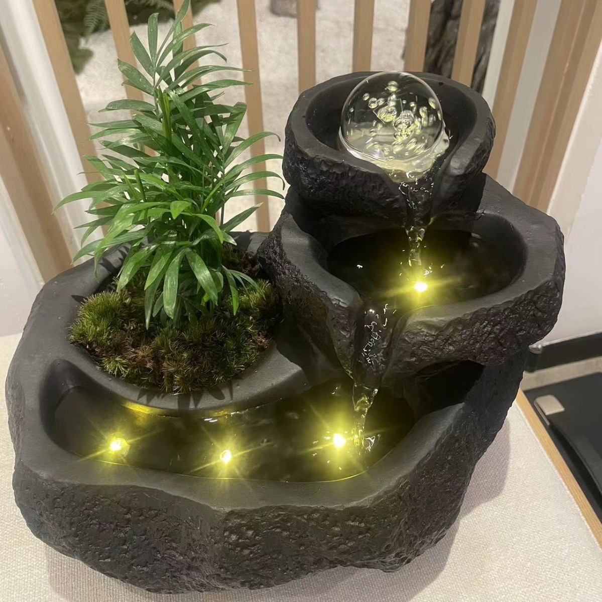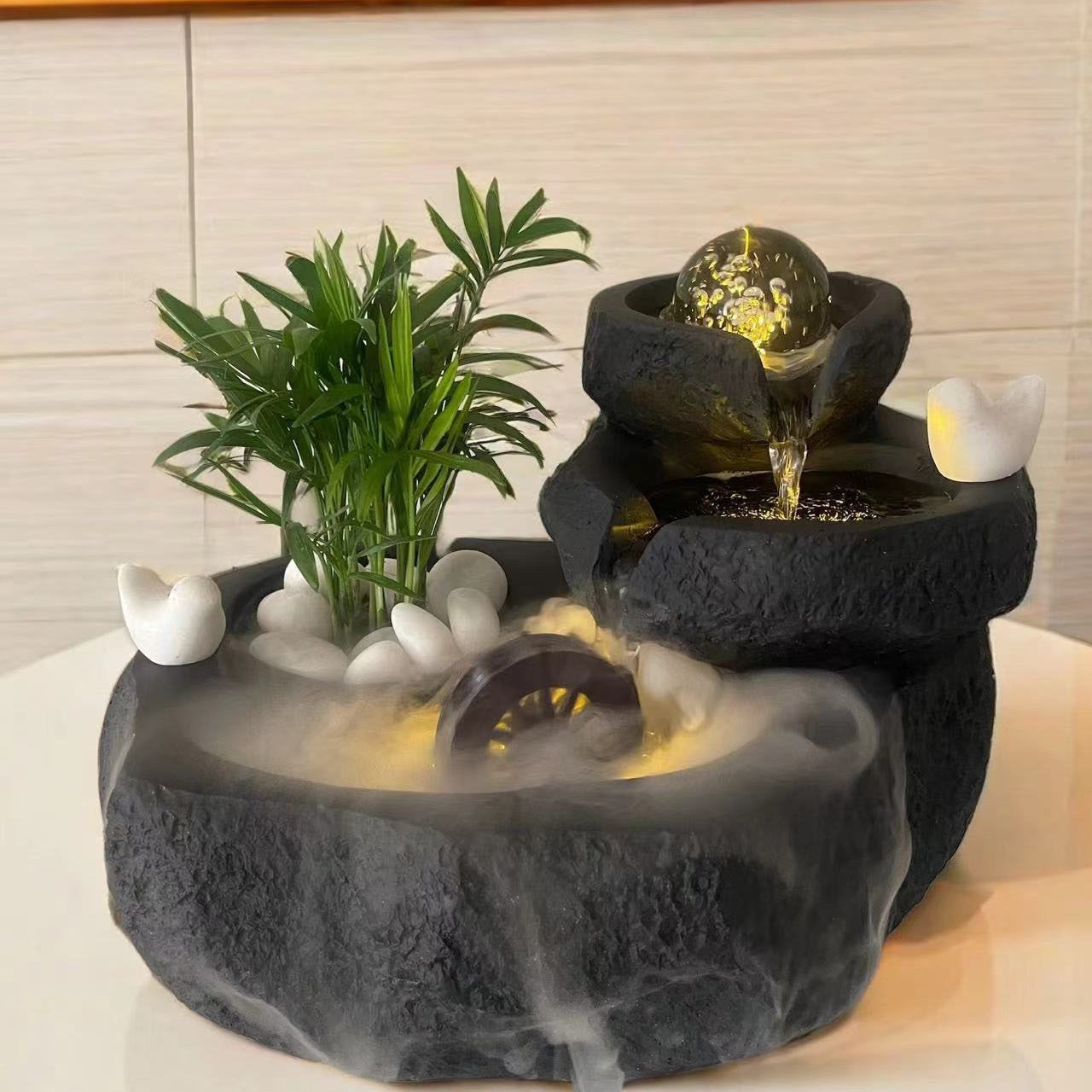 바위 흐르는 물 가습 정화 분재 데스크탑 분수 가게 홈 데스크 전송 공 흐름 금 jubao waterscape