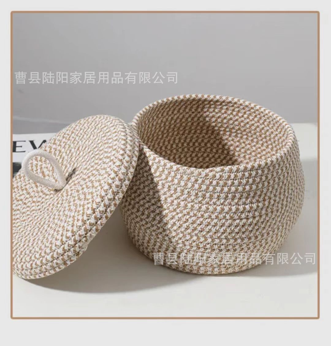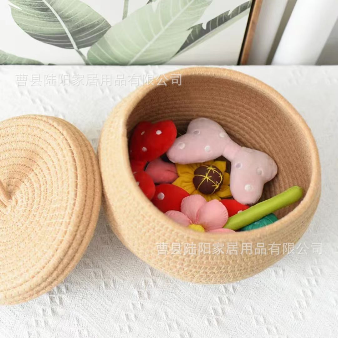 뚜껑 저장 상자 잡화가 달린 국경 간 라운드 짠 저장 바구니 데스크탑 간식 다목적 장난감 보관 바구니를 구성합니다.