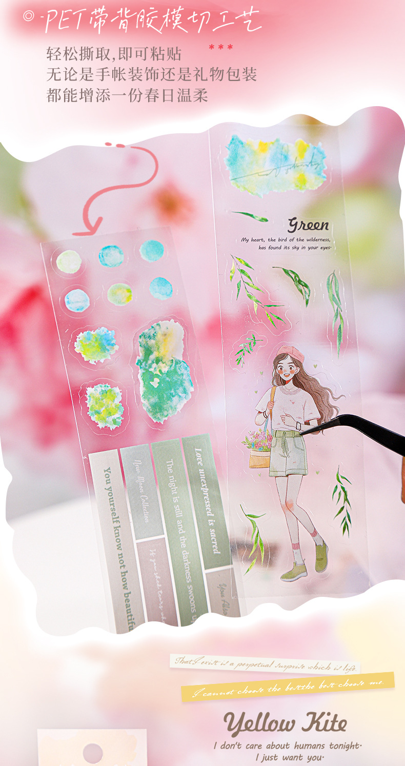 케첩 소녀 다이 컷 PET 스티커 봄 시즌 그림 시리즈 6 3 시작 계정 DIY 장식 스티커 선택