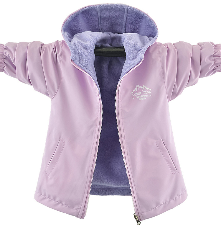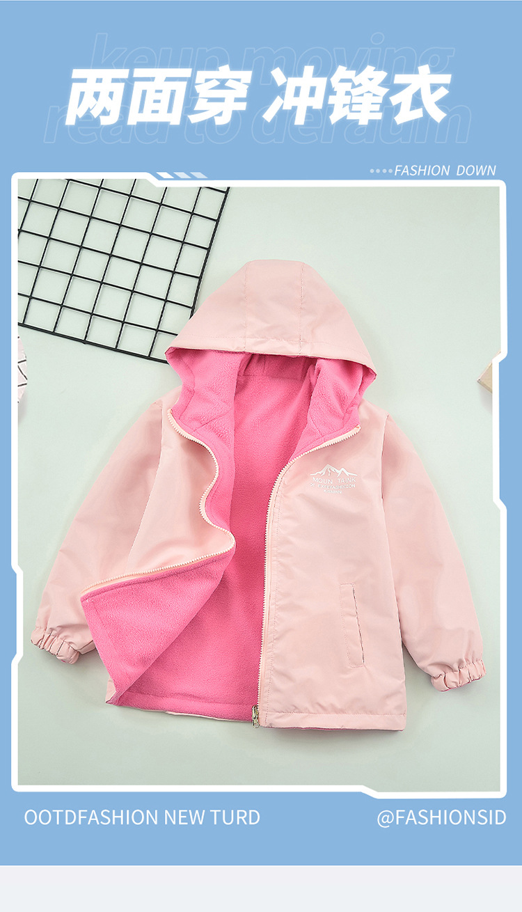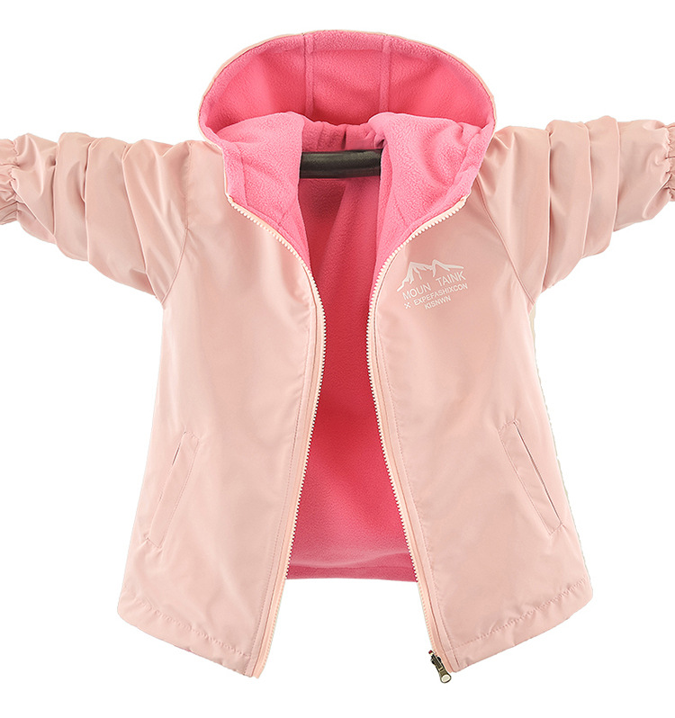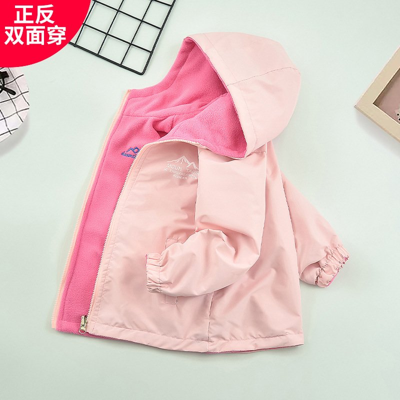 소녀 봄 코트 기모 2025 새로운 스타일 중대형 어린이 탑 봄 가을 및 겨울 바람막이 양면 착용 어린이 소박한 옷 트렌디스토어 가기