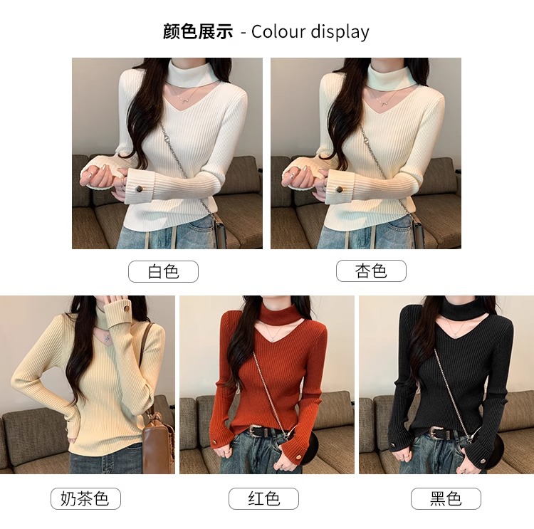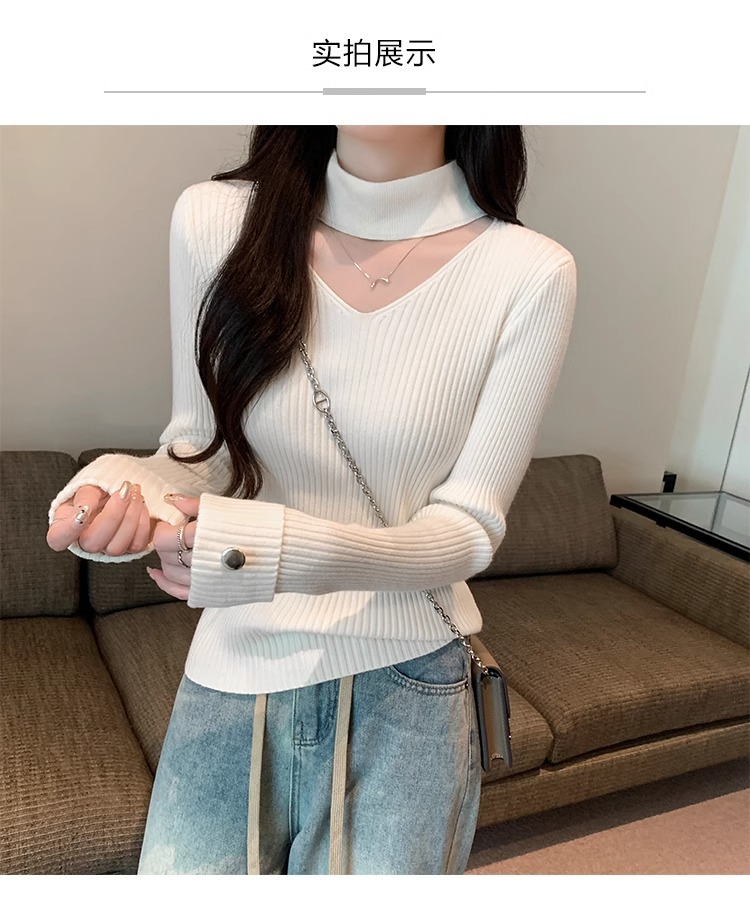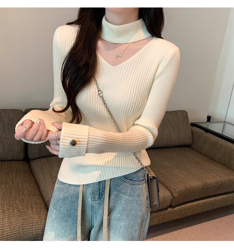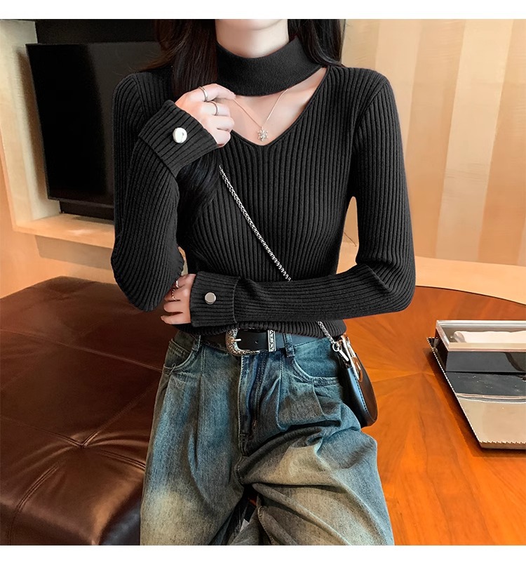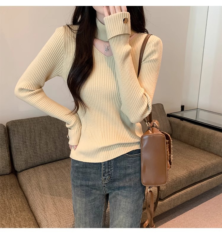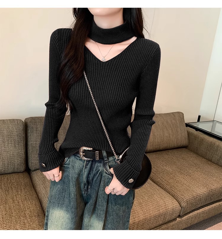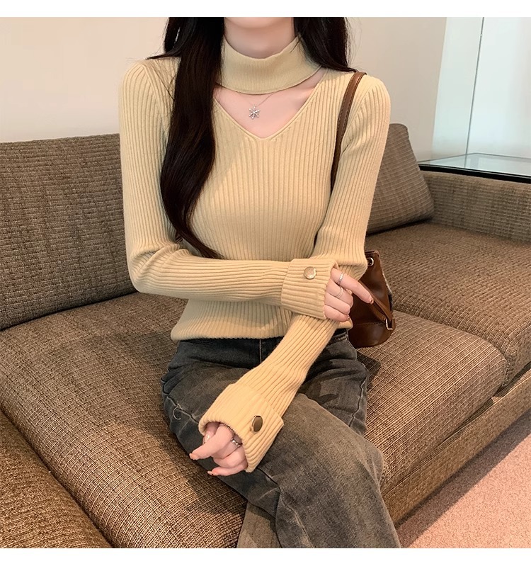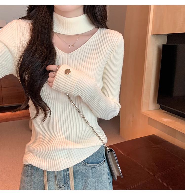 순수한 매력 스타일 슬림핏 이너 니트 여성용 52025 가을 겨울 신상 고급스러운 홀터넥 브이넥 긴팔 니트스토어 가기