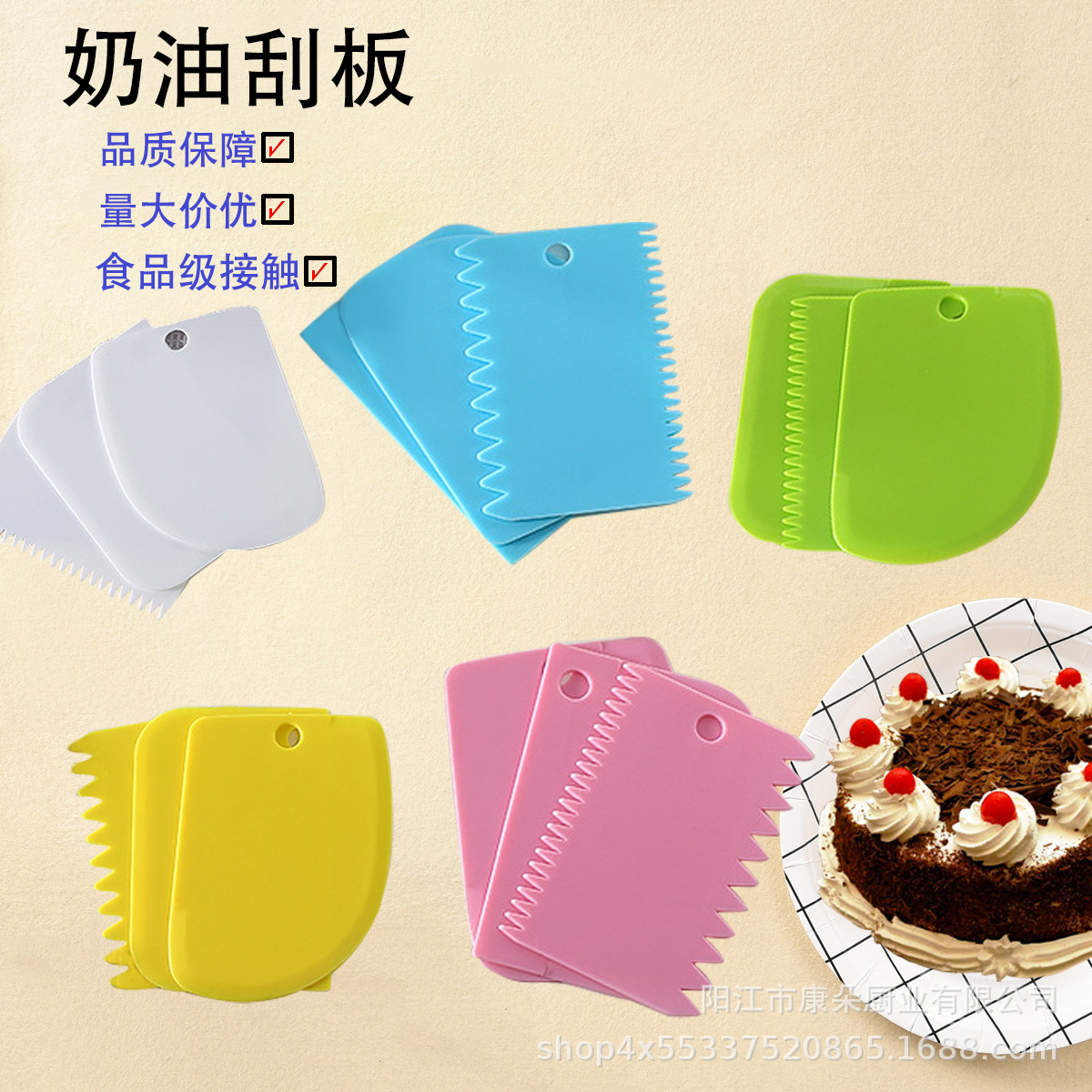 도매 3 조각 세트 플라스틱 크림 스크레이퍼 케이크 커터 컬러 스크레이퍼 3 조각 세트 주방 베이킹 도구