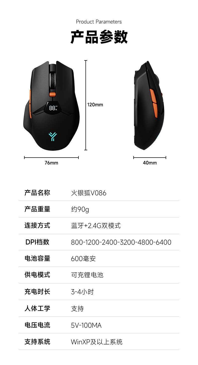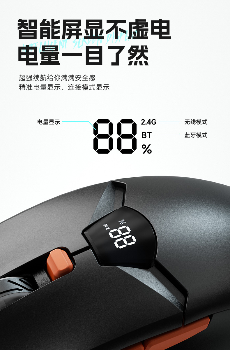 화재 실버 폭스 블루투스 무선 듀얼 모드 마우스 LED 디스플레이 조용한 충전식 게임 사무실 데스크톱스토어 가기