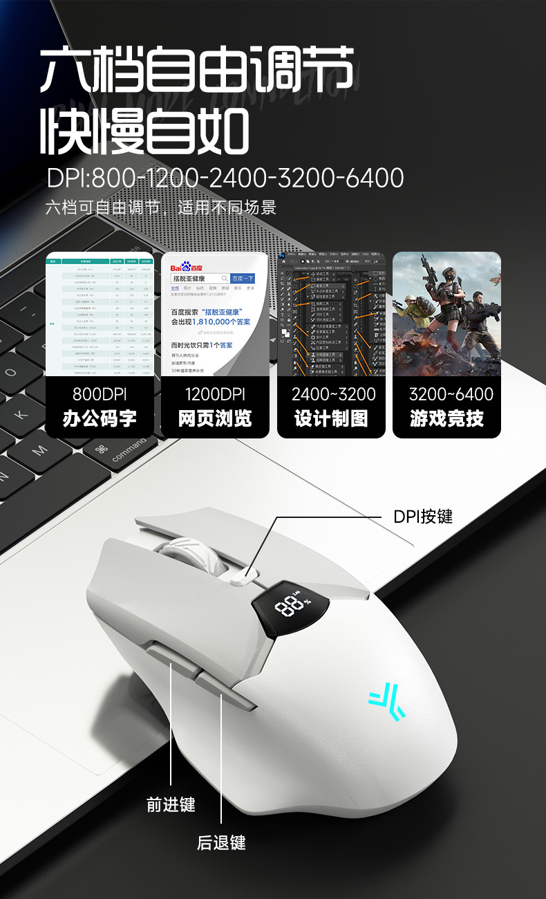 • 흰색 디스플레이 버전|블루투스 무선 듀얼 모드|조용하고 충전식