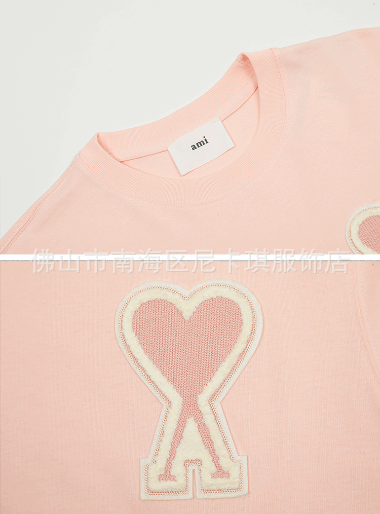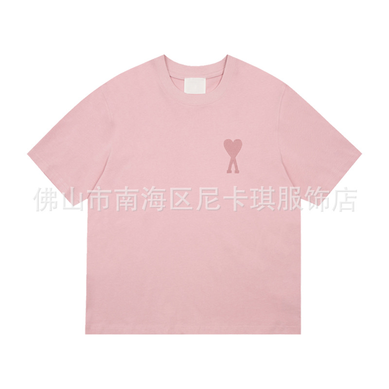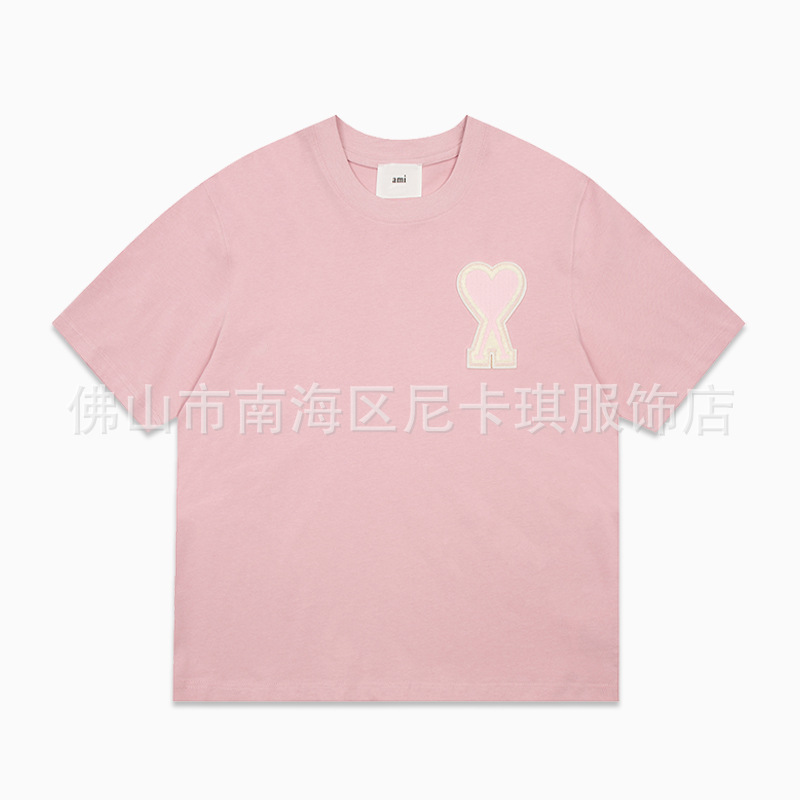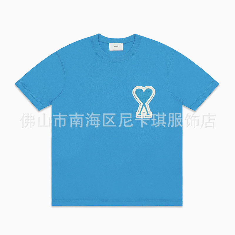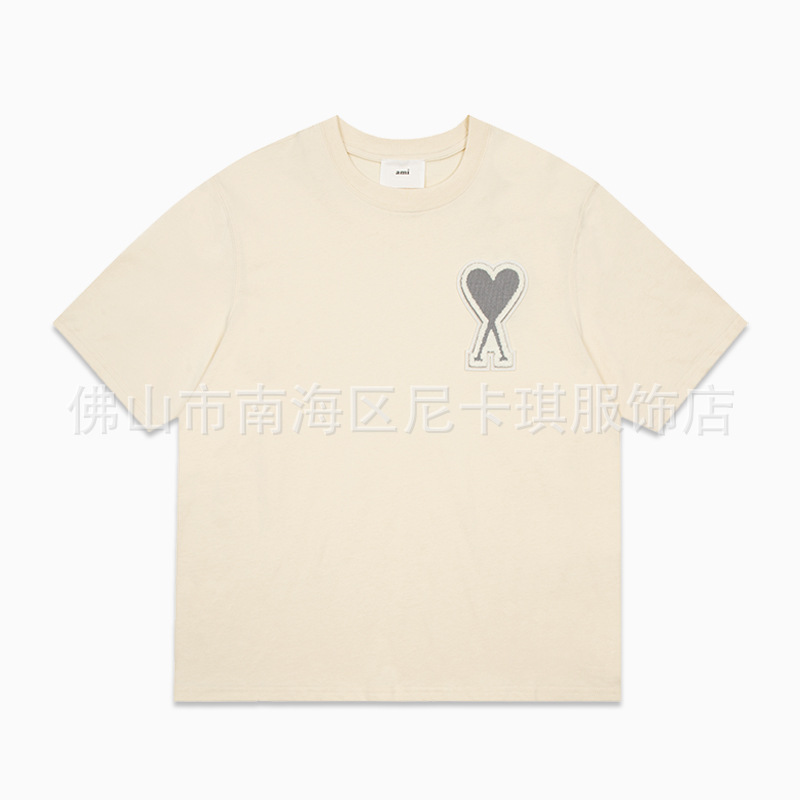 Ami 반팔 2025 봄과 여름 새로운 자수 루즈 라운드 넥 반소매 남녀 티셔츠 탑스토어 가기