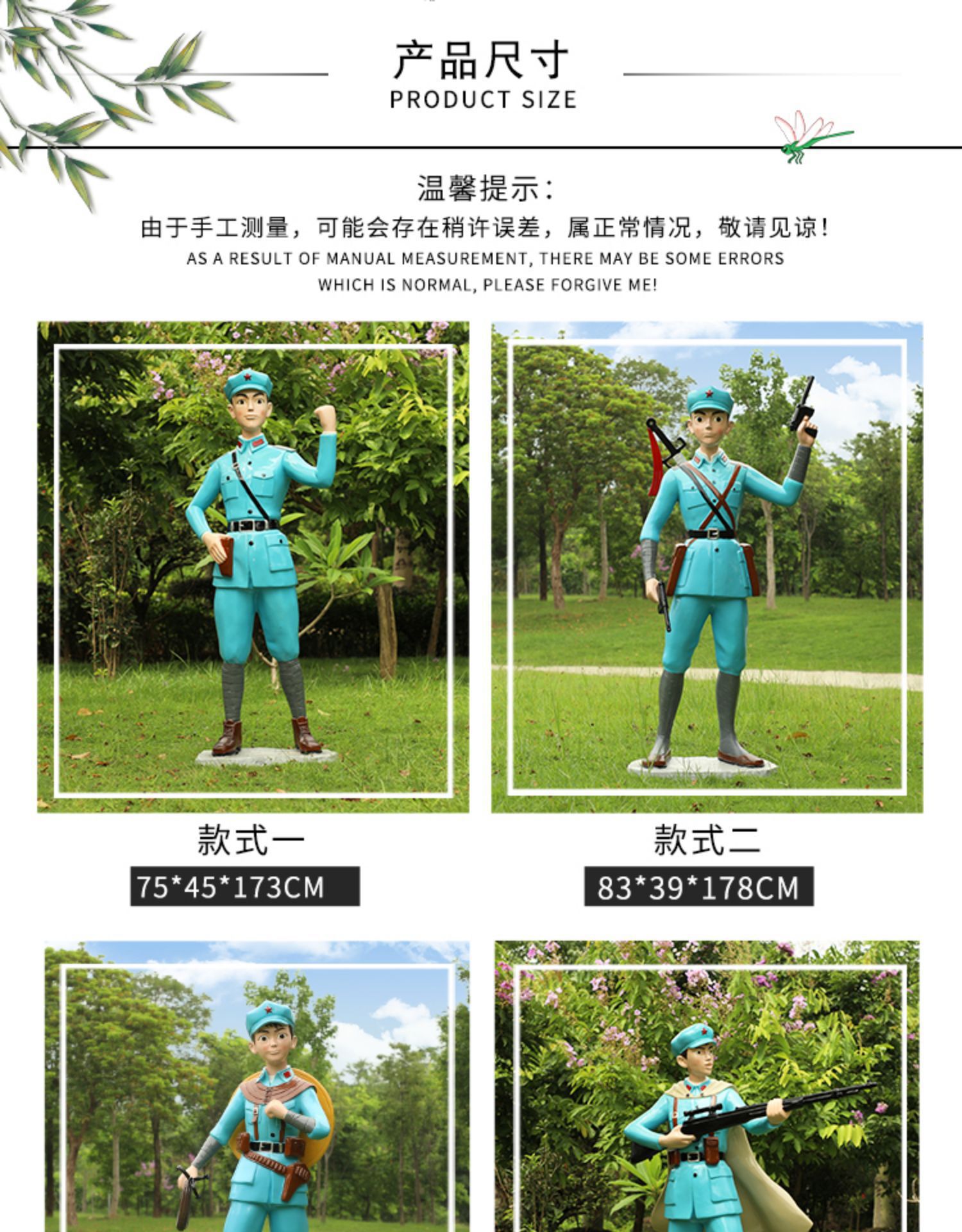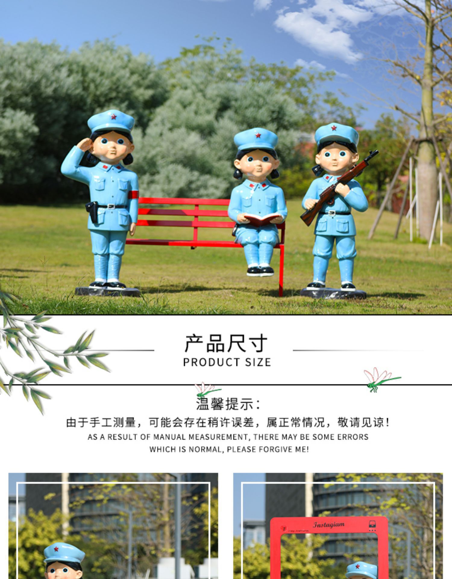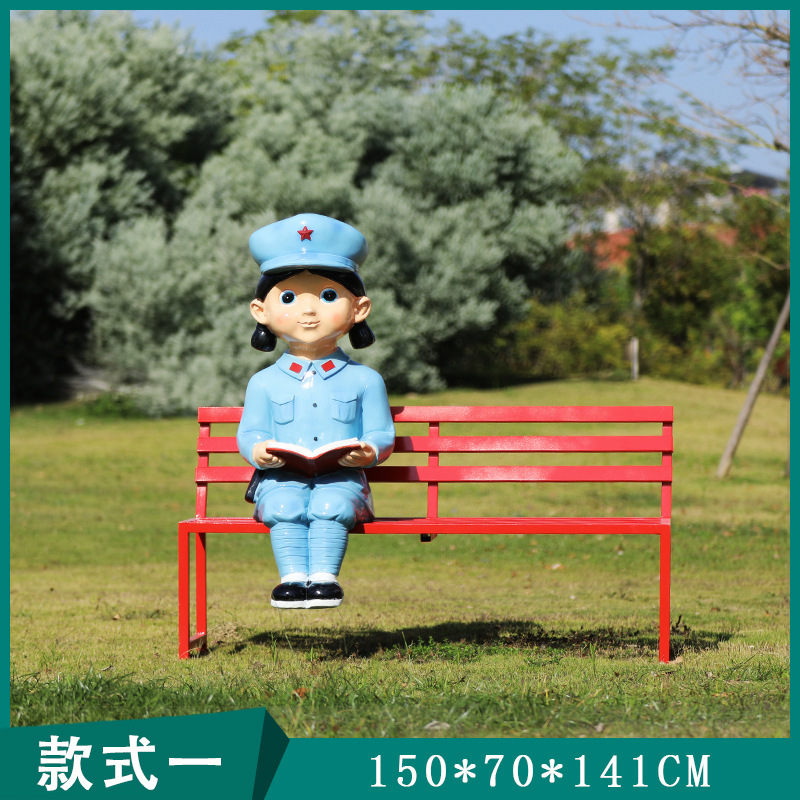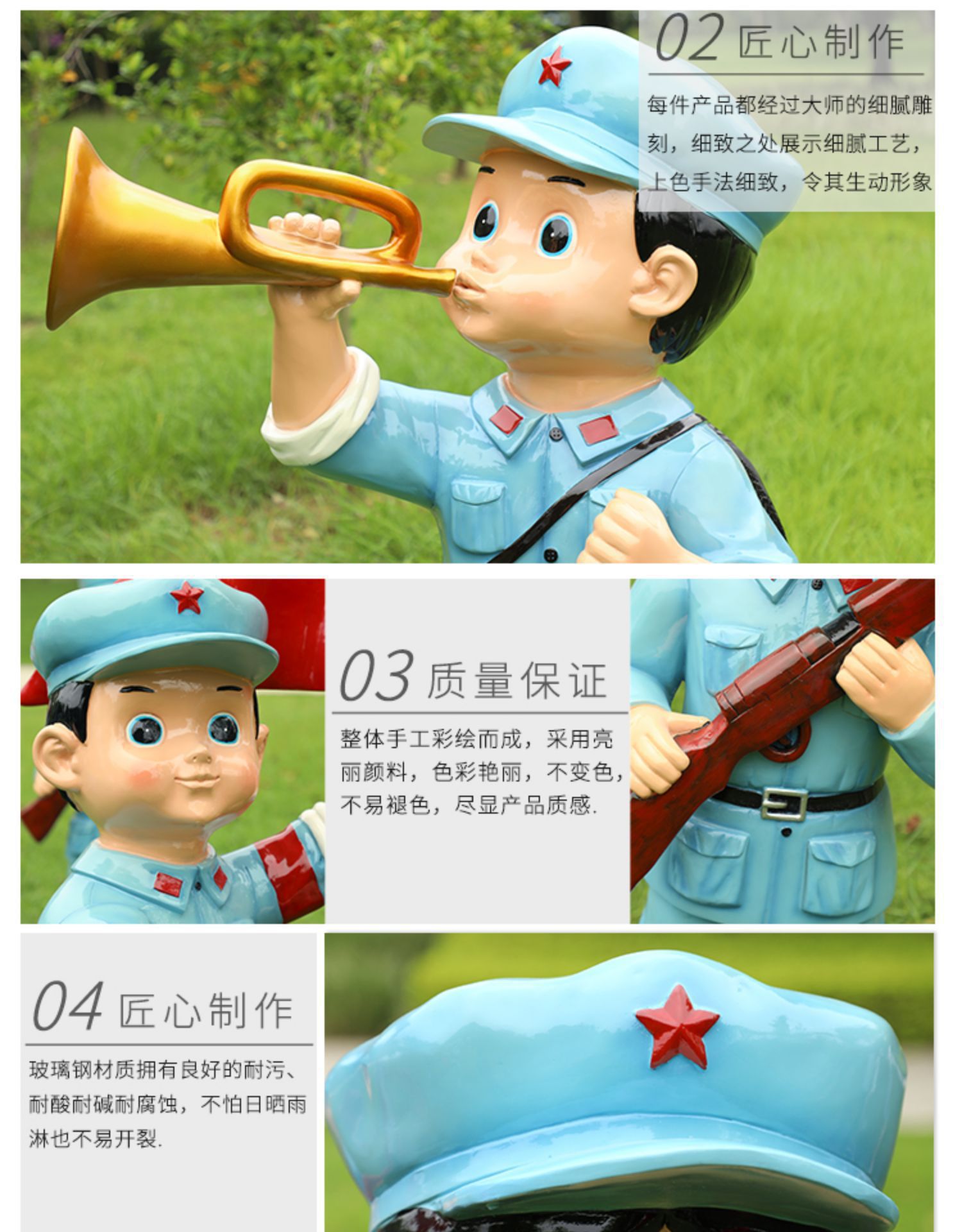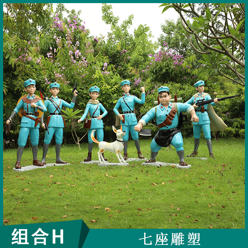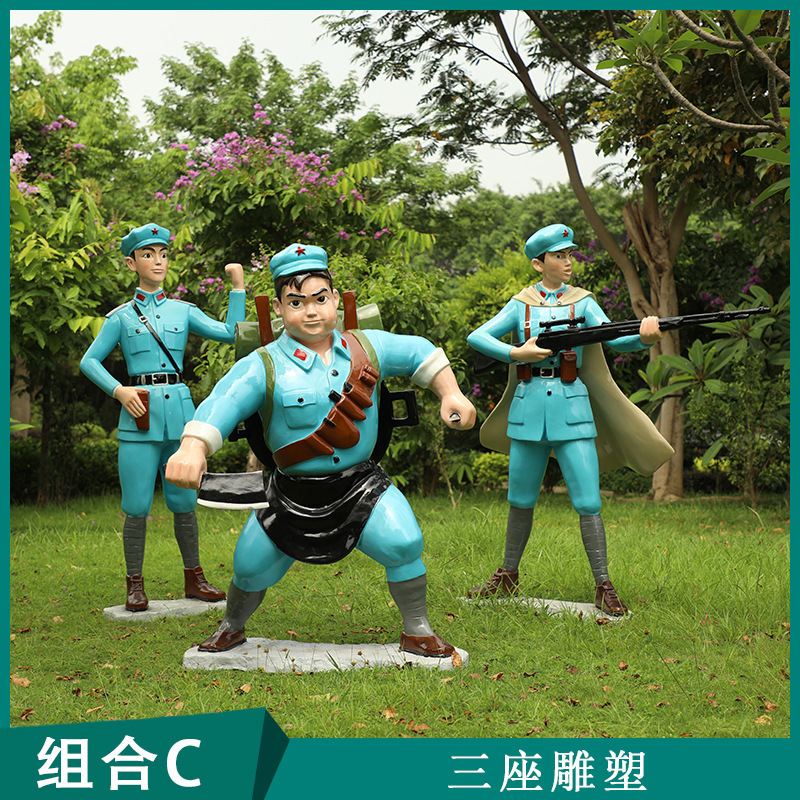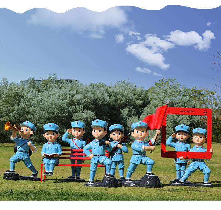 만화 작은 붉은 군대 조각 그물 빨간 카드 유리 섬유 강화 플라스틱 여덟 번째 경로 육군 붉은 문화 순교자 공원 풍경 장식품스토어 가기