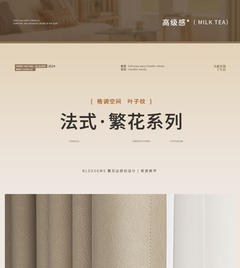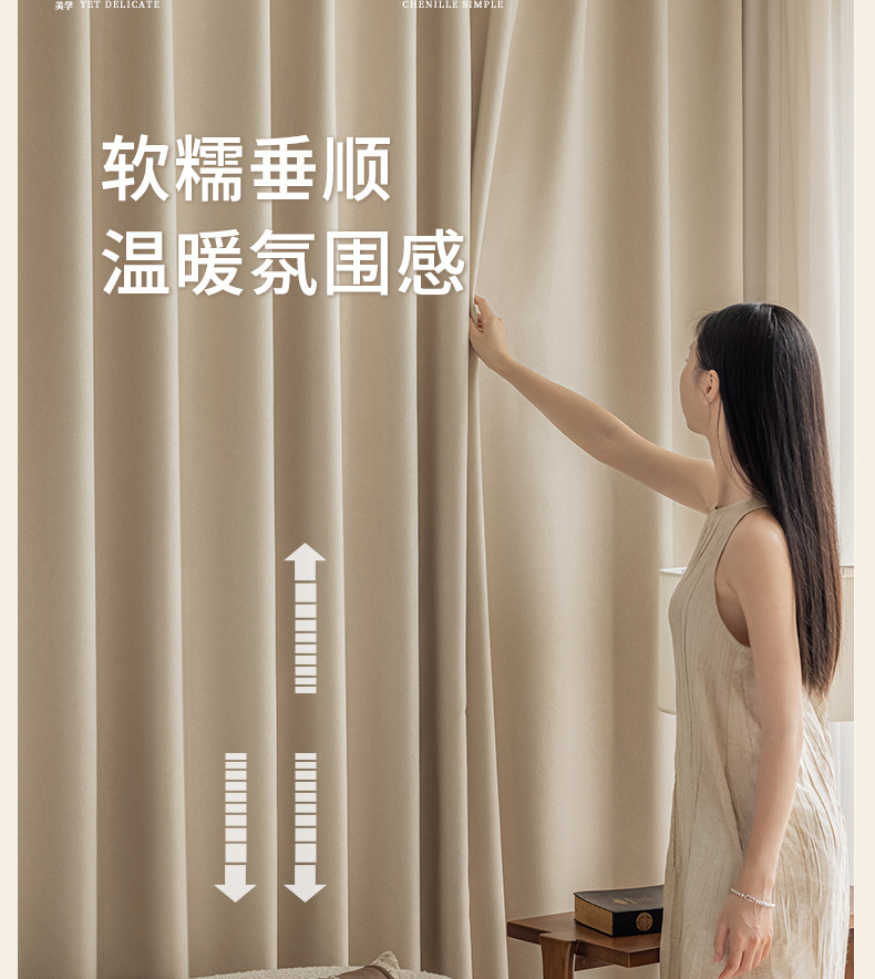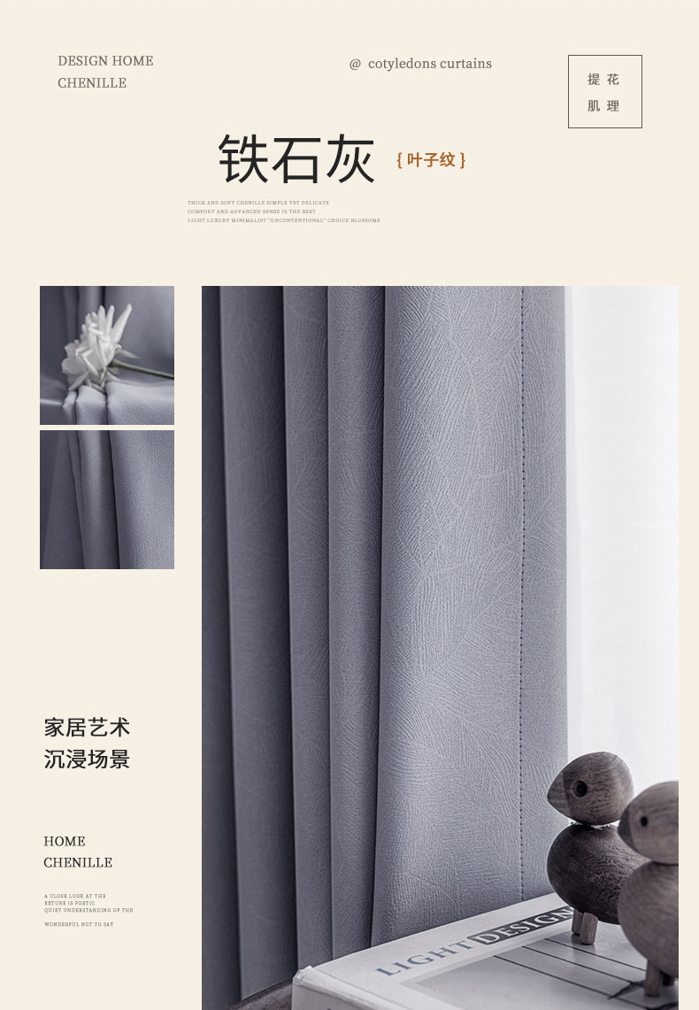 완전한 차광 셔닐 커튼 완제품, 가벼운 럭셔리 거실 및 침실, 고급형, 집 전체 맞춤형 Shaoxing Keqiao 커튼스토어 가기