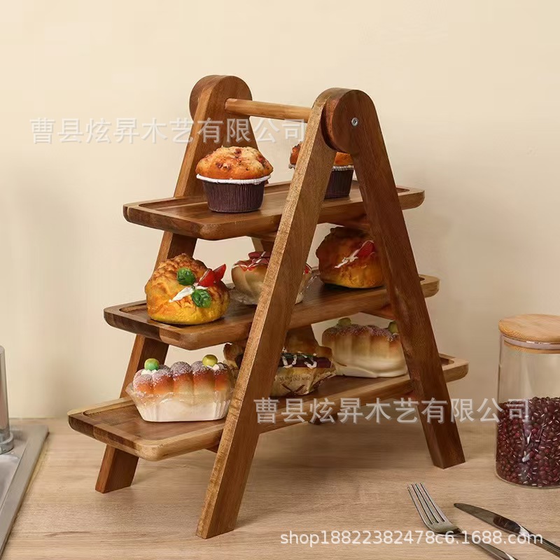 아카시아 우드 3 층 스토리지 랙 창조적 인 나무 트레이 스토리지 랙 다층 핫 팟 샵 디너 플레이트 식기