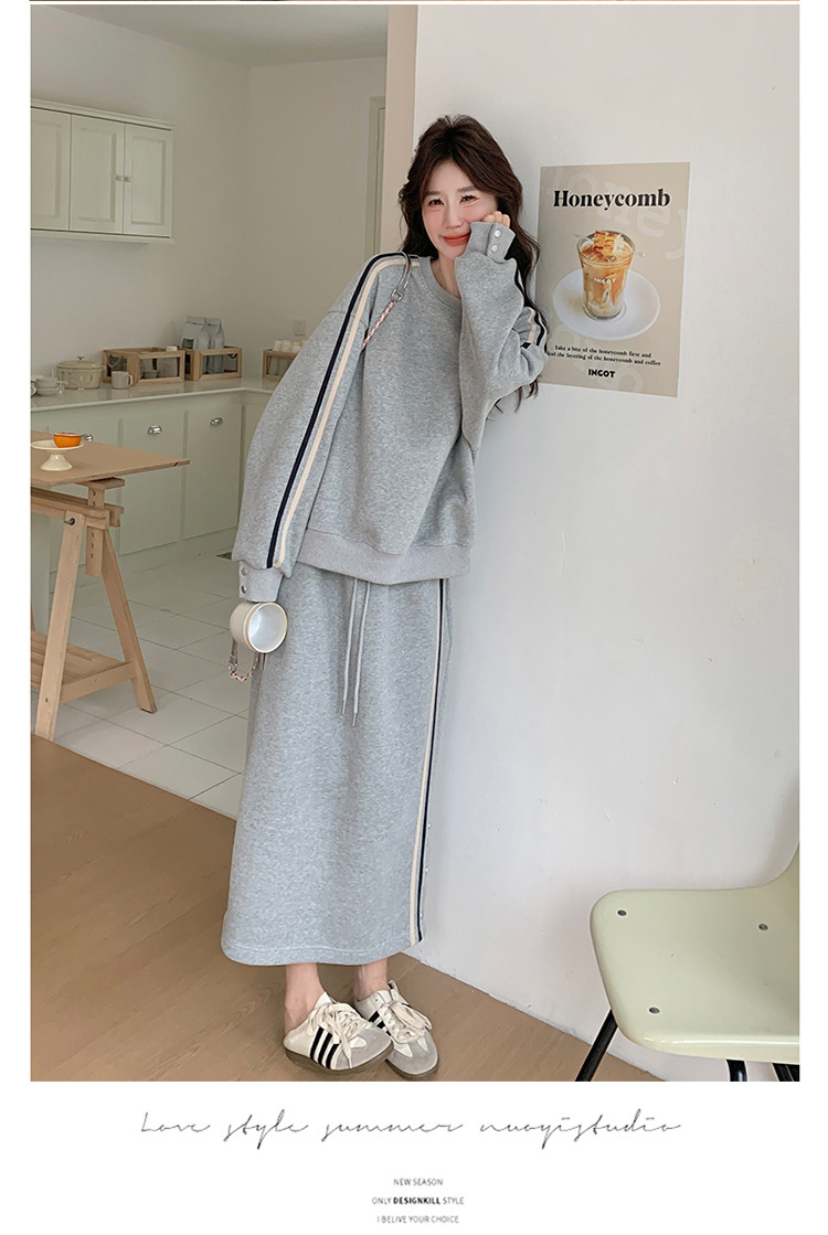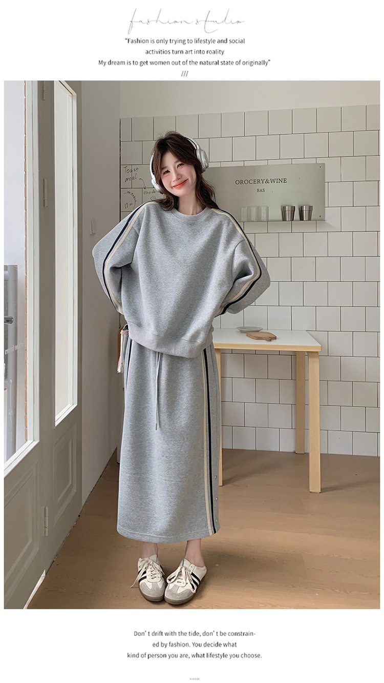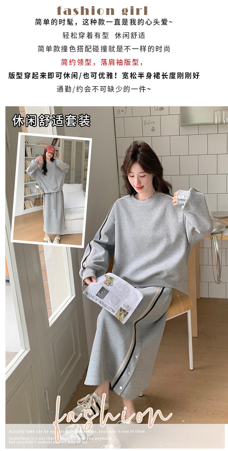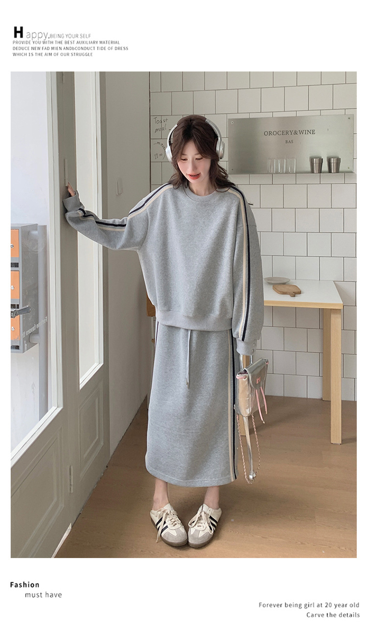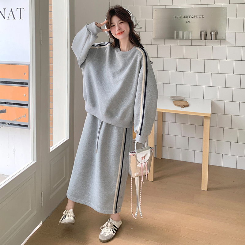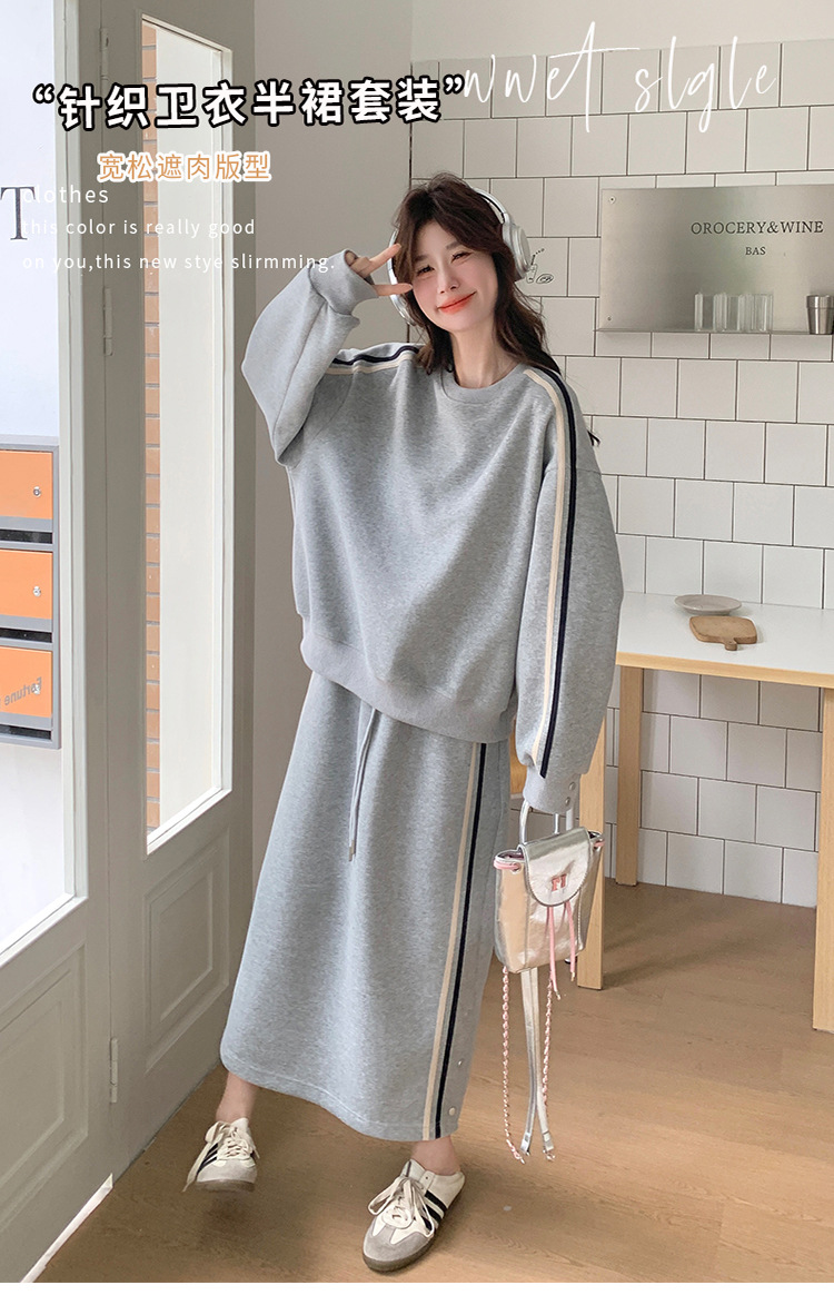그레이 패션 한국 스타일 스웨트셔츠 세트 여성용 봄 2025 신상 디자인 스커트 투피스 세트 컬리지 스타일스토어 가기