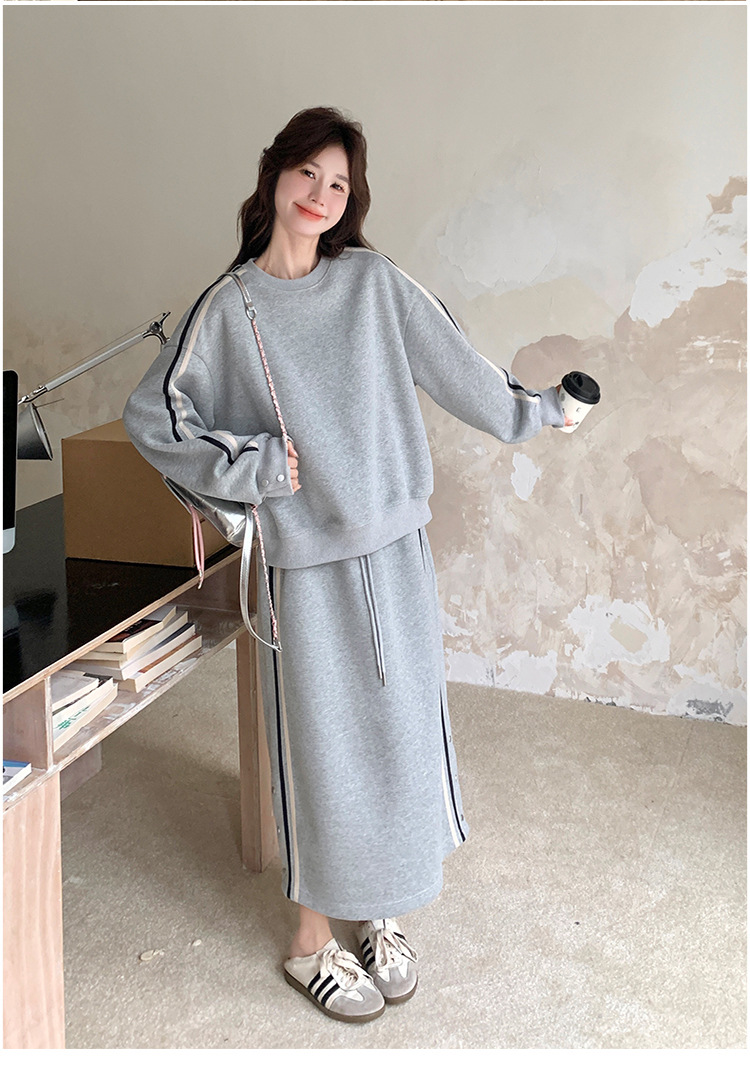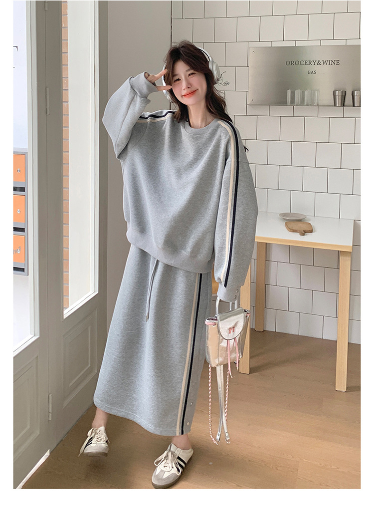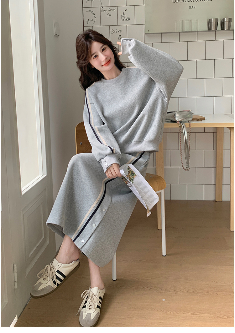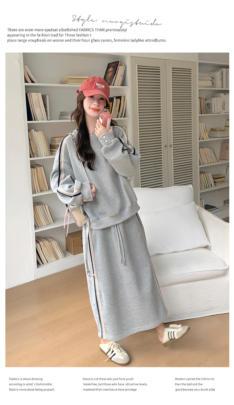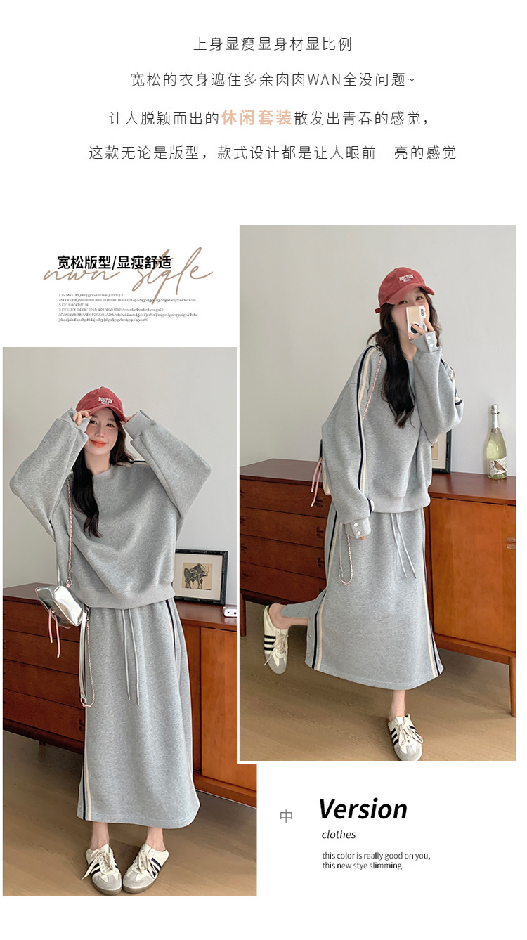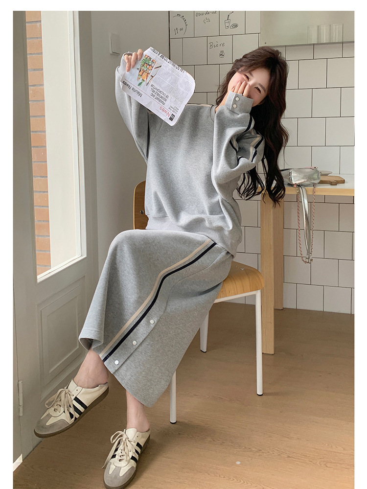 그레이 패션 한국 스타일 스웨트셔츠 세트 여성용 봄 2025 신상 디자인 스커트 투피스 세트 컬리지 스타일스토어 가기